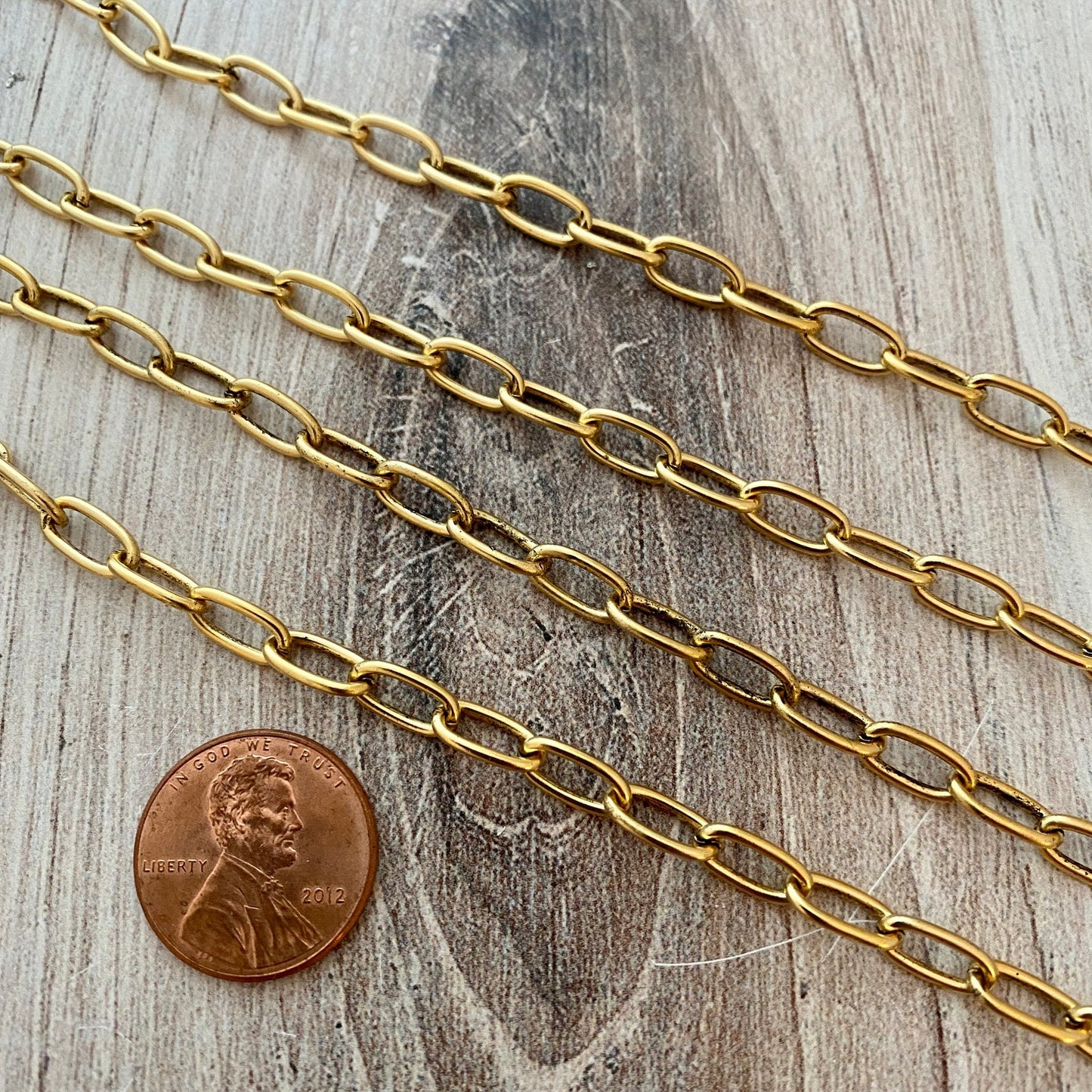 Clip Chain, Minimalist Rectangle Gold Chain by the Foot, Paperclip, Jewelry Supplies, GL-2033