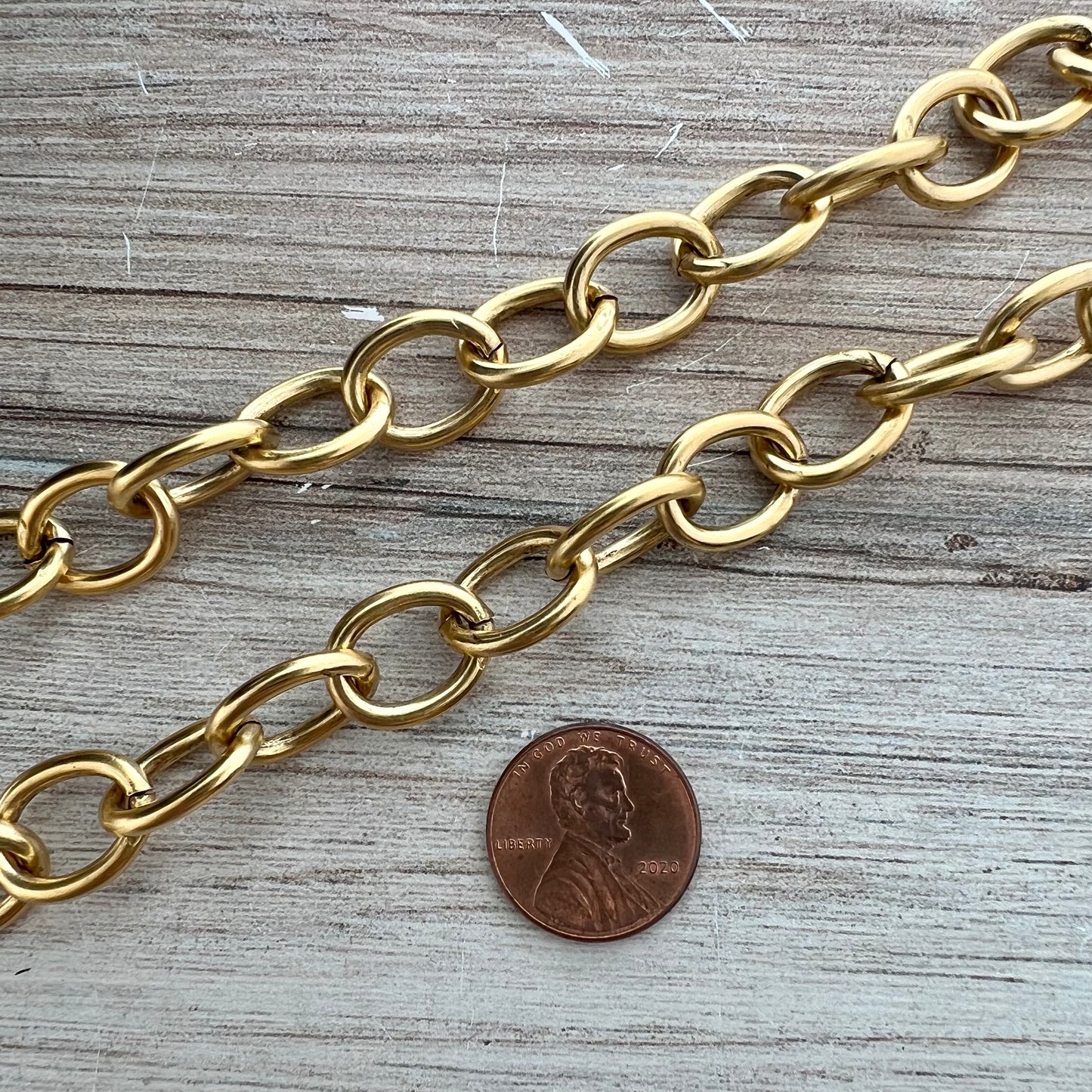 This chain features large, chunky oval links - perfect for a charm bracelet, a statement necklace, or even earrings! Unleash your creativity with this versatile chain. This is sold by the foot, but we ship in one continuous length.