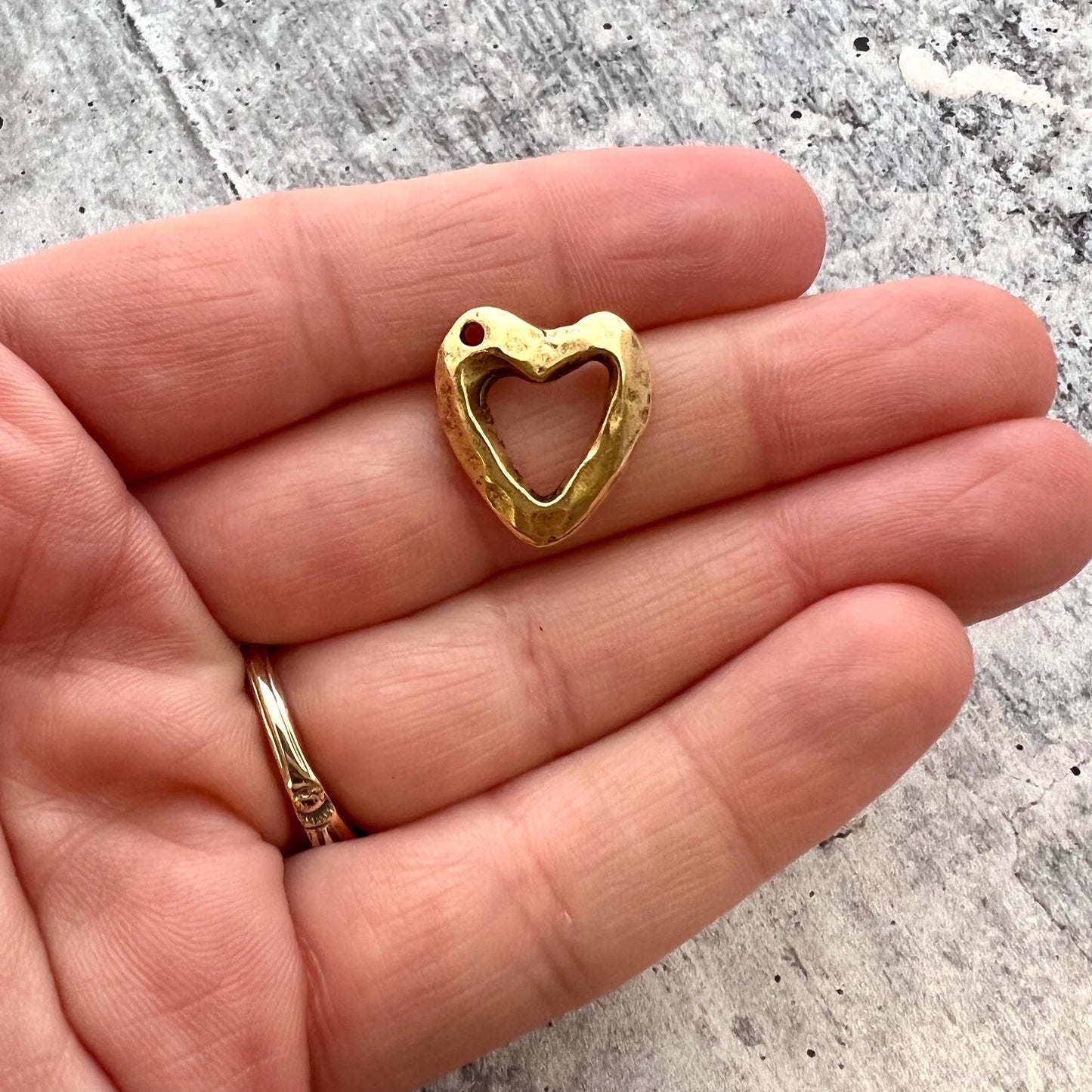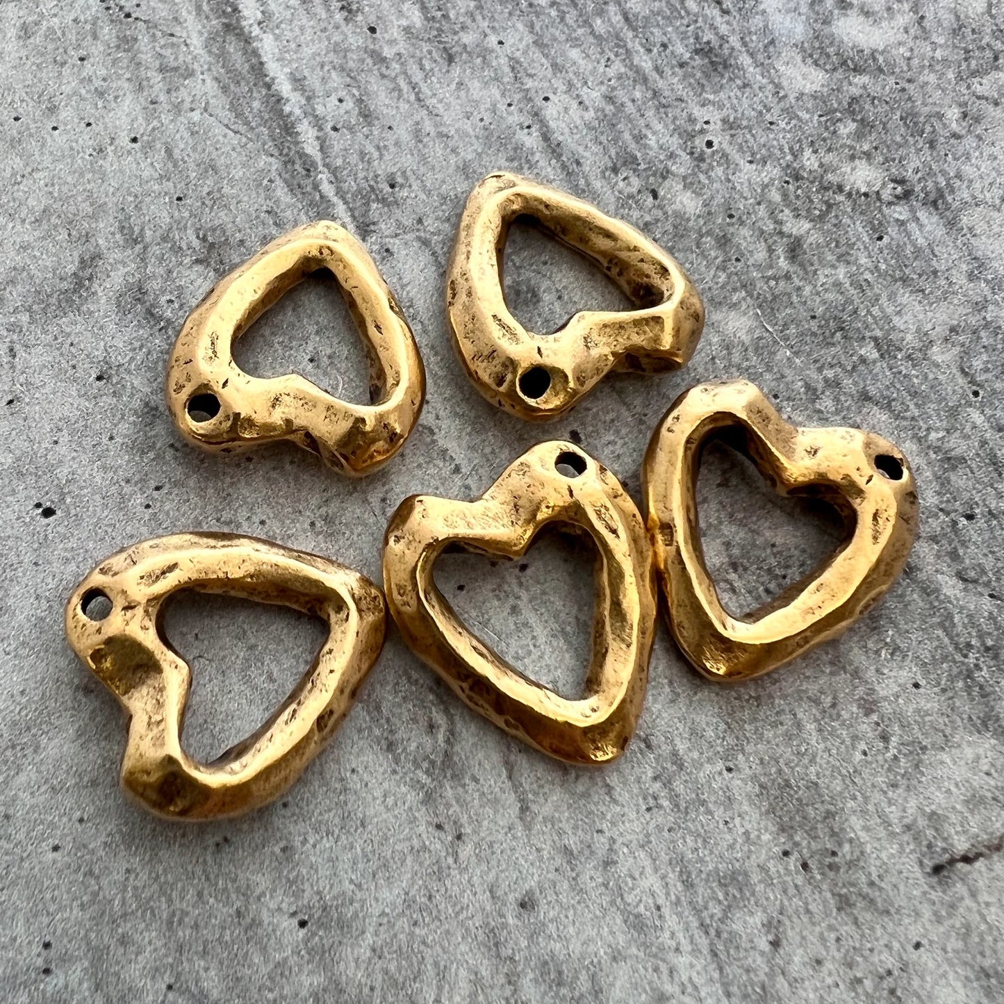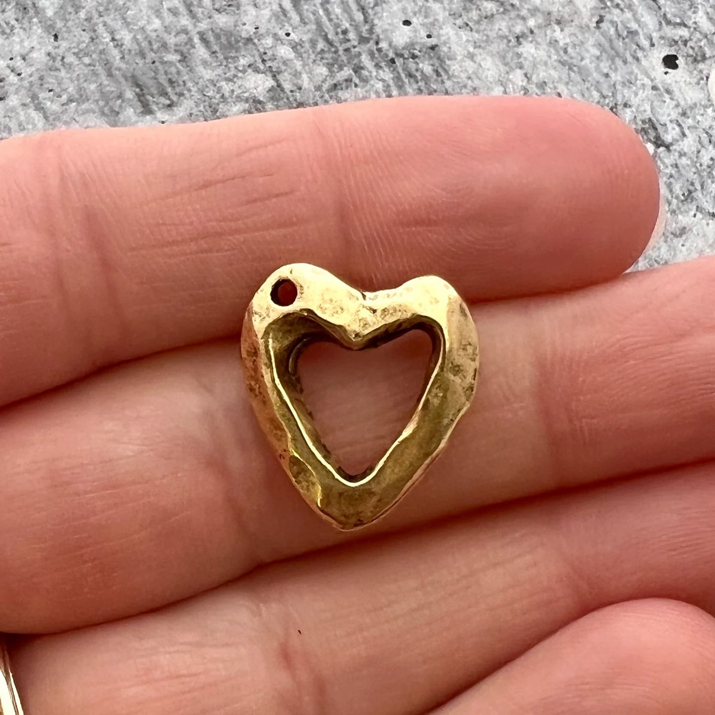 Gold Hammered Open Heart Charm, Jewelry Making, GL-6225