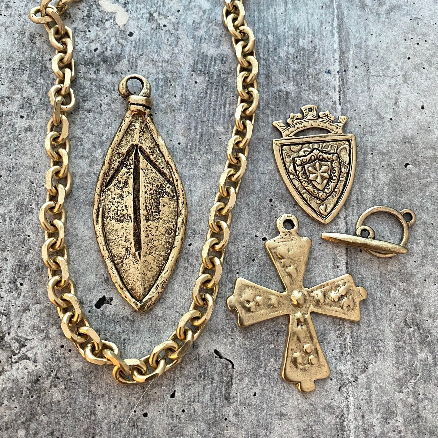 All Carson's Cove "12k Antiqued Gold" finish components are plated with real 12k gold, and then antiqued. They are all the same gold, but highly textured pieces may look a bit different than smooth pieces because the texture captures more of the antiquing elements. Why 12k gold? Because 12k gold is a light, neutral gold without an orange tone, and it looks beautiful on every skin tone!