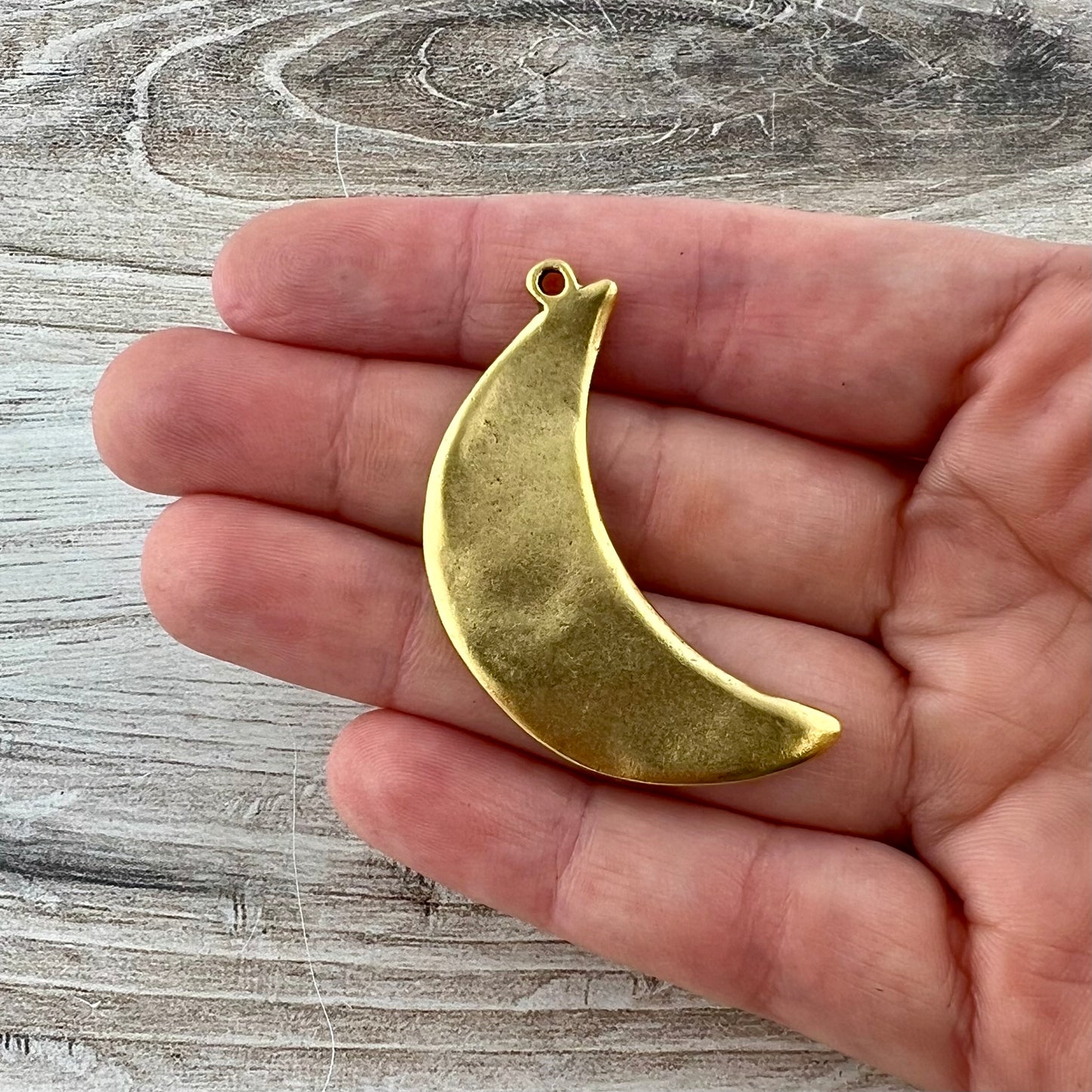 Discover the celestial allure of our artisan-crafted wavy crescent moon pendant. Versatile and captivating, this piece will add a little magic to your jewelry creations. Perfect for necklaces, bracelets, or earrings.