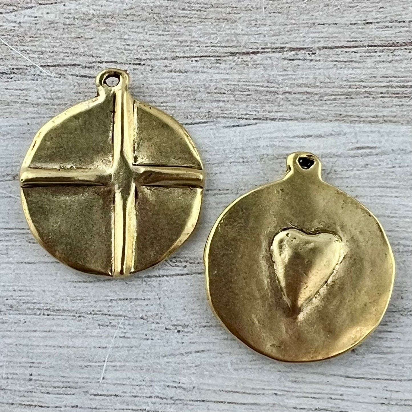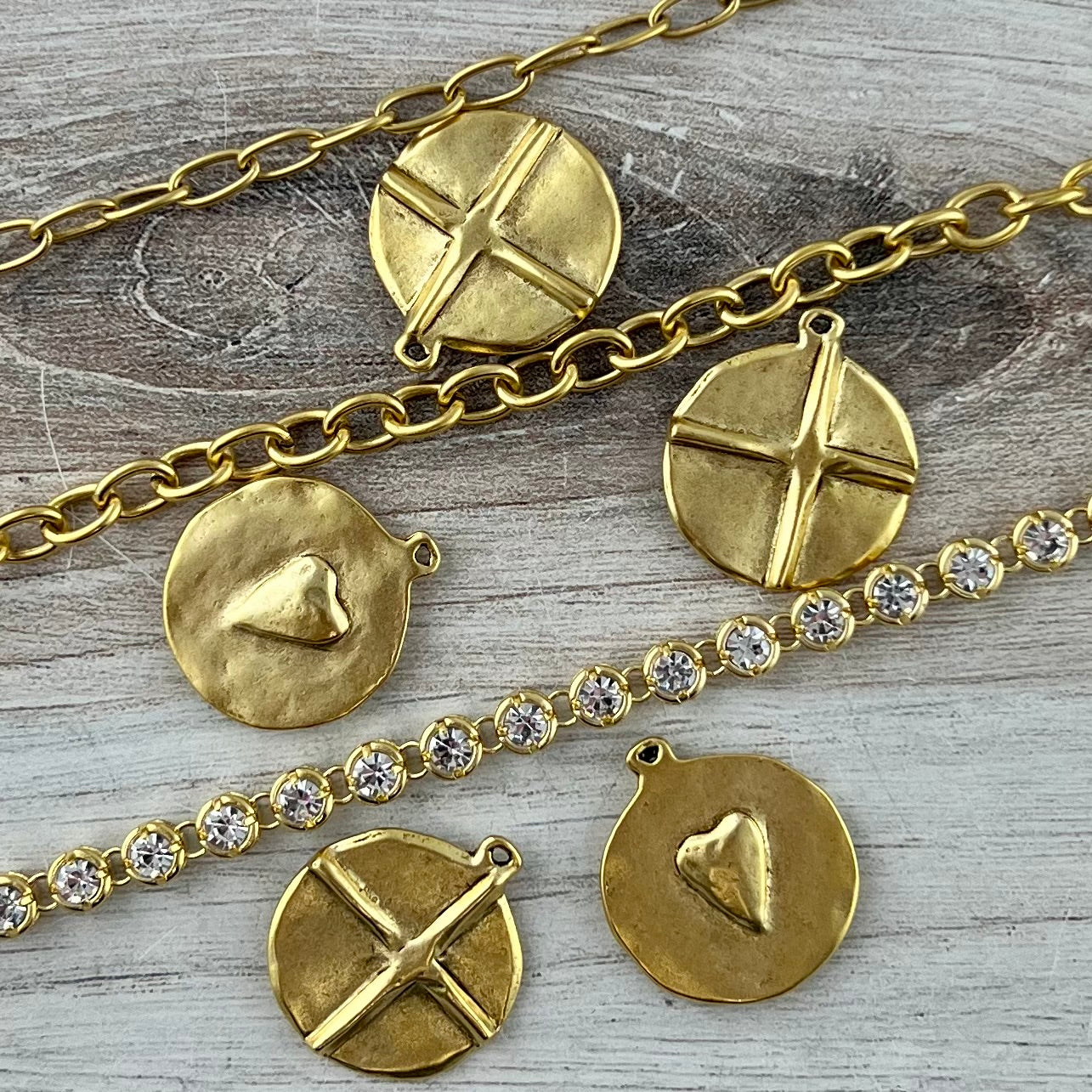 Add Circle Cross Heart Charm, Gold Pendant, Jewelry Findings, GL-6294 to the cart