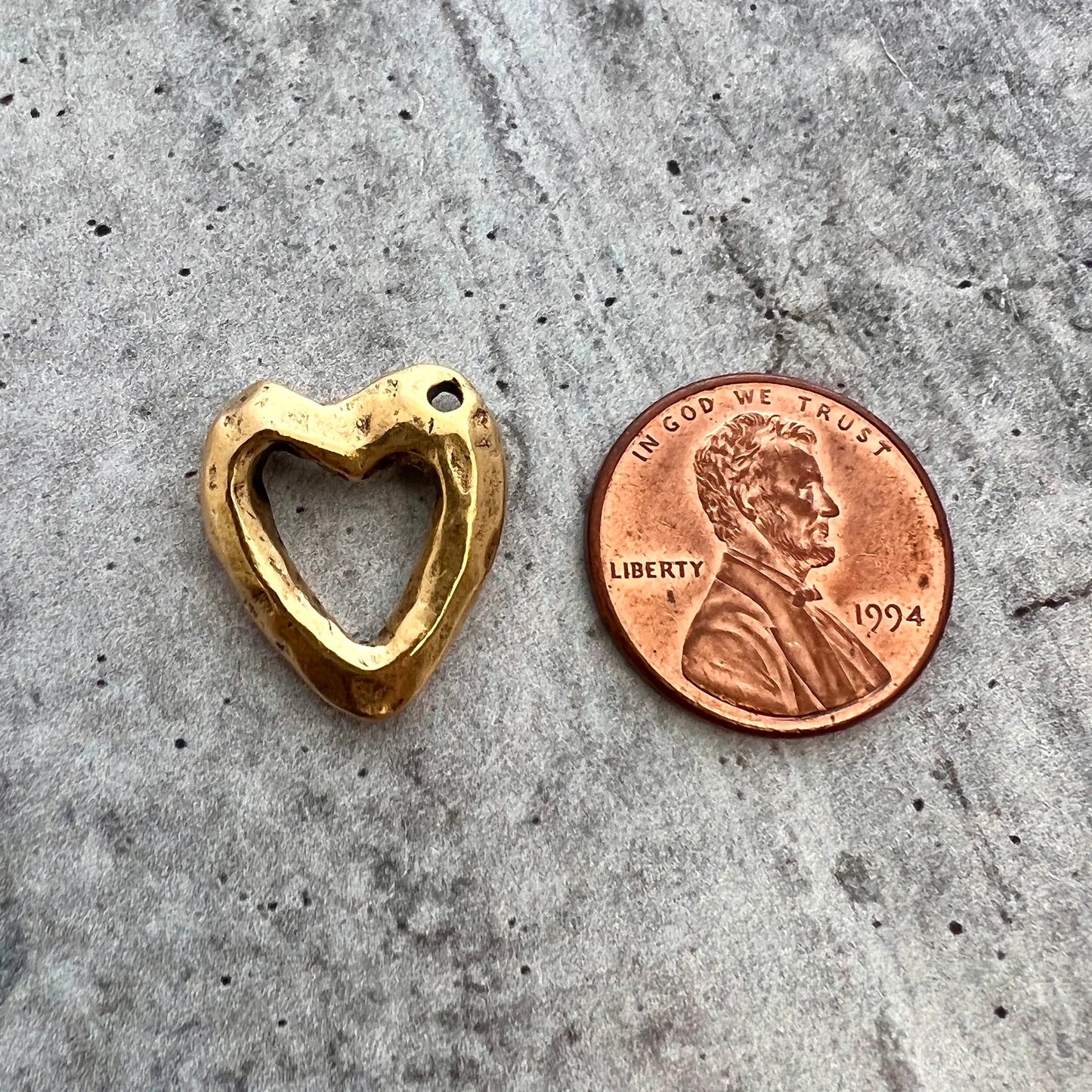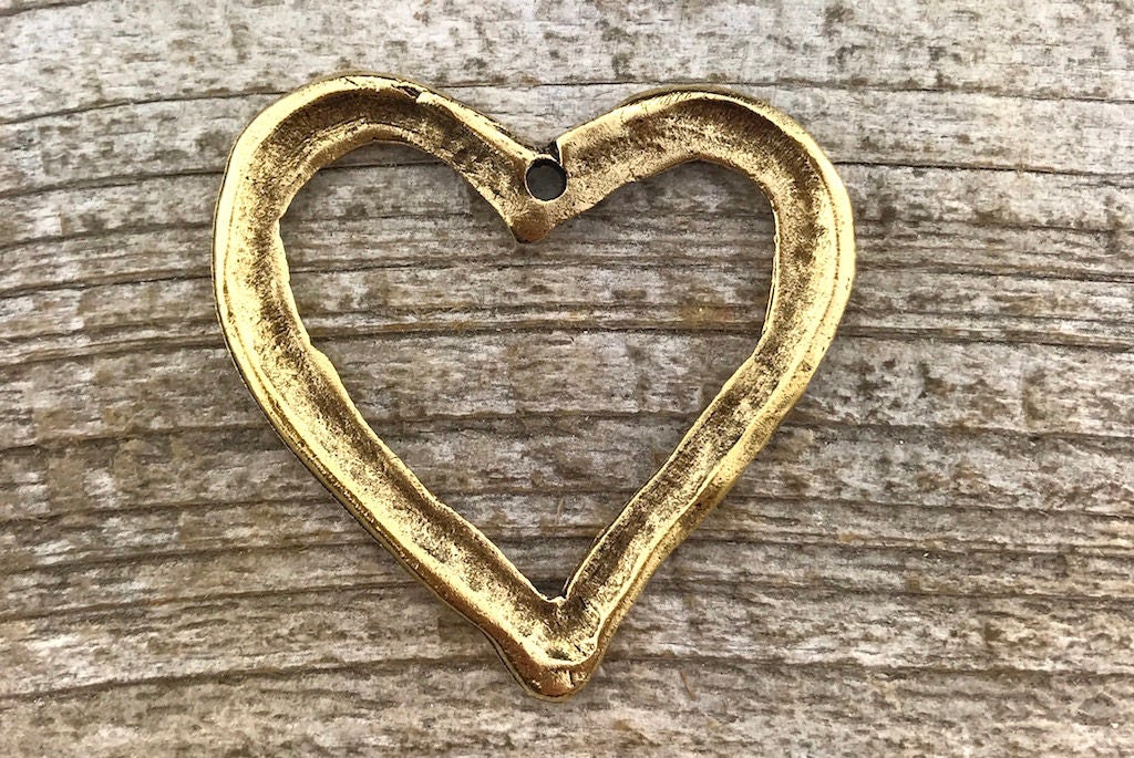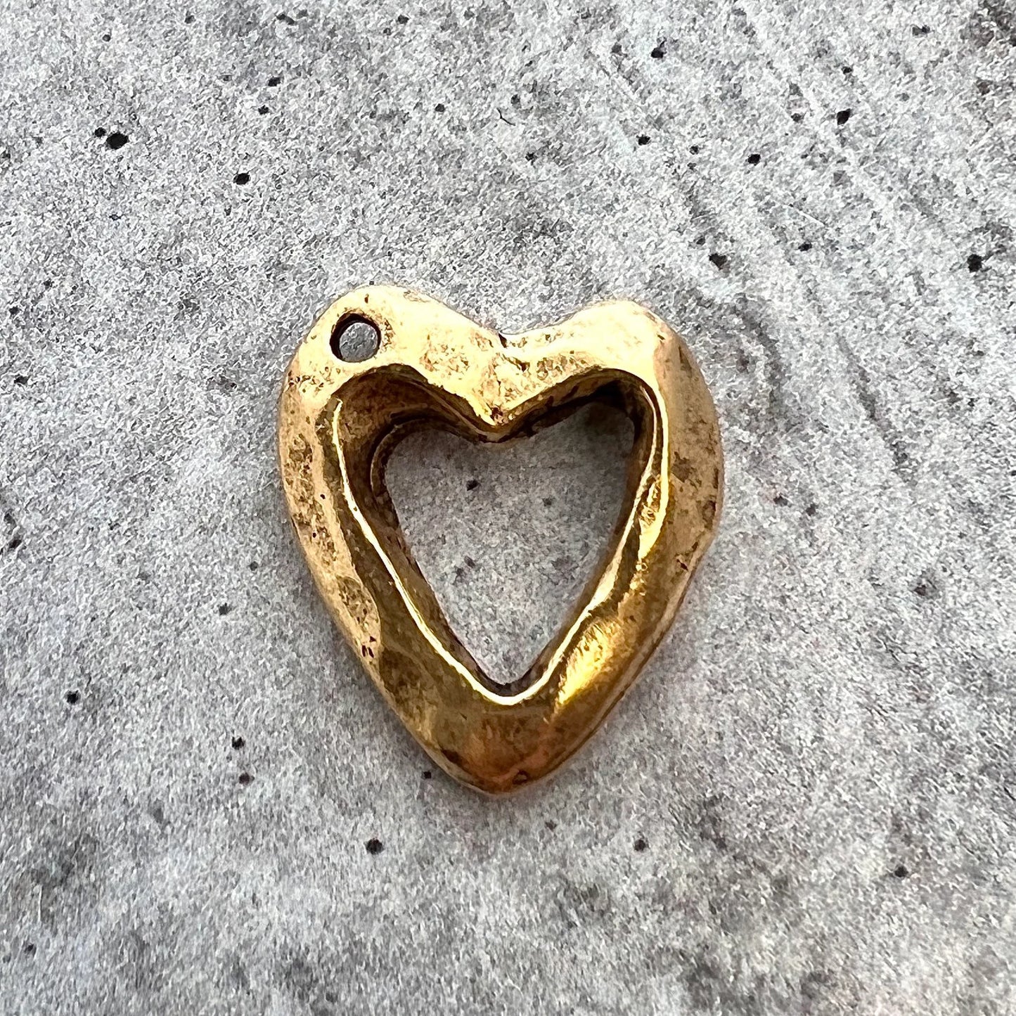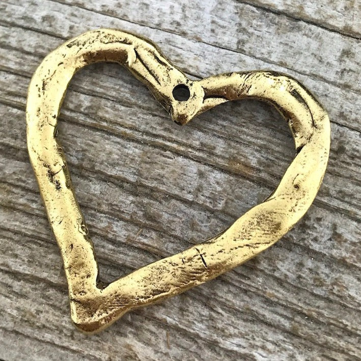 Heart Pendant, Gold Large Open Heart, Love Charm, Antiqued Gold, Wedding Gift Bridesmaid, Carson's Cove, GL-6024