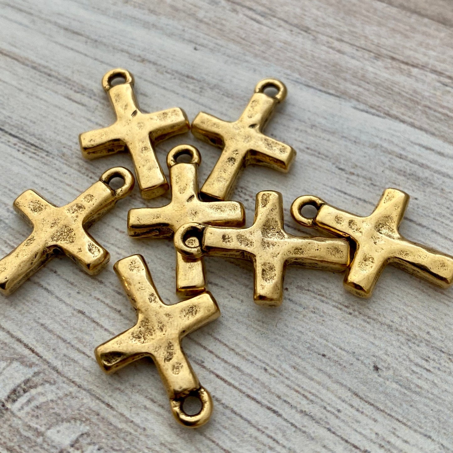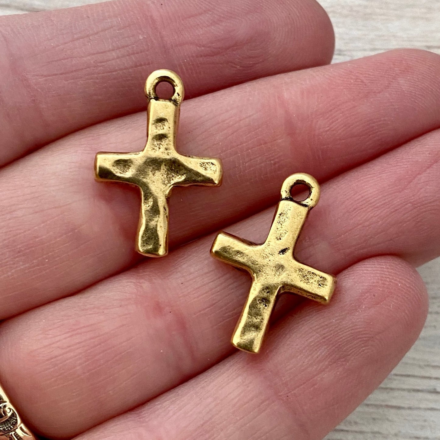 2 Hammered Cross Charm, Antiqued Gold Block Cross, Religious, Spiritual Jewelry Making, GL-6156