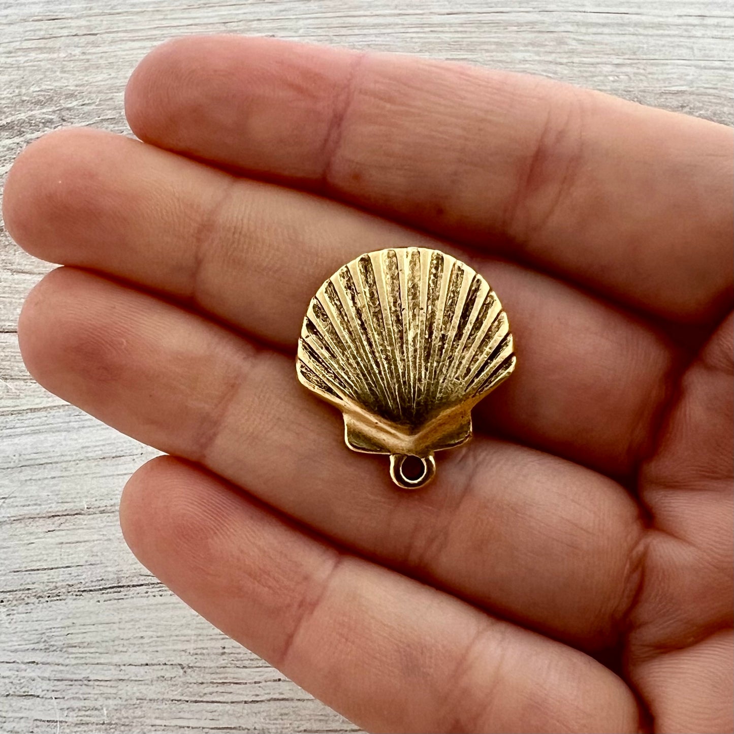 Seashell Charm, Simple Antiqued Gold Jewelry Making Findings, Carson's Cove, GL-6285