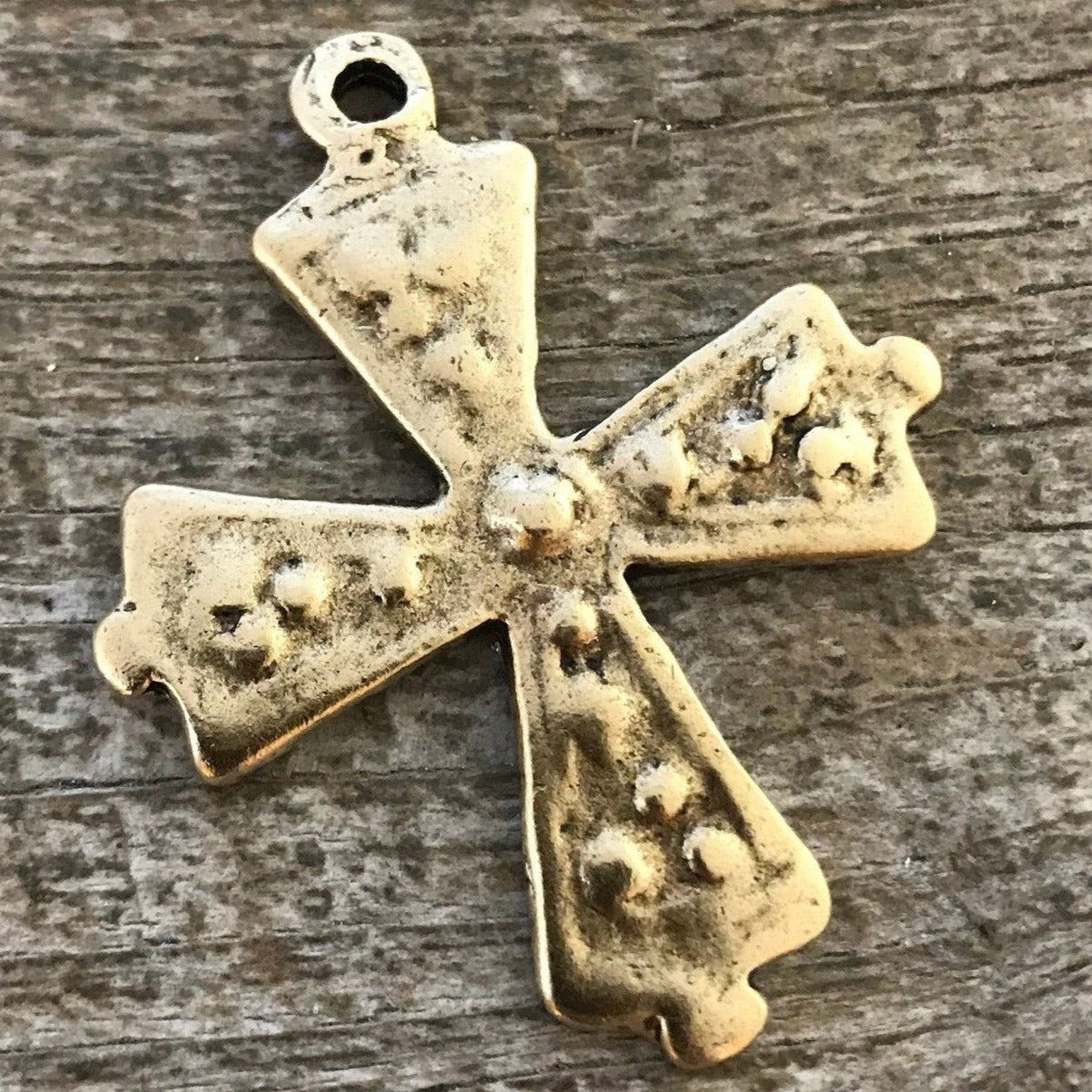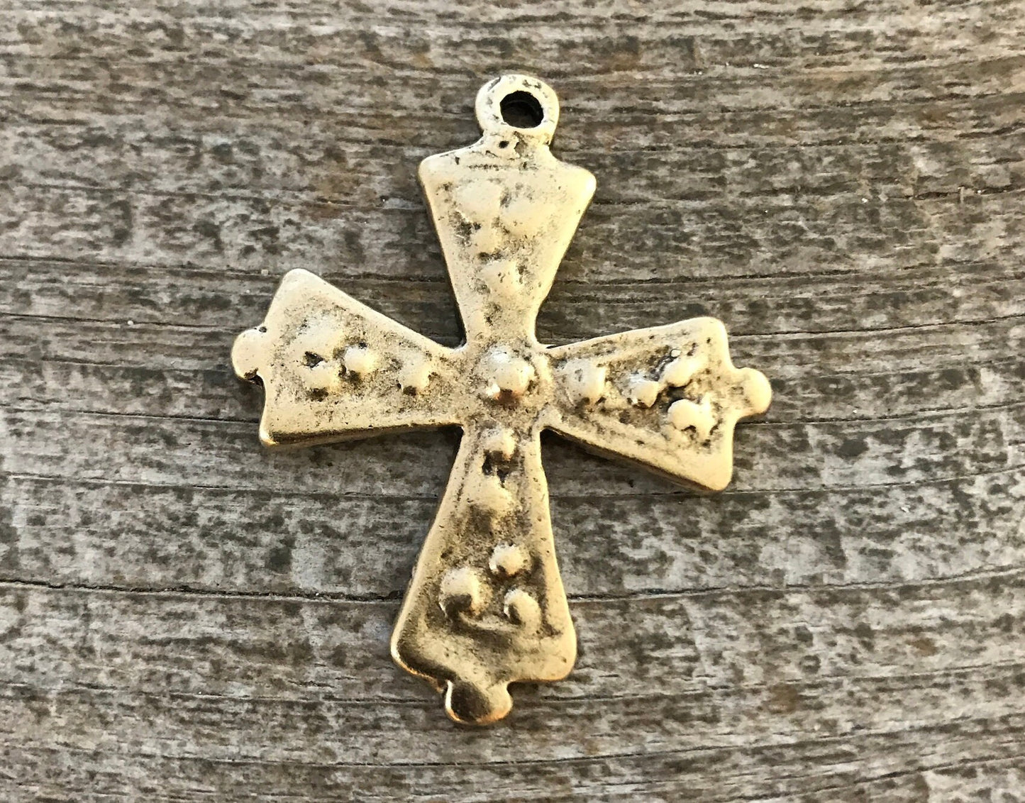 Cross Pendant, Antiqued Gold Bumpy Cross, Dotted Artisan Cross, Religious Cross, Maltese Cross, Jewelry Supplies, Carson's Cove, GL-6052