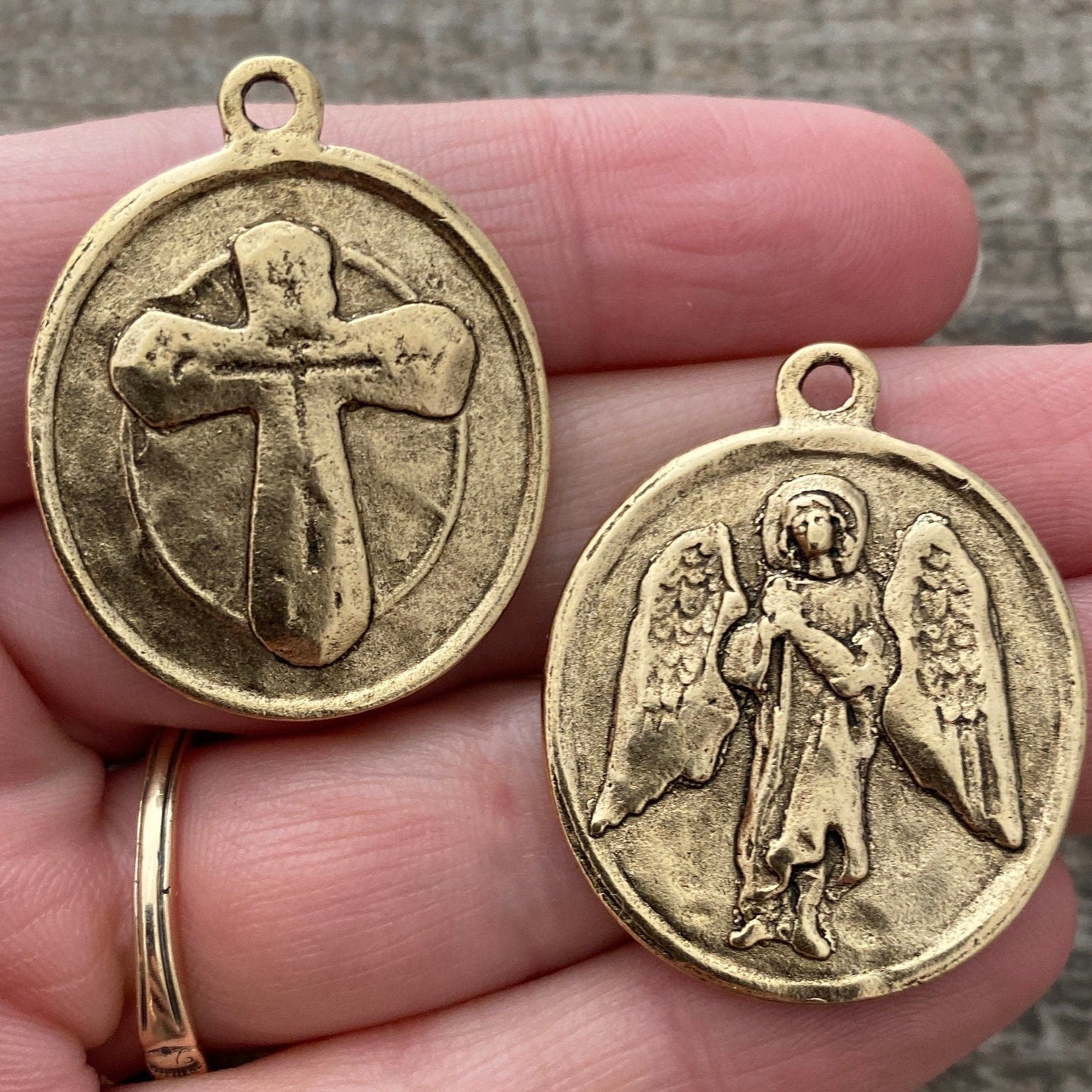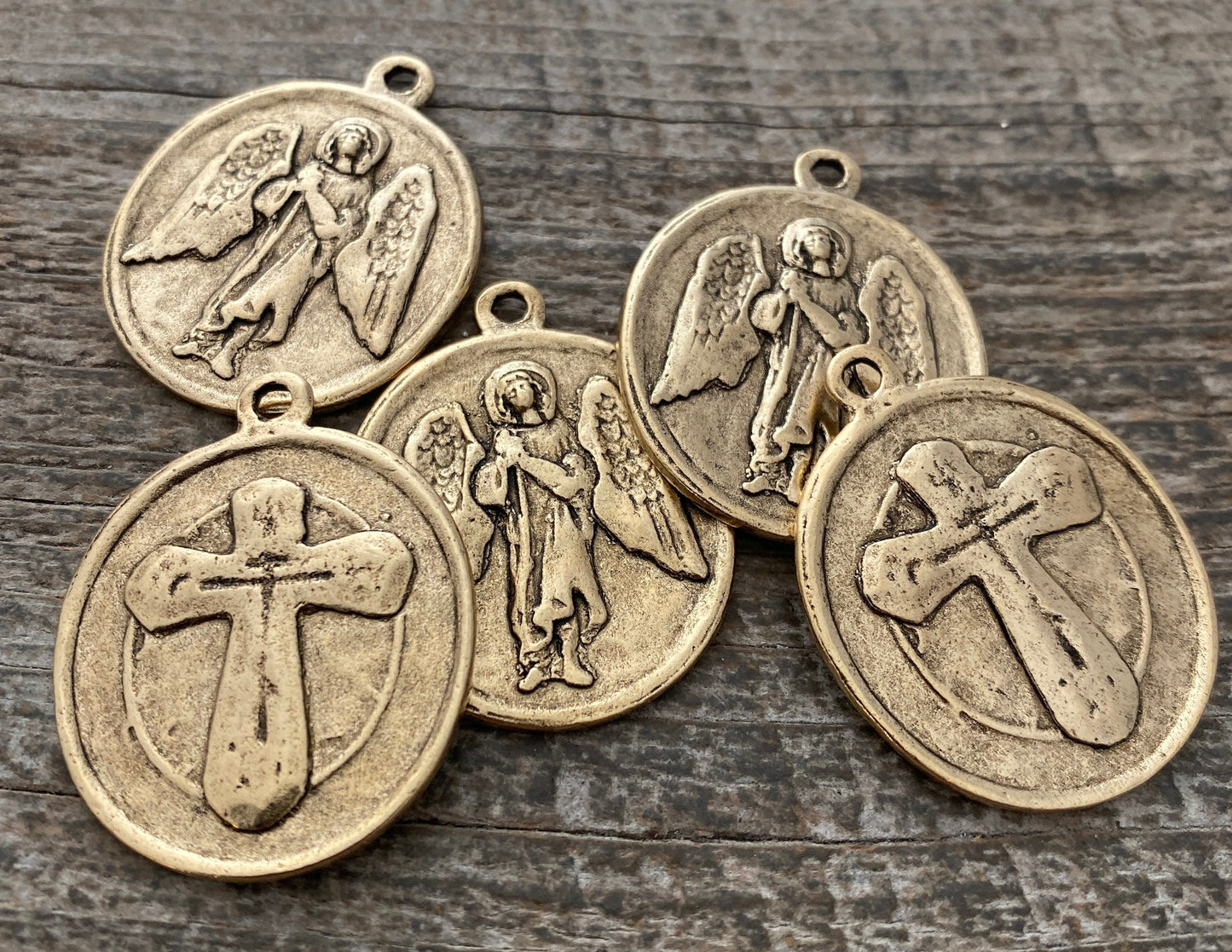 Archangel St. Raphael, Catholic Medal, Angel of Healing, Antiqued Gold Religious Pendant Charm, Protection Christian Jewelry, GL-6135