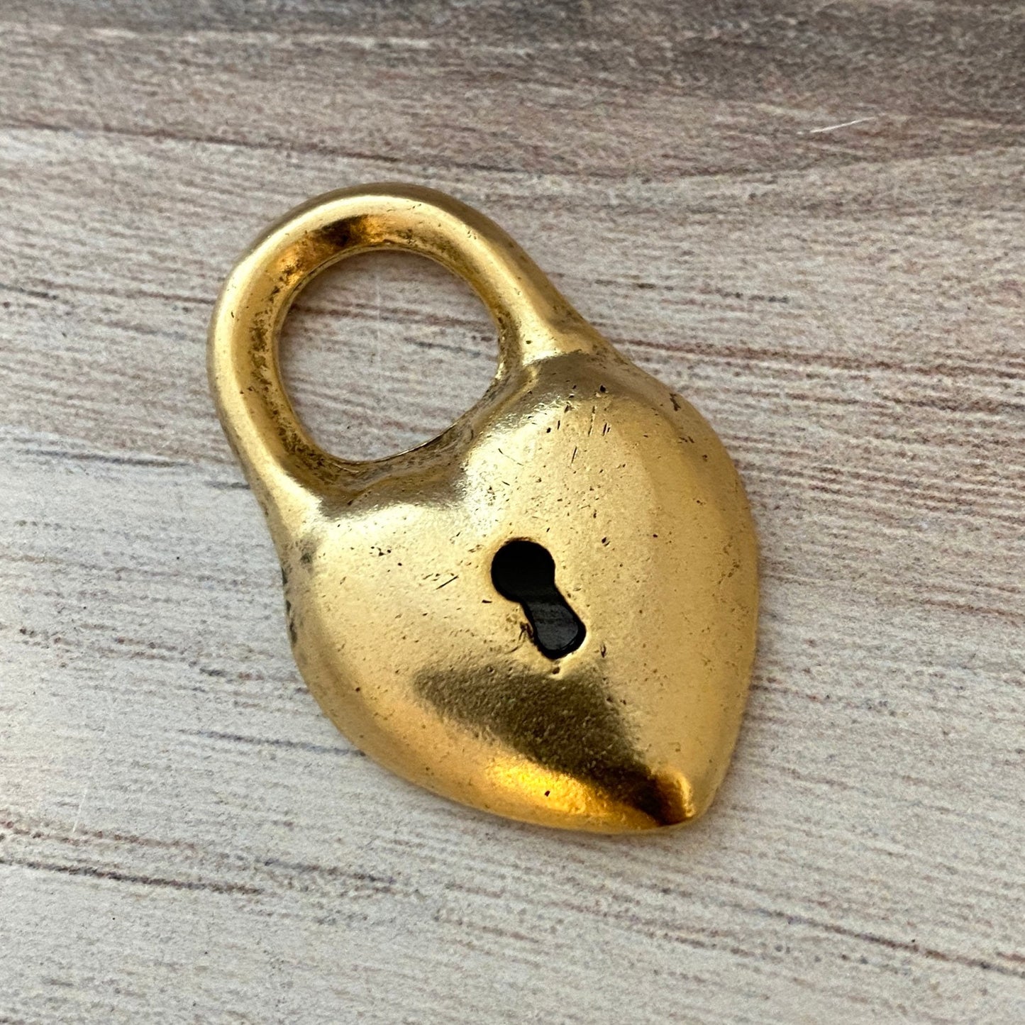 Smooth Heart Lock Pendant, Gold Charm, Jewelry Making, Carson's Cove, GL-6170