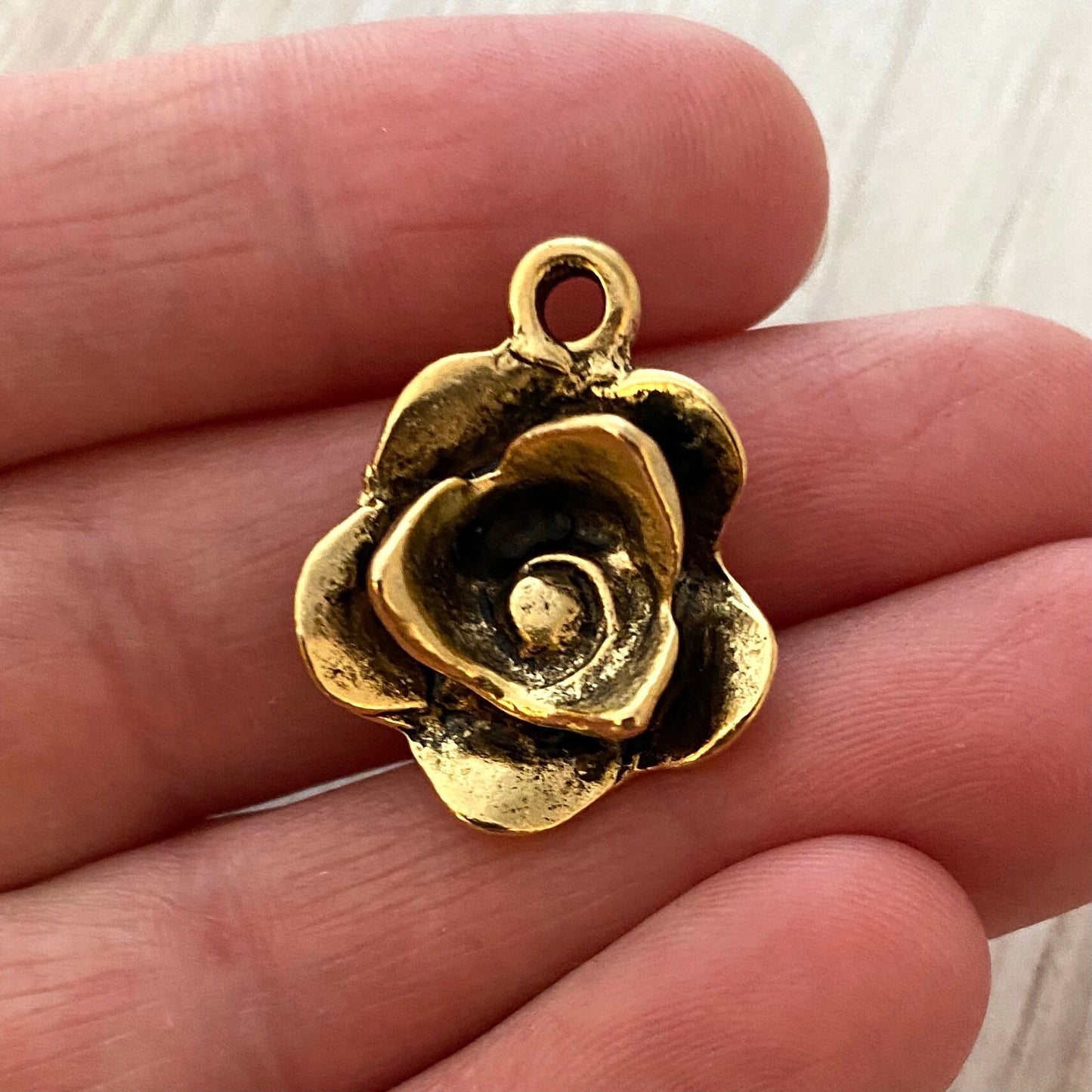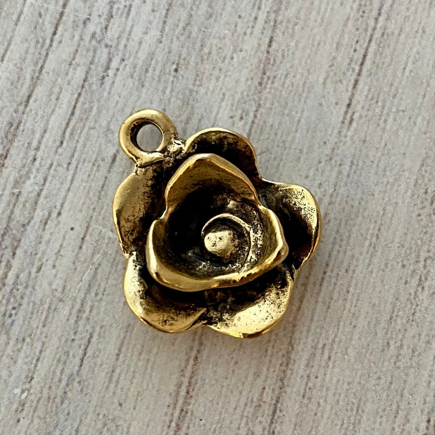 Flower Charm, Antiqued Gold Rose Pendant for Jewelry, GL-6153