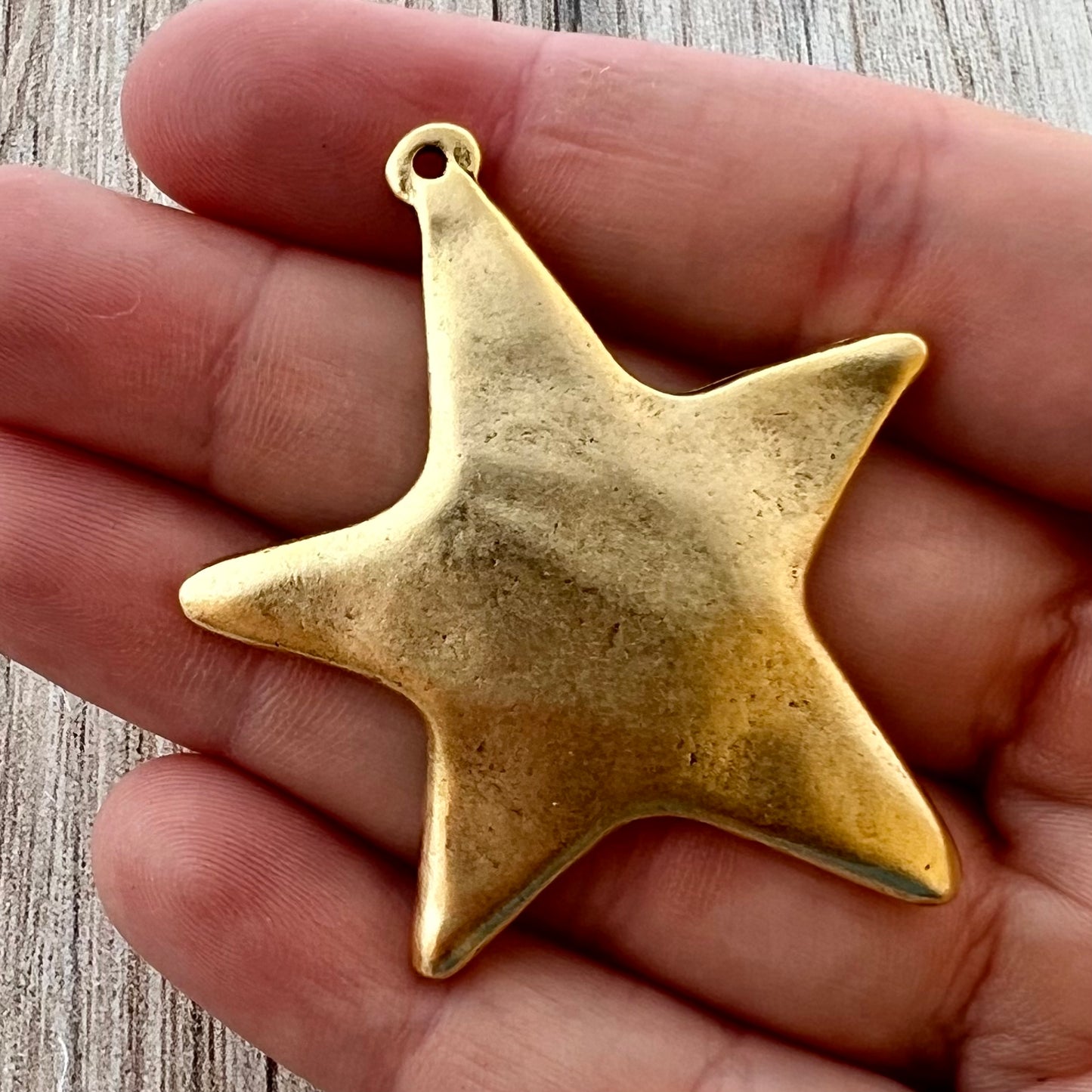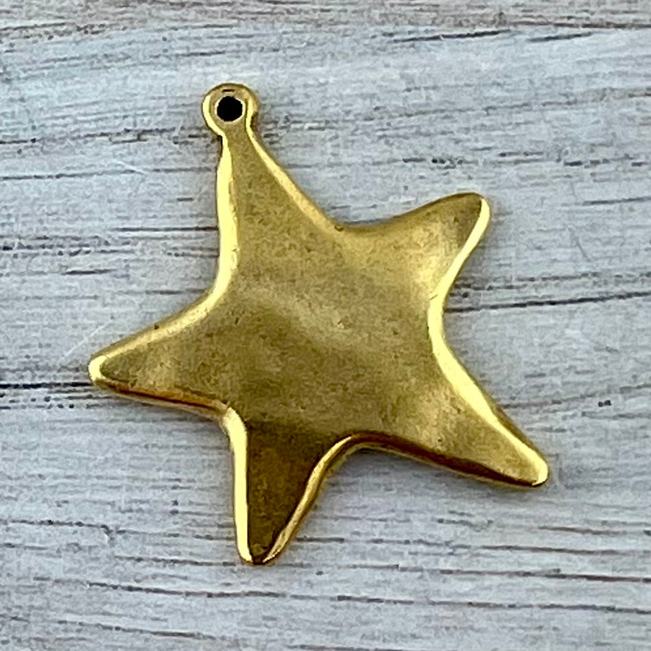 Large Smooth Star Pendant, Gold Artisan Charm for Jewelry Design, GL-6270
