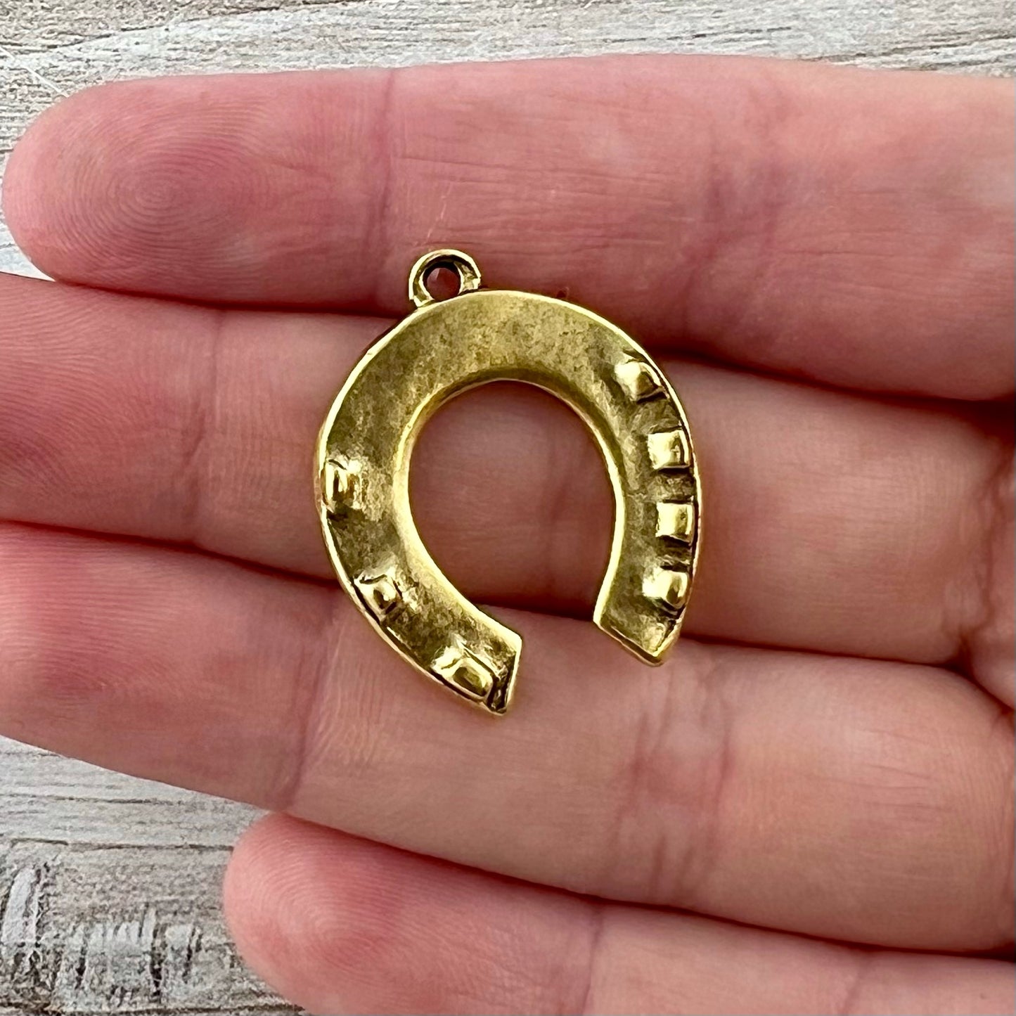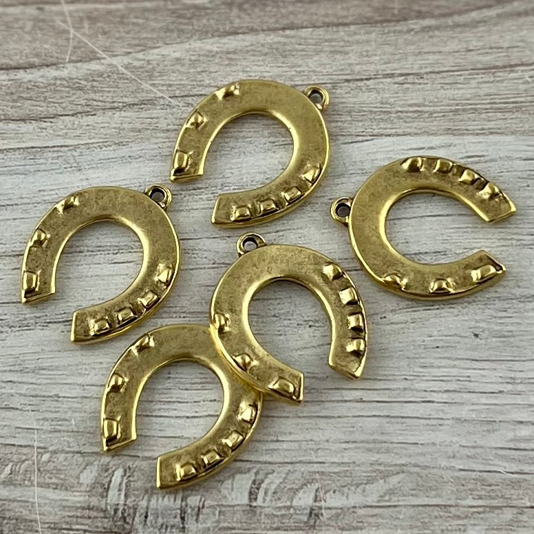 Horseshoe Pendant, Antiqued Gold Equestrian Jewelry Charm, Carson's Cove, Horse Jewelry Supplies, GL-6307