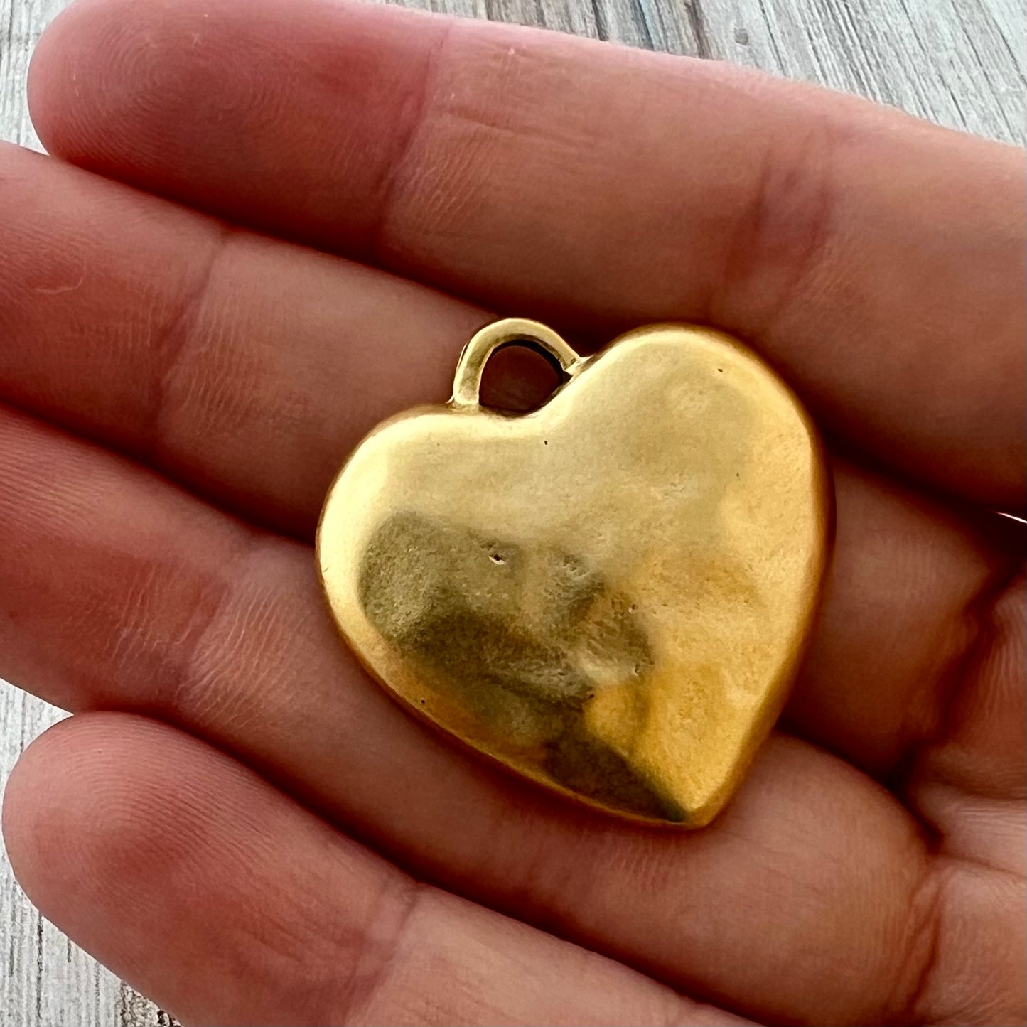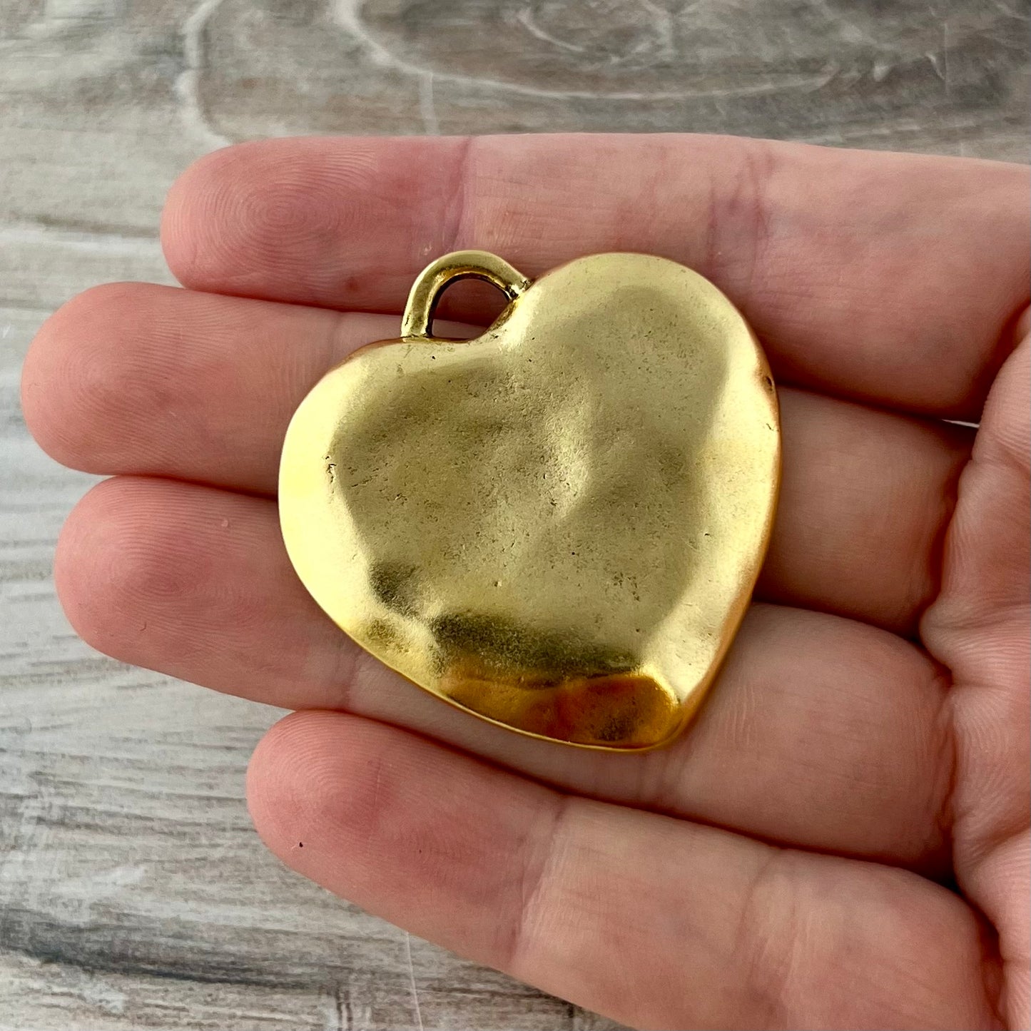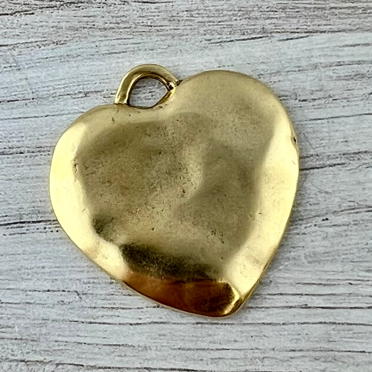 Add Large Gold Heart Pendant, Vintage Smooth Wavy Puffy Heart Charm, Jewelry Making Supplies, Components GL-6317 to the cart