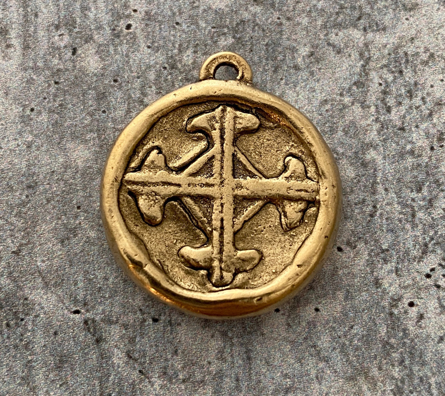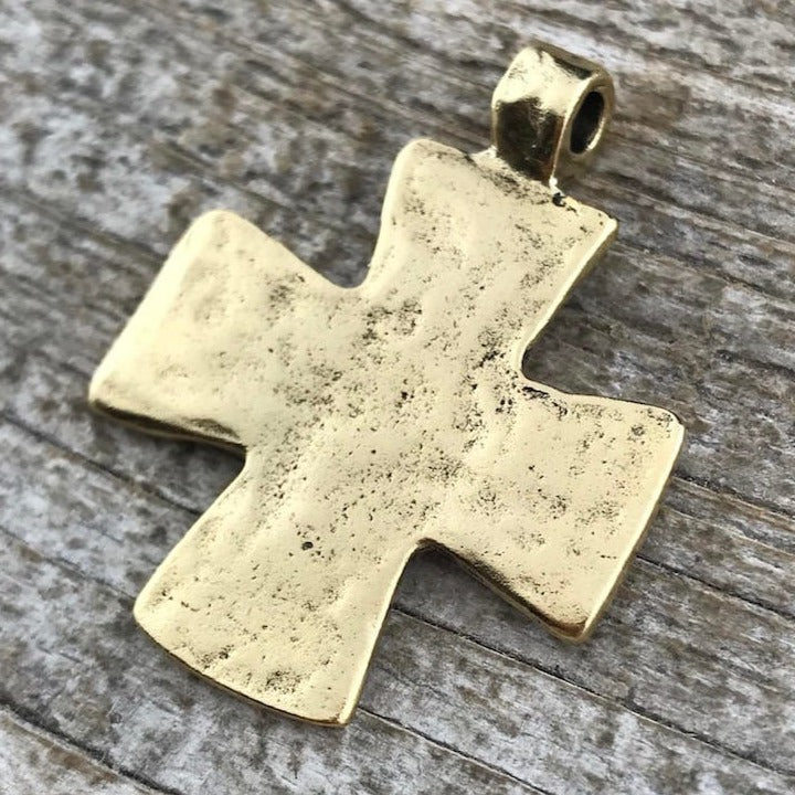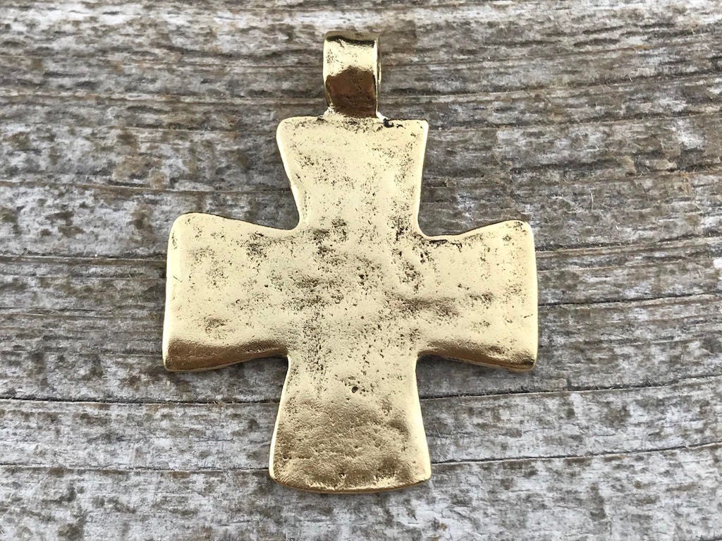 Hammered Cross Pendant, Gold Cross, Leather Pendant, Artisan Cross, Religious Jewelry, Cross Charm, Christian Jewelry, Gift for Her, GL-6138