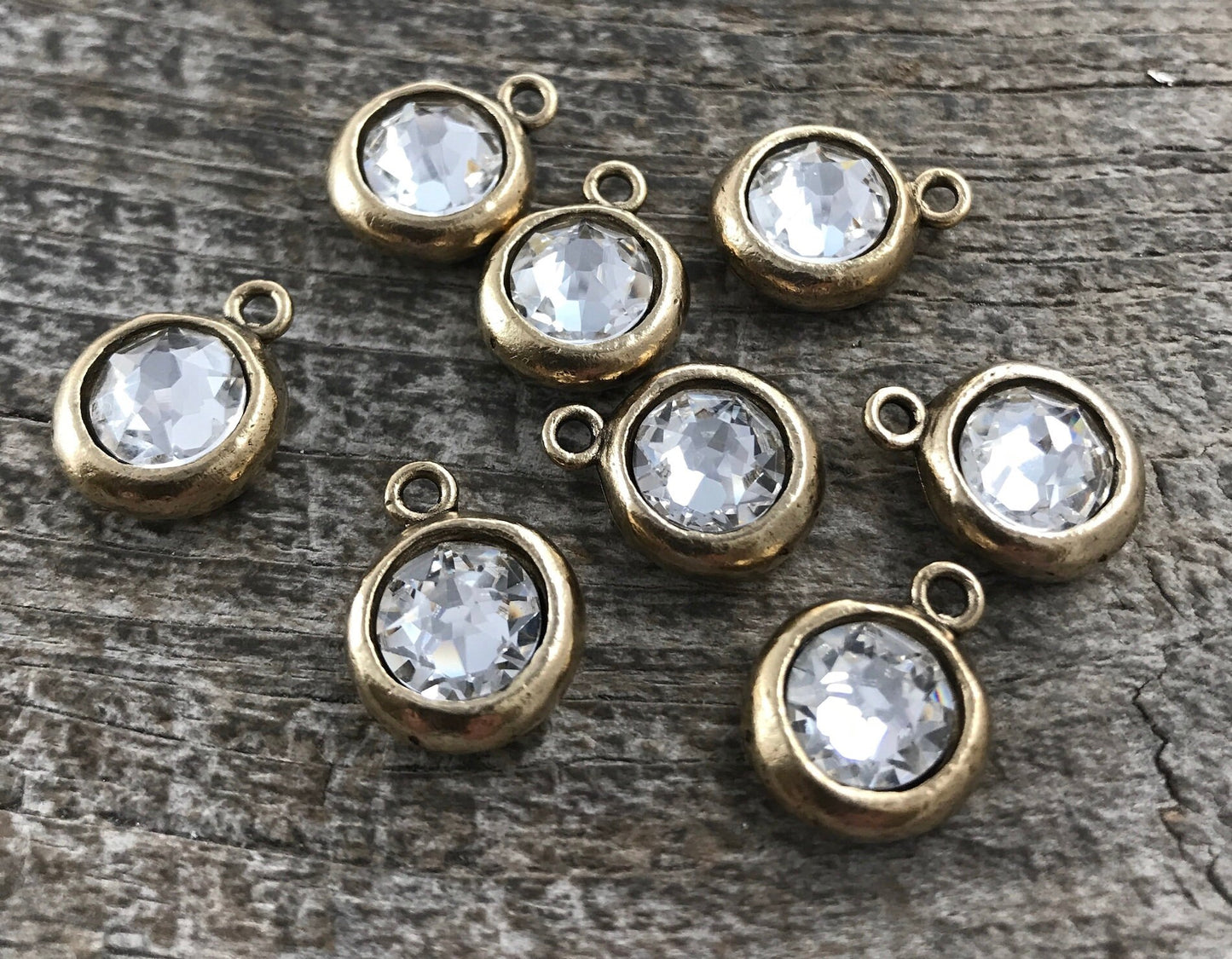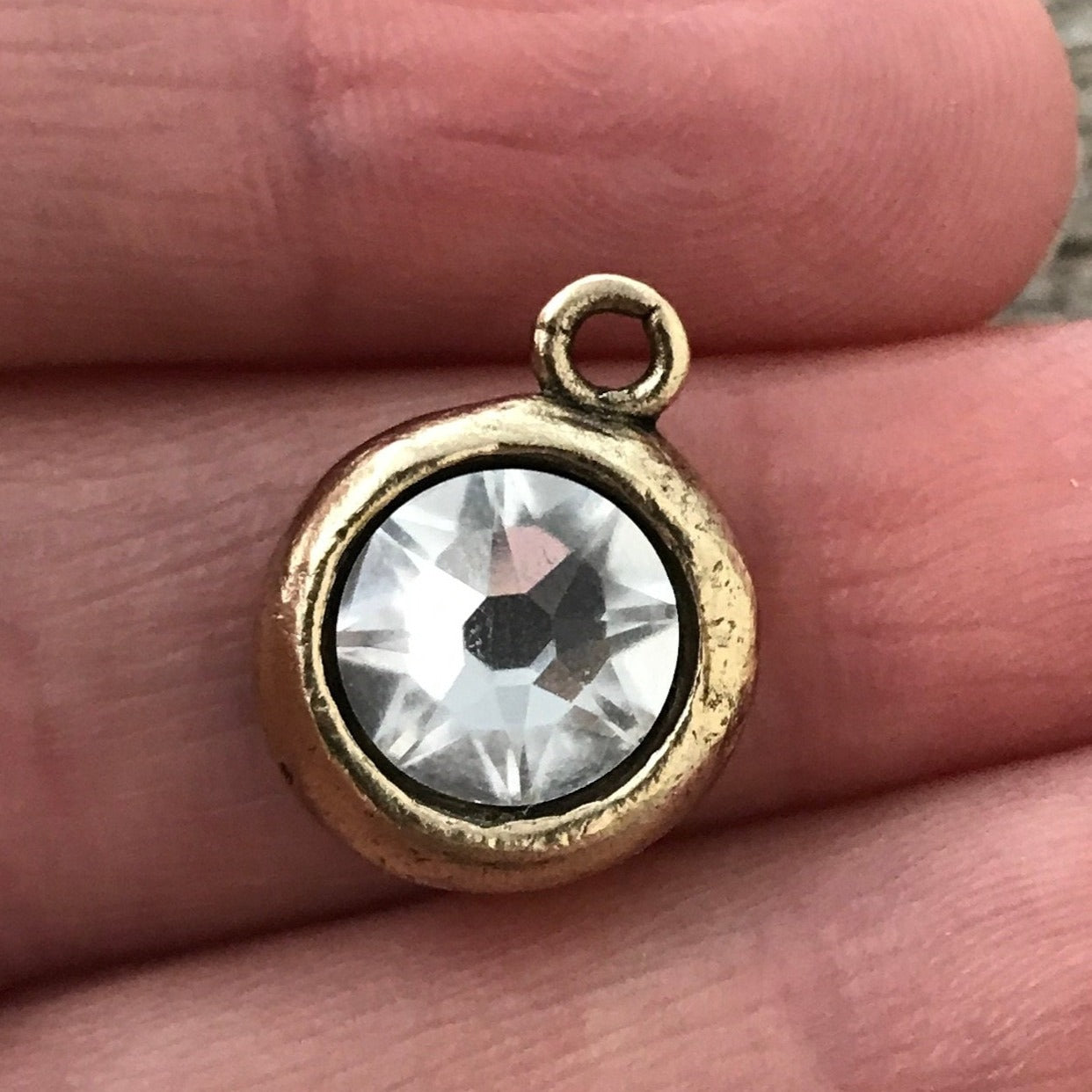 Add Swarovski Crystal Clear Charm, Antiqued Gold Pendant, Jewelry Making Artisan Findings, GL-S001 to the cart