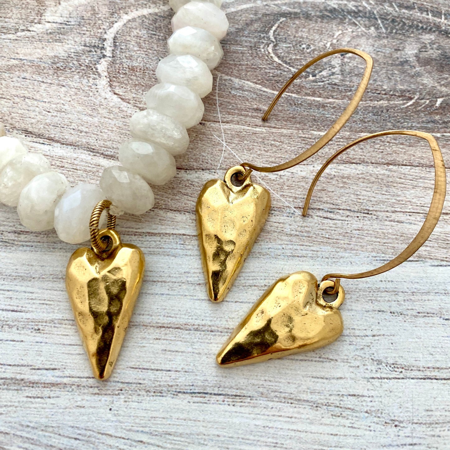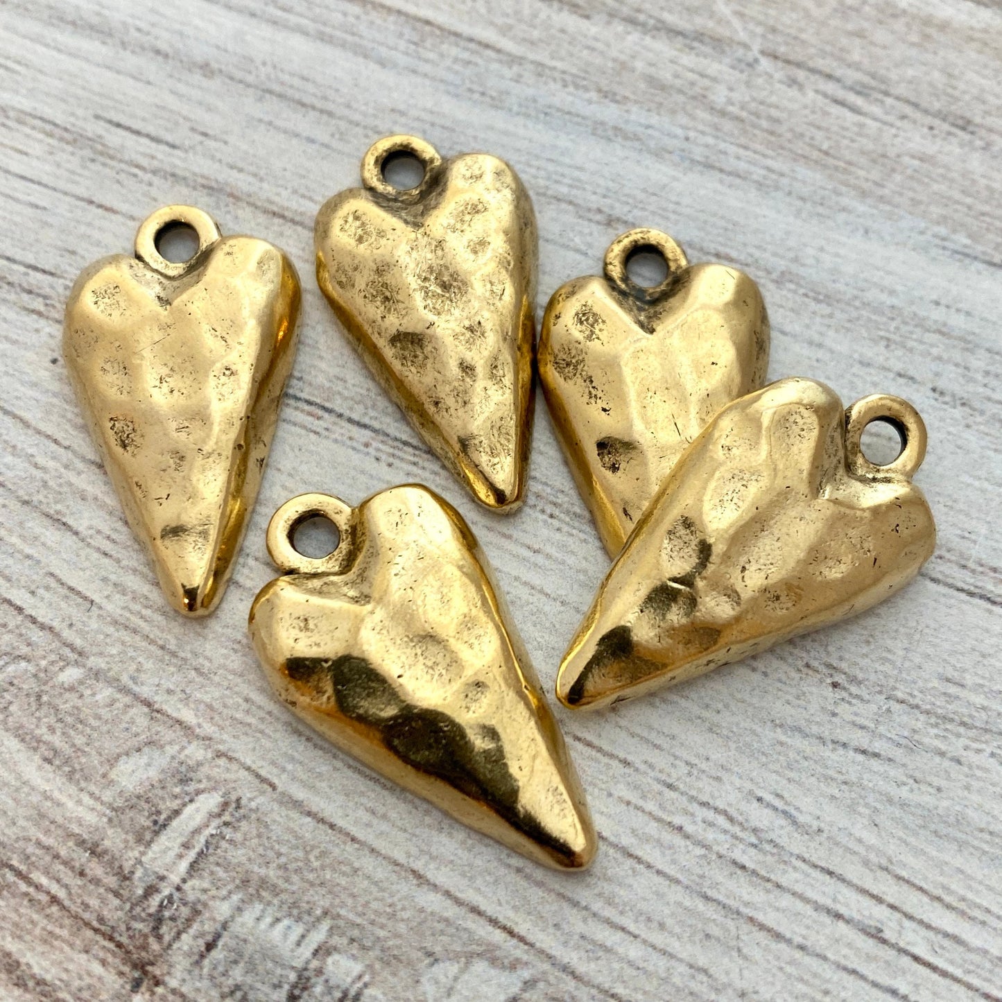 Gold Hammered Heart Charm, Skinny Heart Pendant, GL-6171