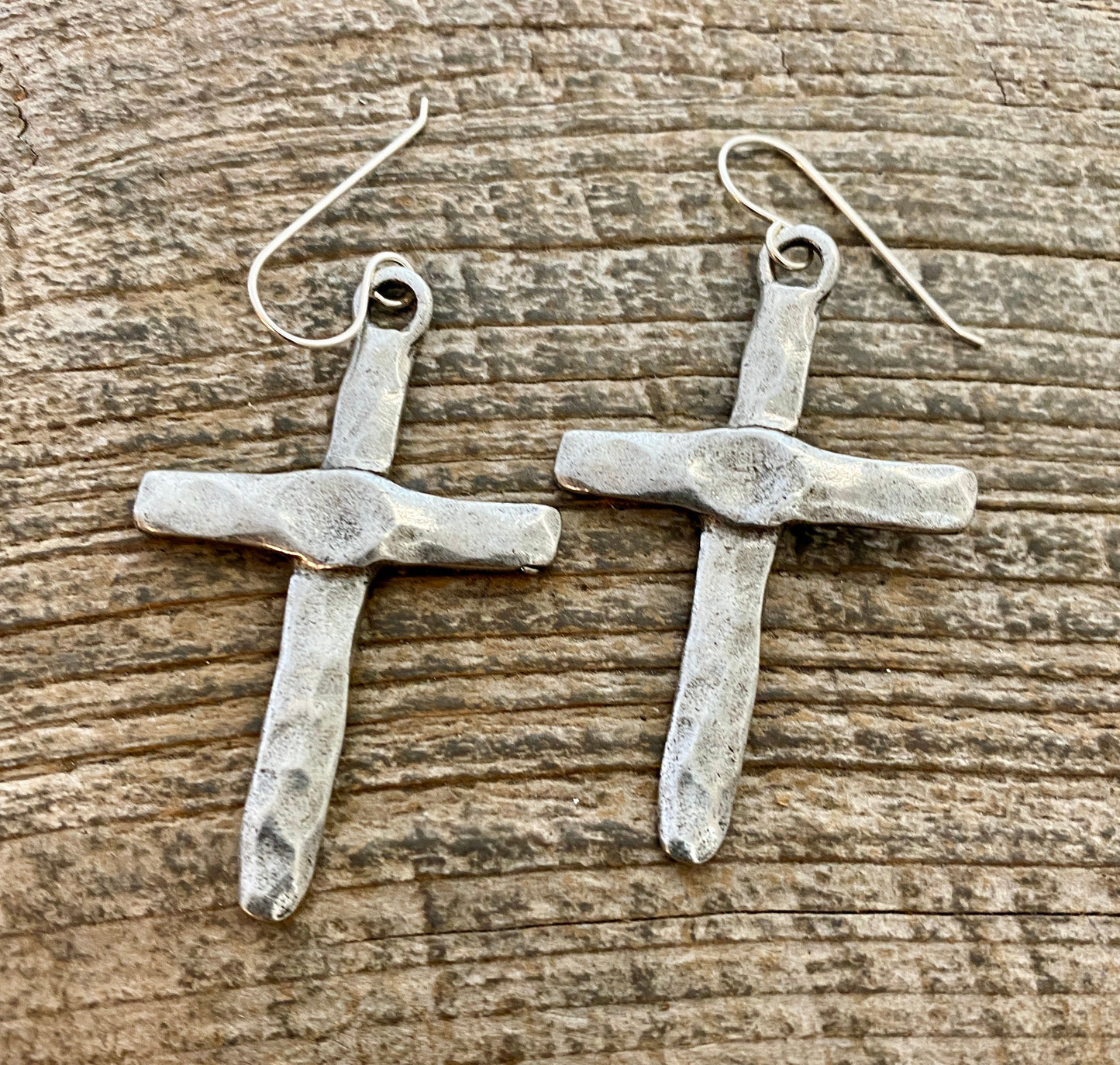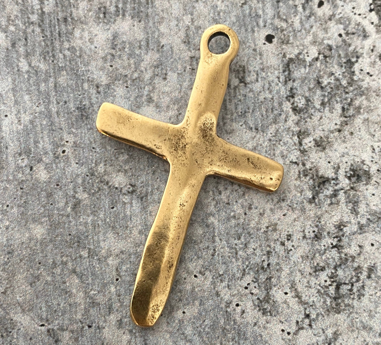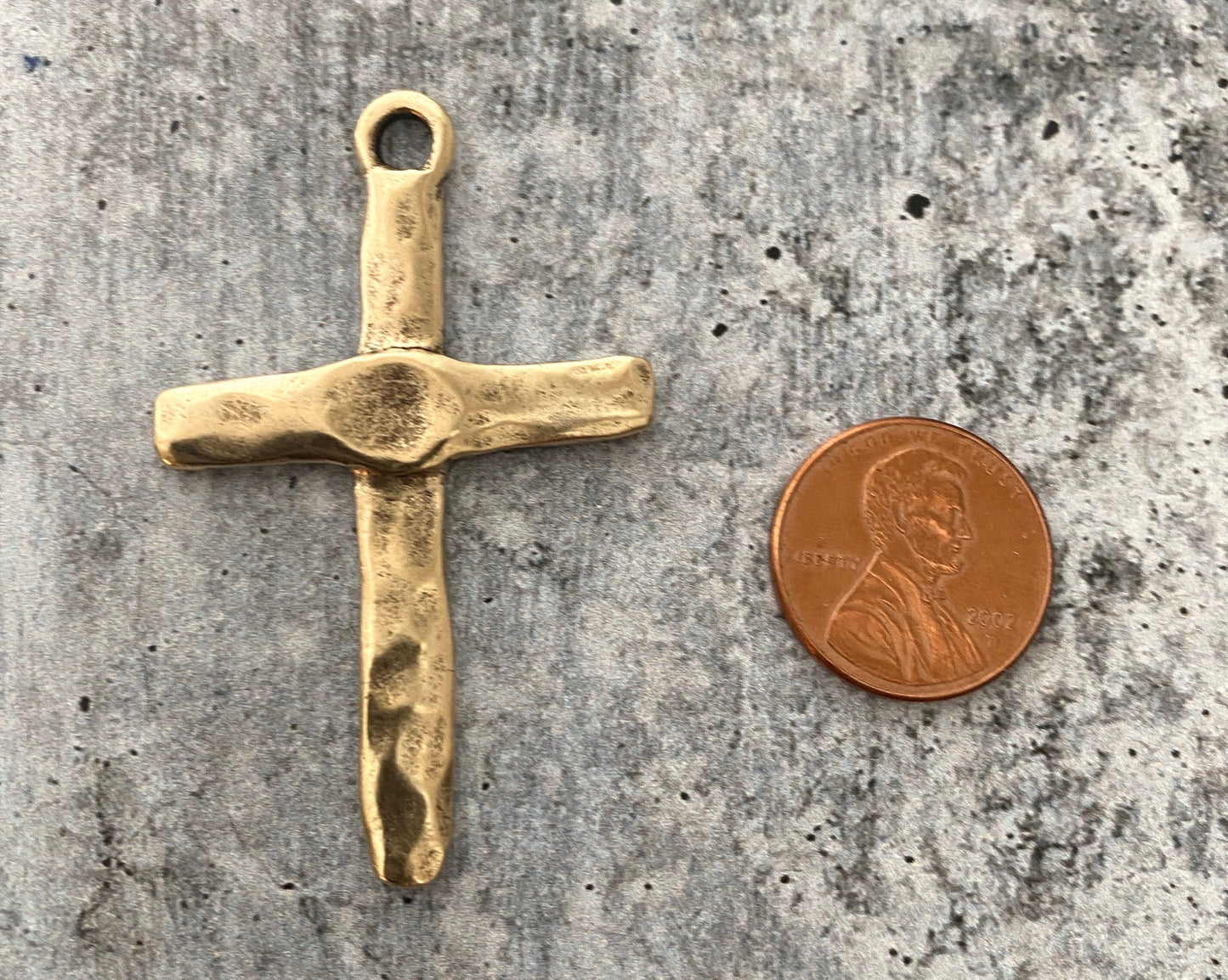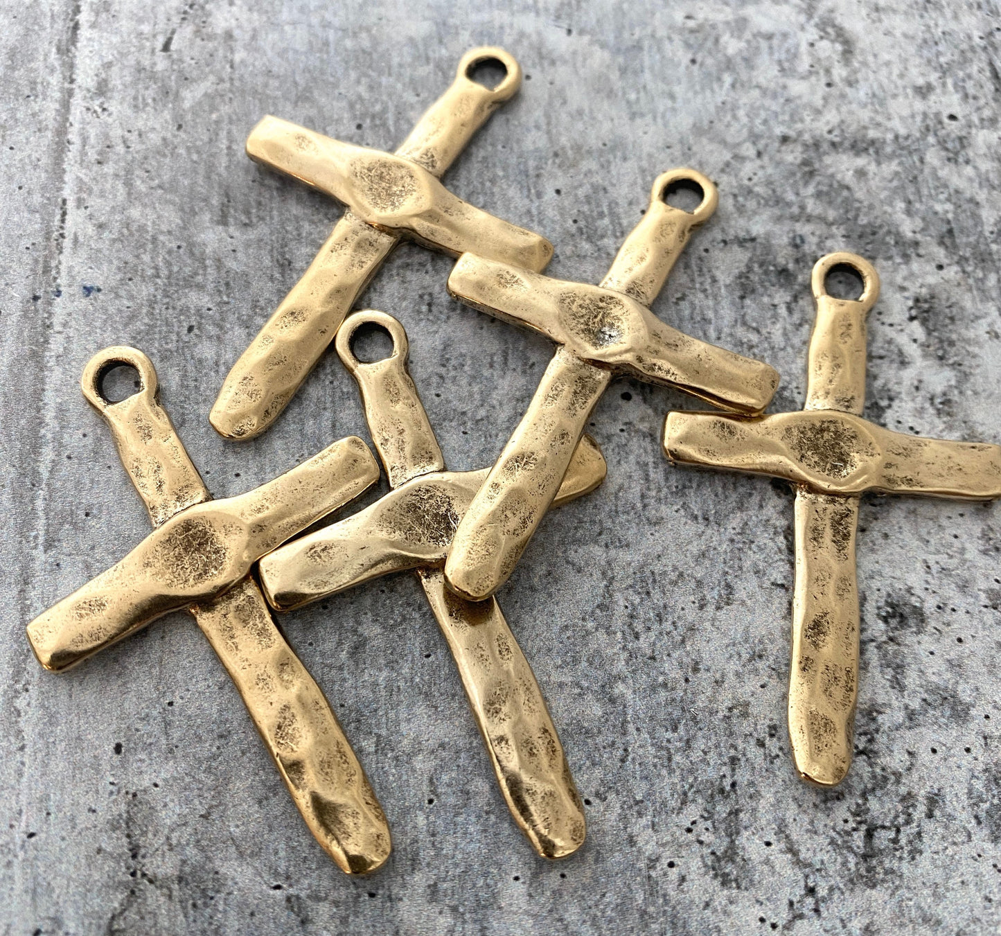 Artisan Hammered Cross Pendant, Gold Religious Jewelry Supplies, GL-6109