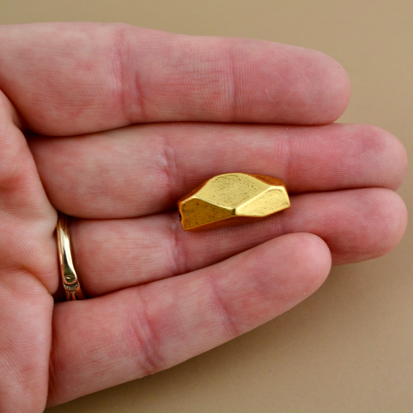 This geometric bead is a heavy duty bead that elevates the aesthetic and weight of your jewelry creations. This chunky bead is perfect for beaded bracelets and crafters seeking to elevate their accessories.