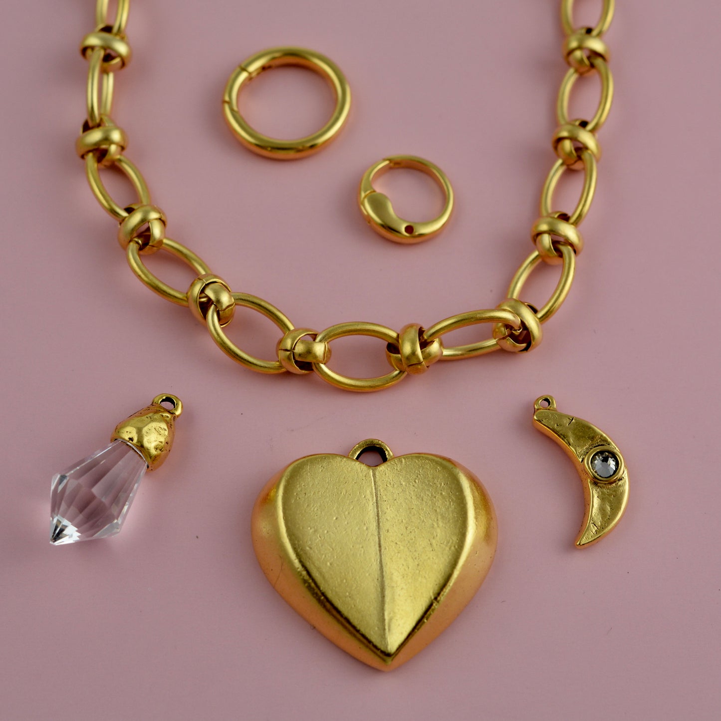 CC pewter components are made of high-quality pewter that is free of lead and cadmium. Most CC chain is made of regular steel, and some is made of brass. It is then plated with the various CC finishes. CC plating is known to hold up very well over time, but as always with any plated items, we recommend keeping it away from water and perfume.