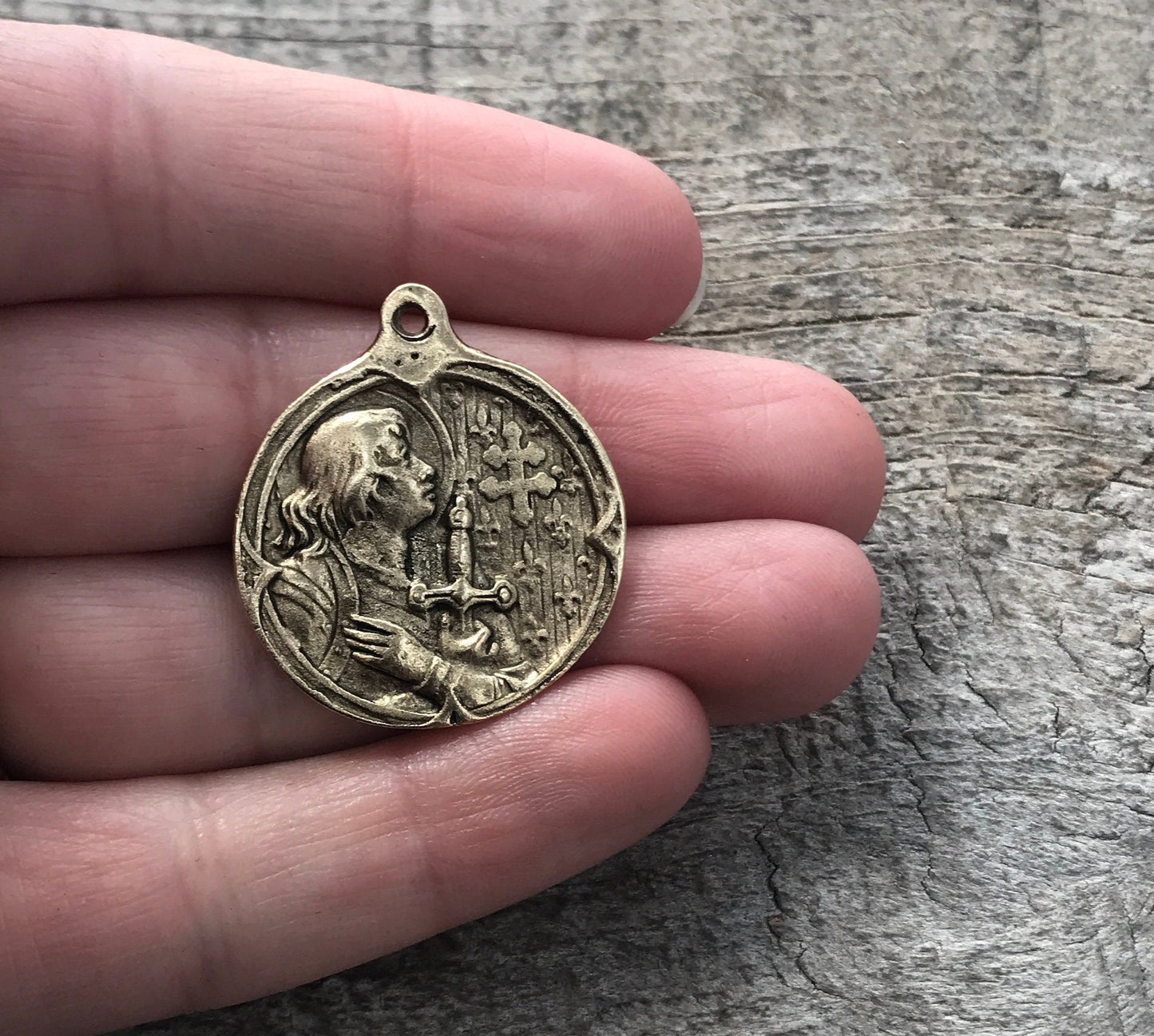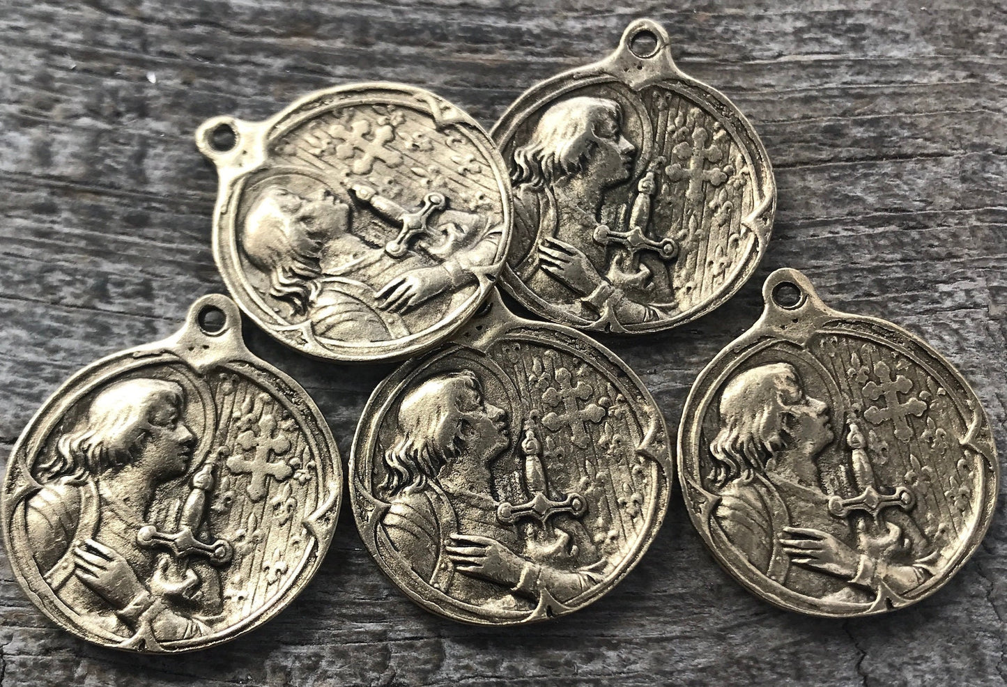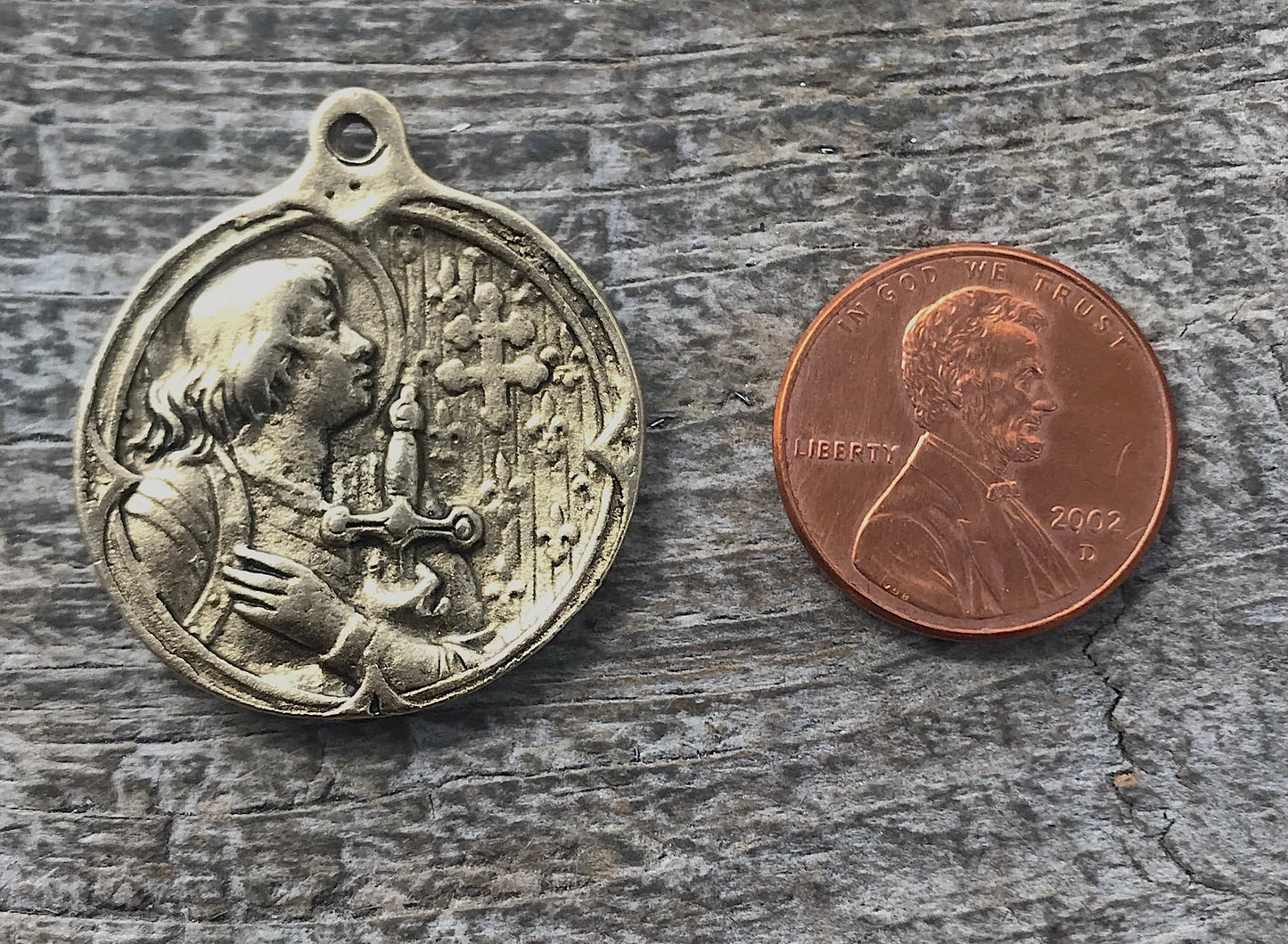 Joan of Arc Medal, Antiqued Gold Charm Pendant, Brave Woman, Saint of Soldiers, Religious Christian Catholic Jewelry Supplies, GL-6057