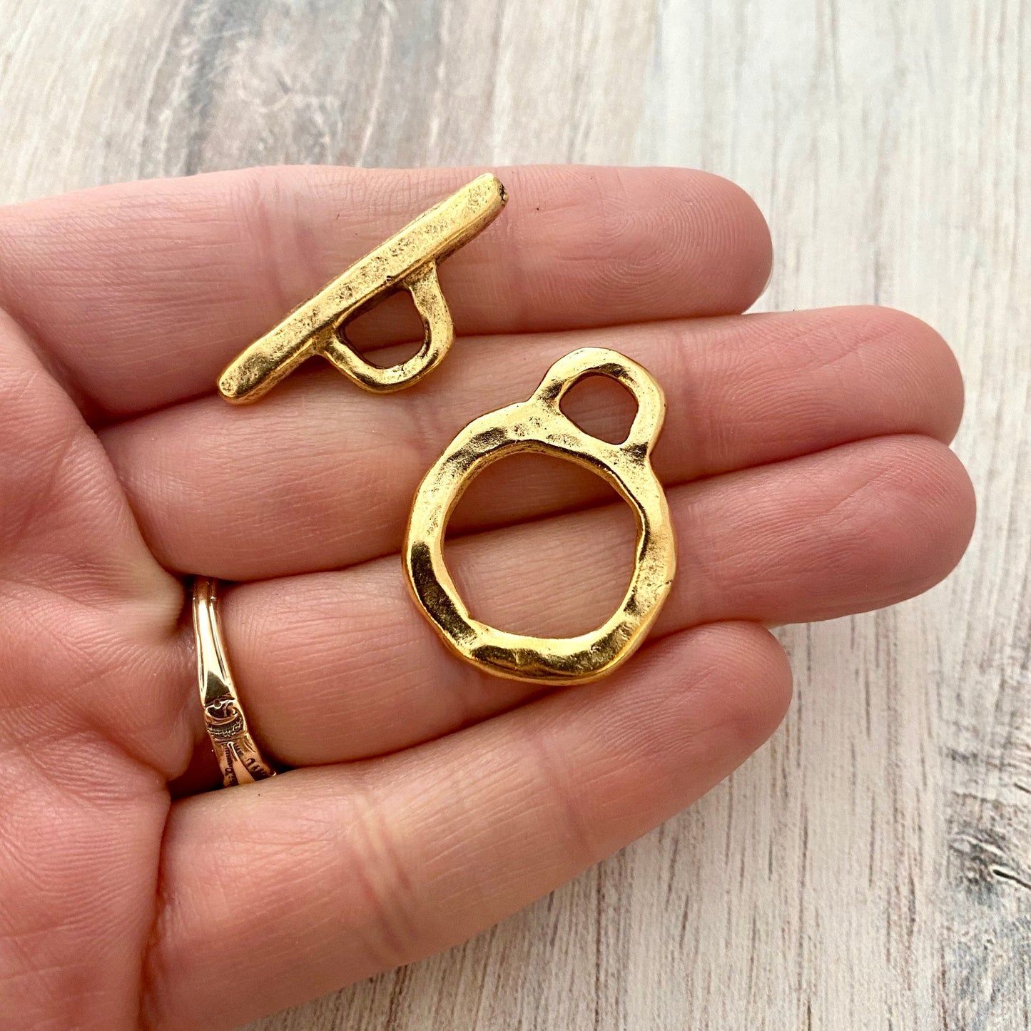 Large Organic Toggle Clasp, Antiqued Gold Closure, Artisan Necklace Jewelry Components, GL-6188