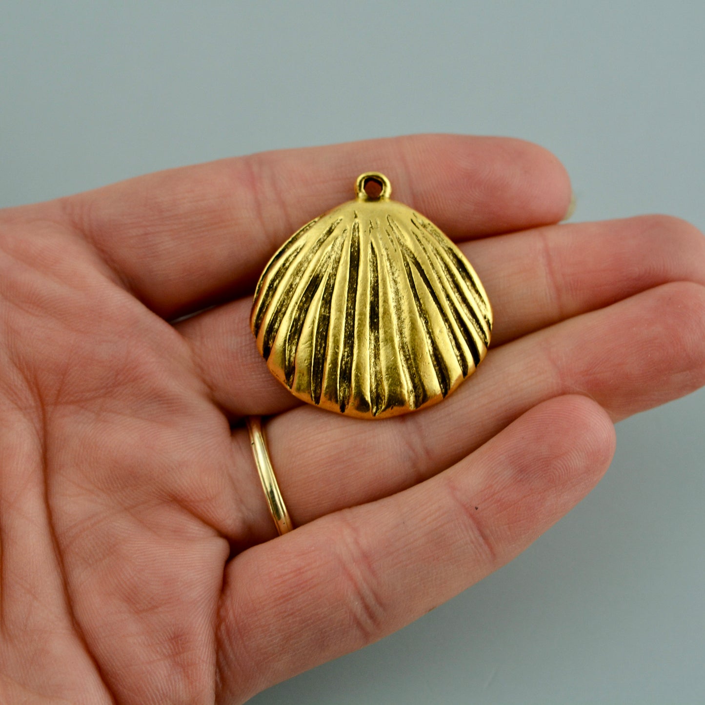 Large Seashell Charm, Antiqued Gold Ocean Beach Pendant, Jewelry Making Findings, Carson's Cove, GL-6368