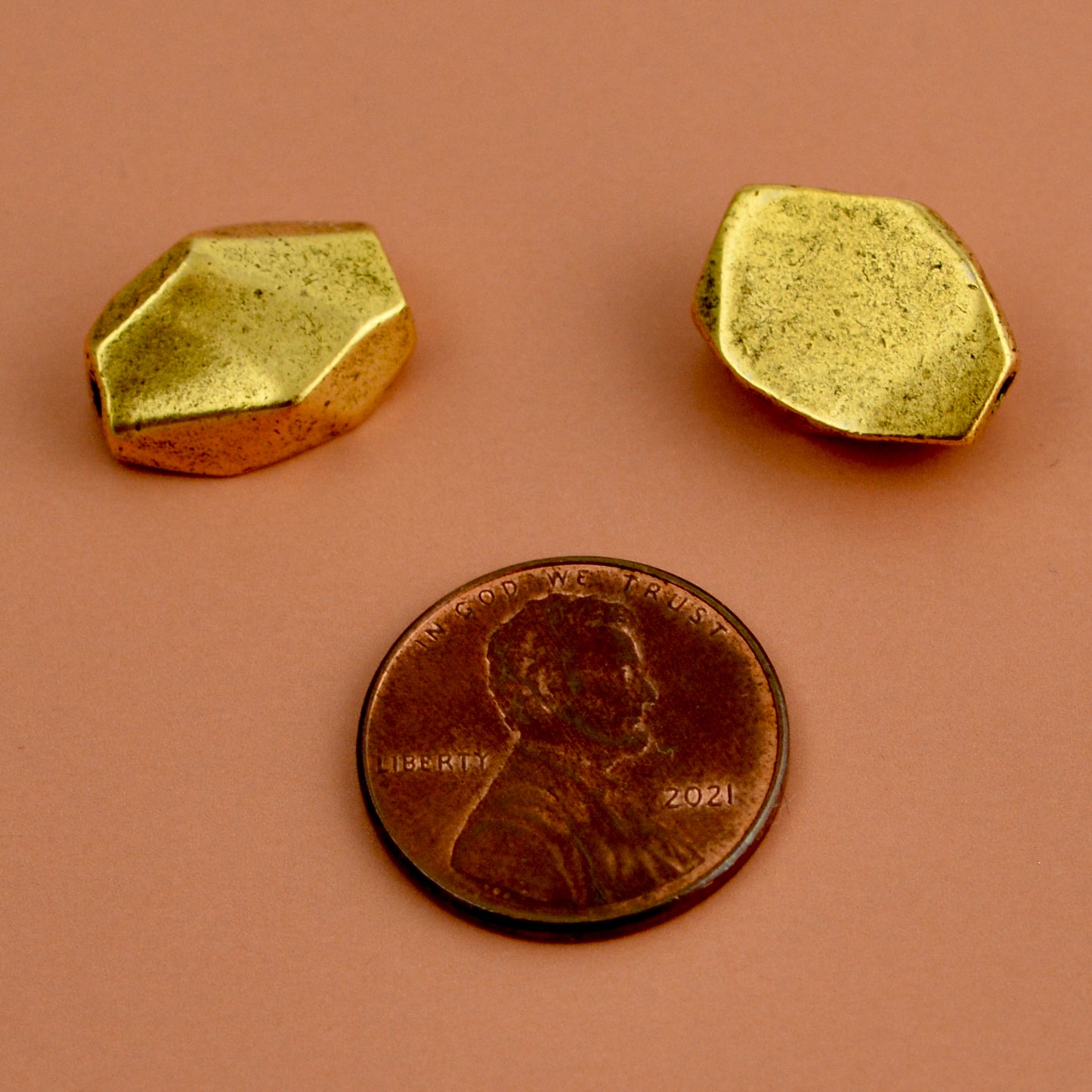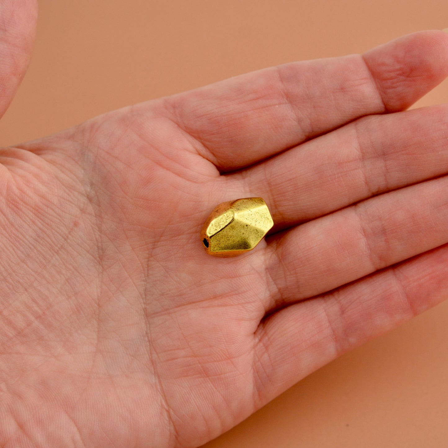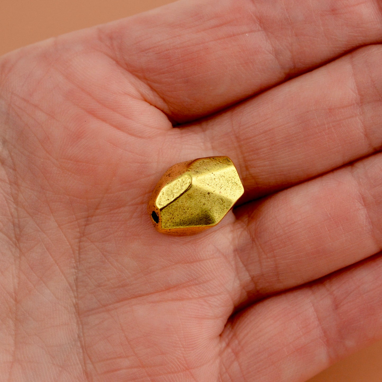 One Geometric Faceted Bead, Medium Artisan Spacer Tube Bead, Antiqued Gold Finding, Jewelry Components Supplies, GL-6376