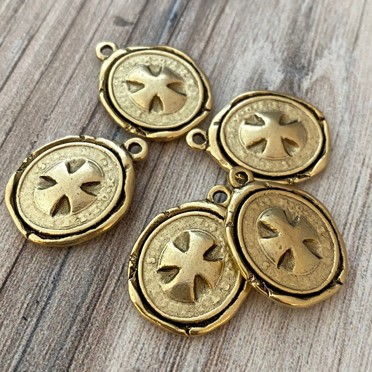 Saint St. Benedict Medal, Wax Seal Charm, Benedictan Cross, Antiqued Catholic Religious Pendant, Jewelry Supplies, GL-6189