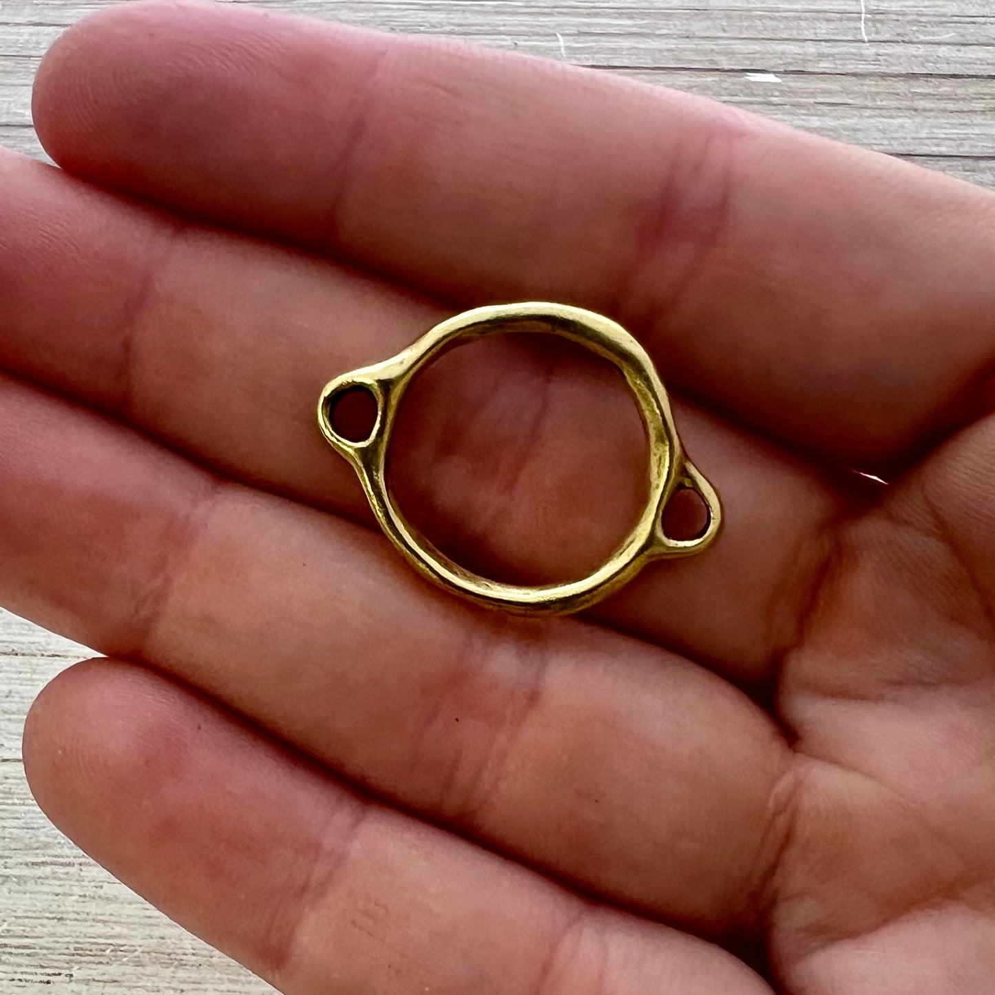 Gold Two Way Connector, Artisan Hammered Connector, Earring Hoop, Charm Holder, GL-6259