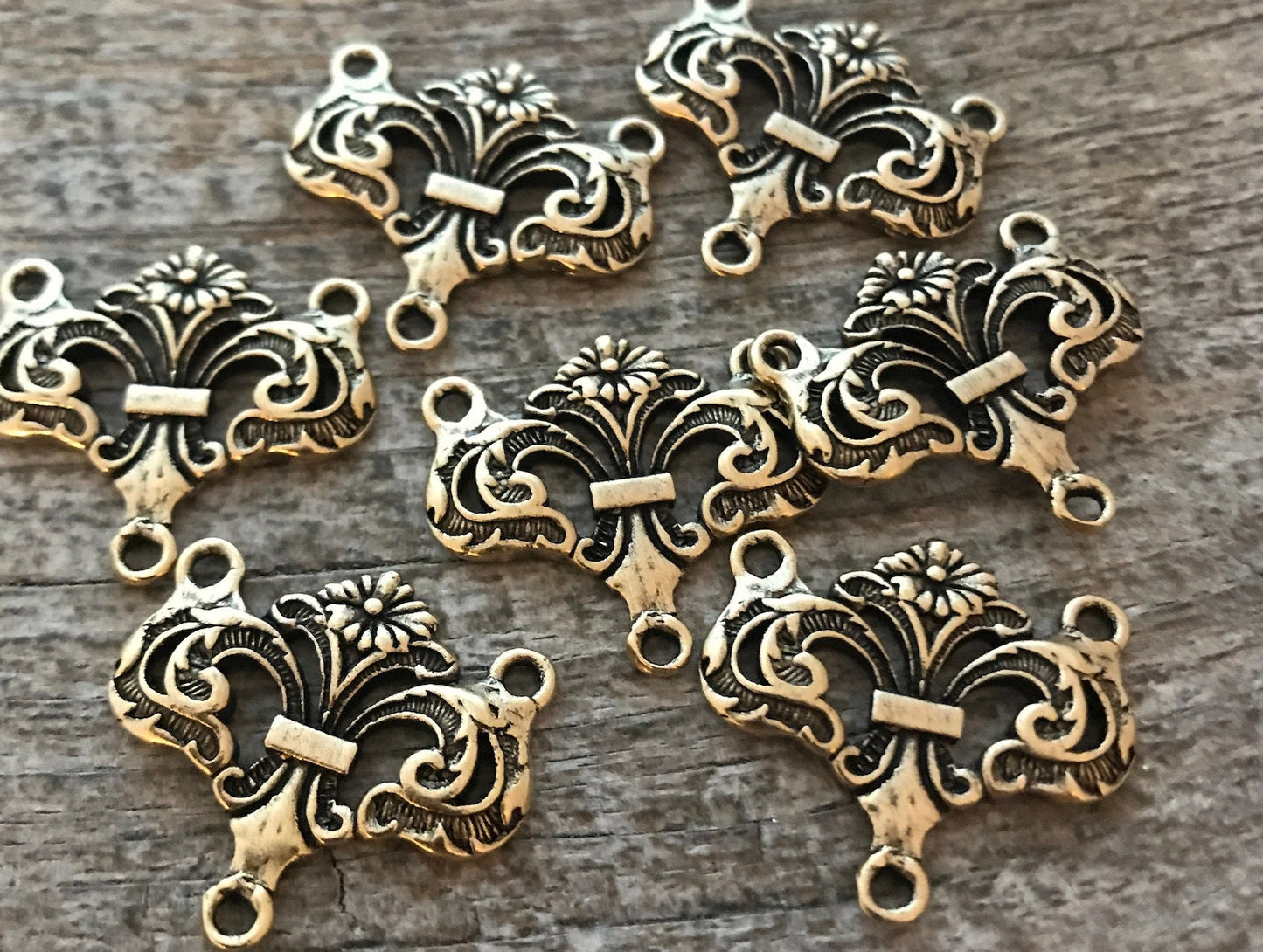 Rosary Centerpiece Connector, Gold Flower Connector, Antiqued Gold Center, Rosary Making Supply, Y Necklace, Jewelry Supplies, GL-6048