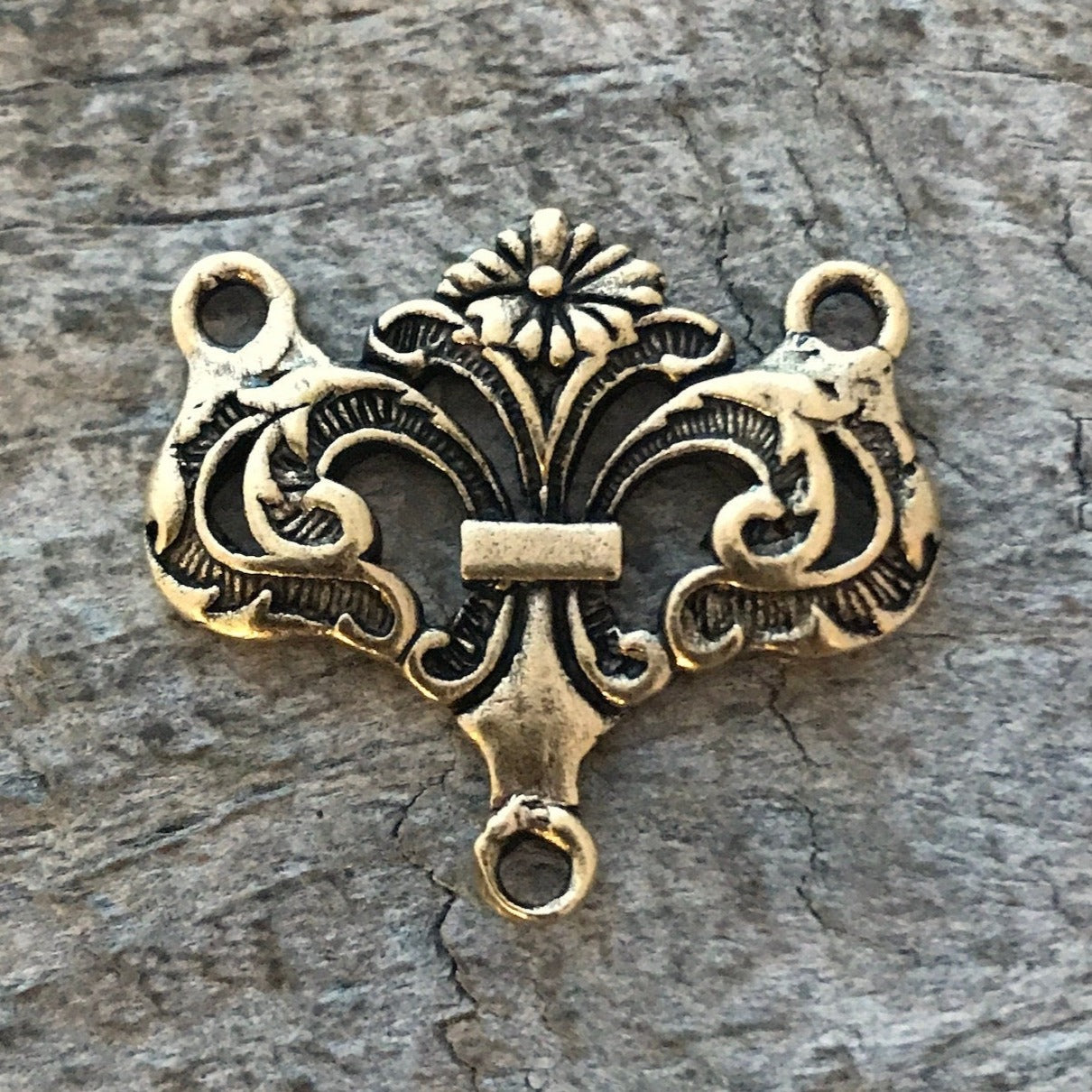 Add Rosary Centerpiece Connector, Gold Flower Connector, Antiqued Gold Center, Rosary Making Supply, Y Necklace, Jewelry Supplies, GL-6048 to the cart