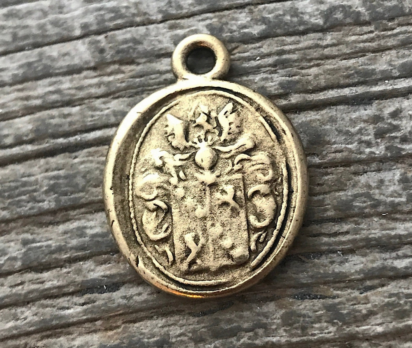 Wax Seal Charm, Armorial Wax Seal, Family Crest Pendant, Antiqued Gold Charm, NEW GL-6054