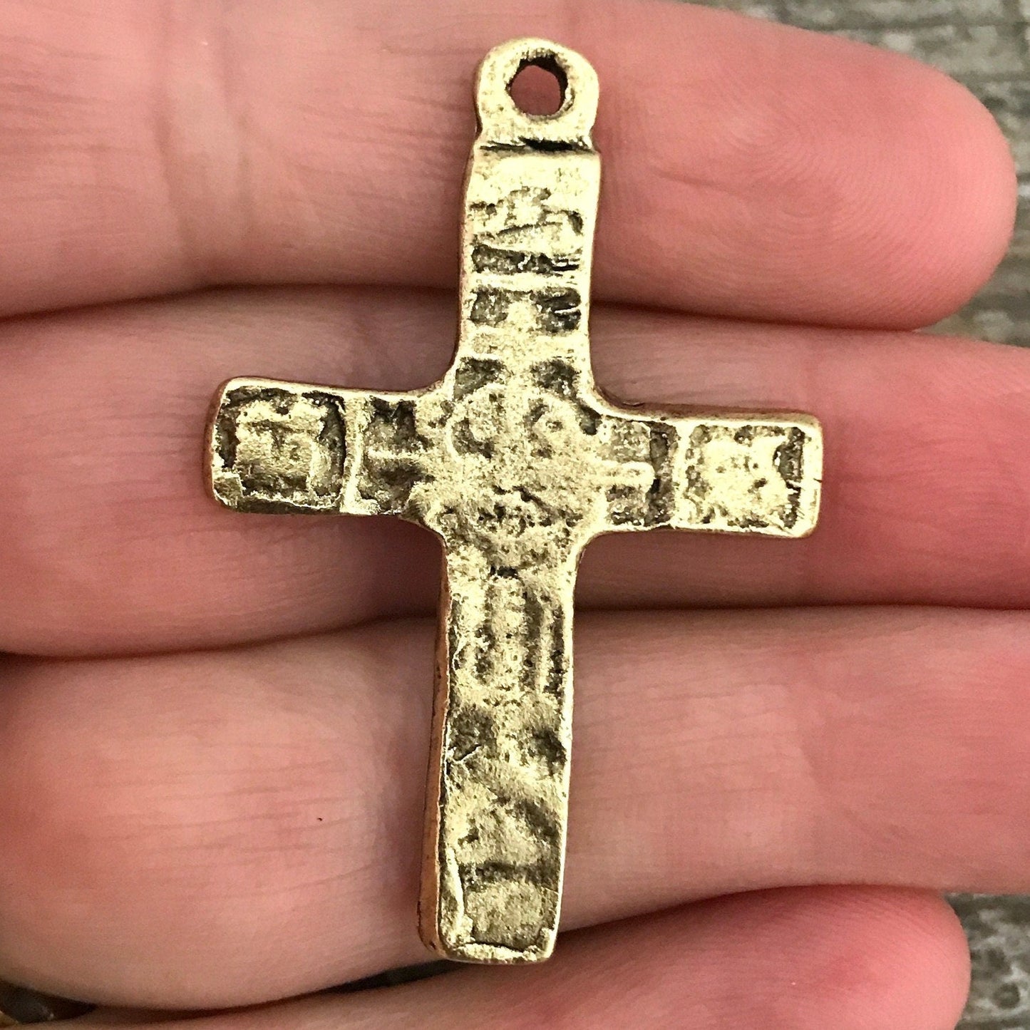 Ancient Cross, Antiqued Gold Cross Pendant, Large Artisan Cross, Crucifix, GL-6059