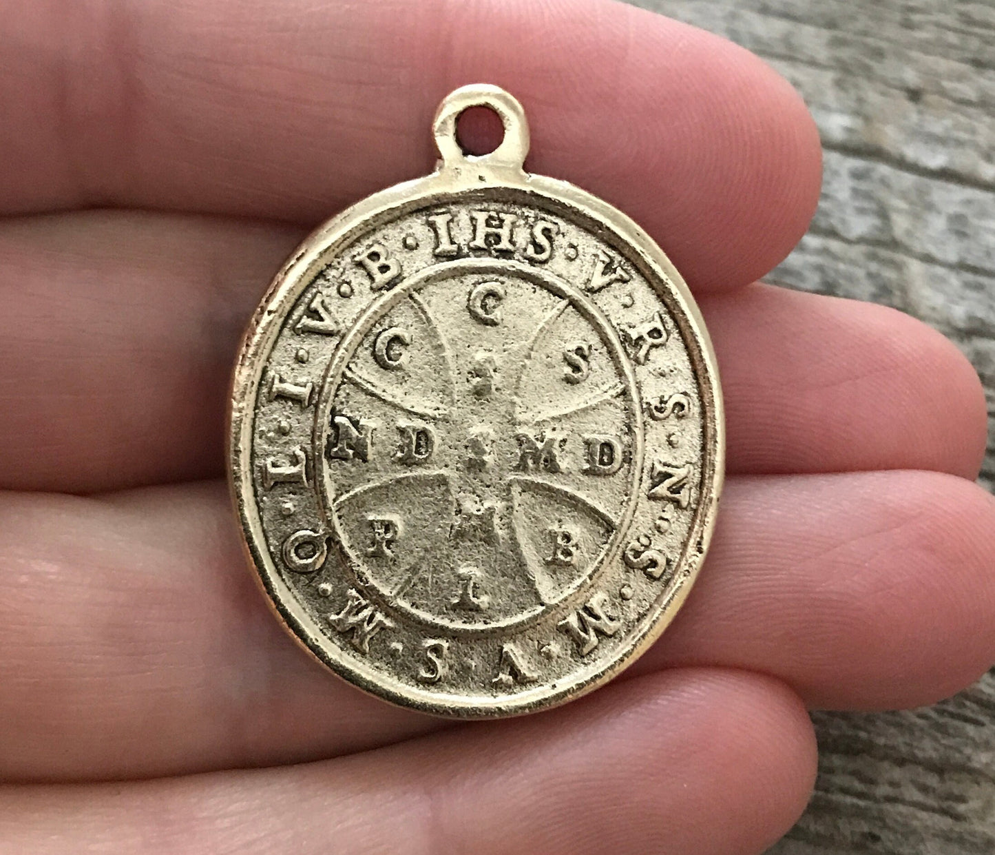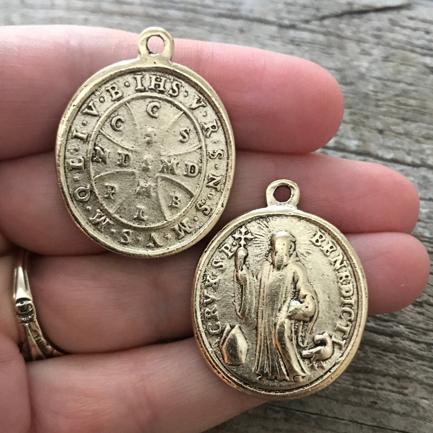 Saint St. Benedict Medal, Benedictan Cross, Antiqued Catholic Medal, Religious Pendant Charm Jewelry Supplies, GL-6078