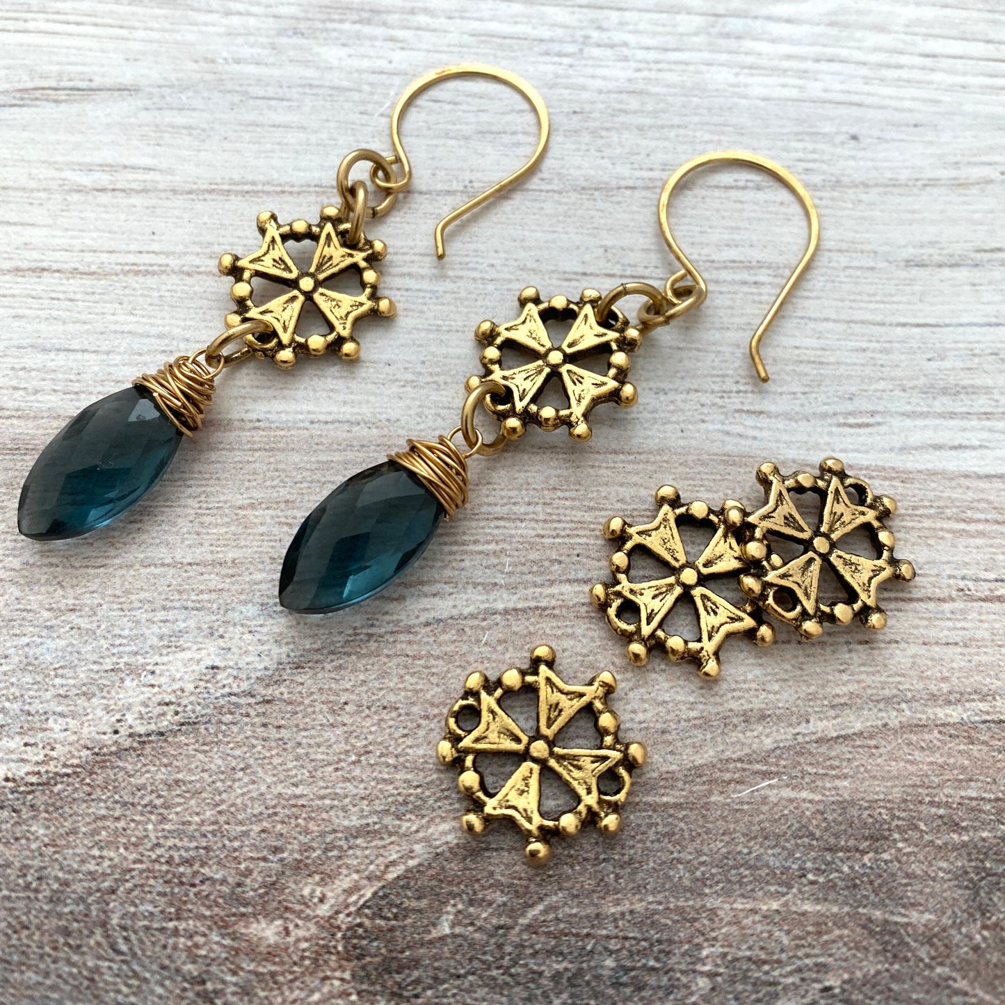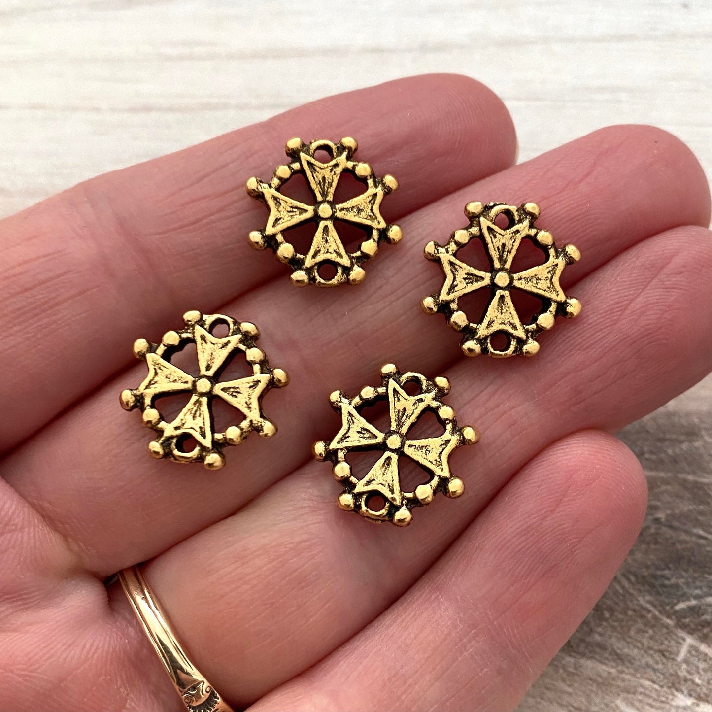 4 Cross Connector, French Huguenot Cross, Antiqued Gold Small Cross Charm, Carsons Cove, GL-6132