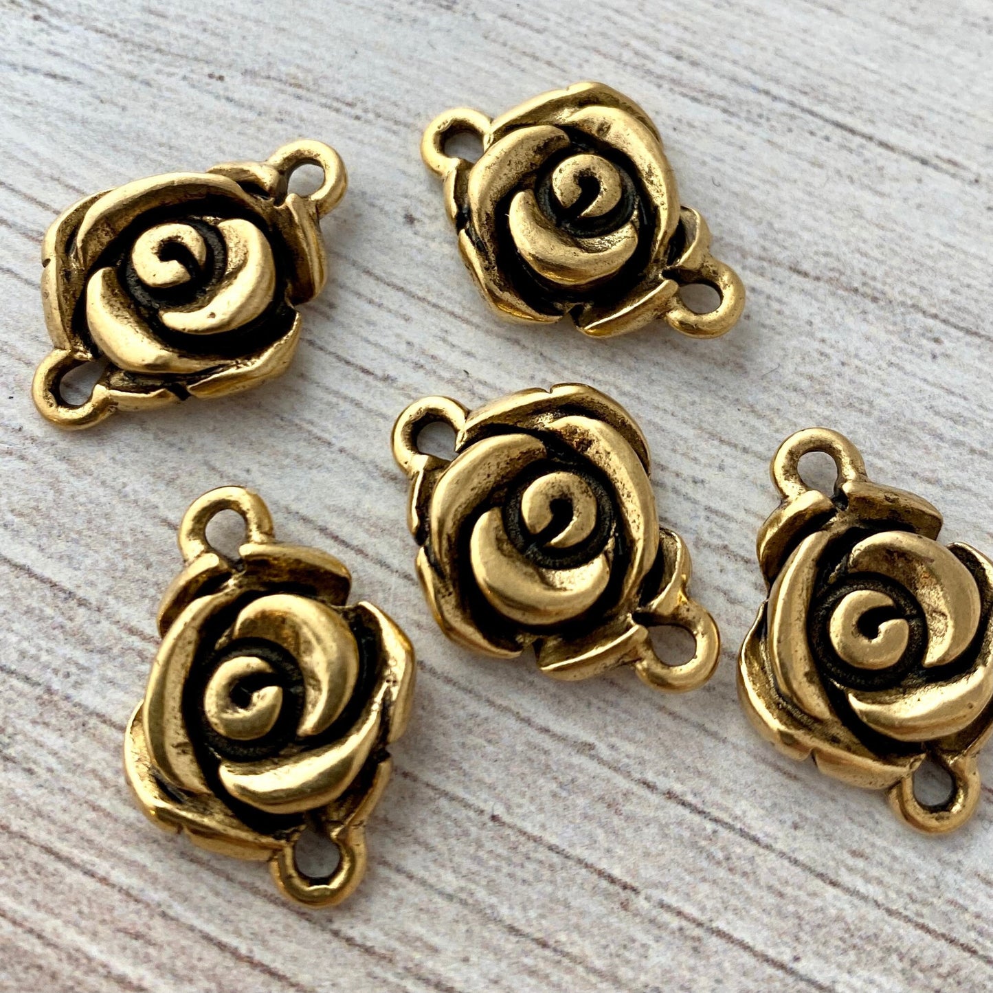 2 Simple Rose Connector, Antiqued Gold Flower Charm, Jewelry Making Supplies, Carsons Cove, GL-6155