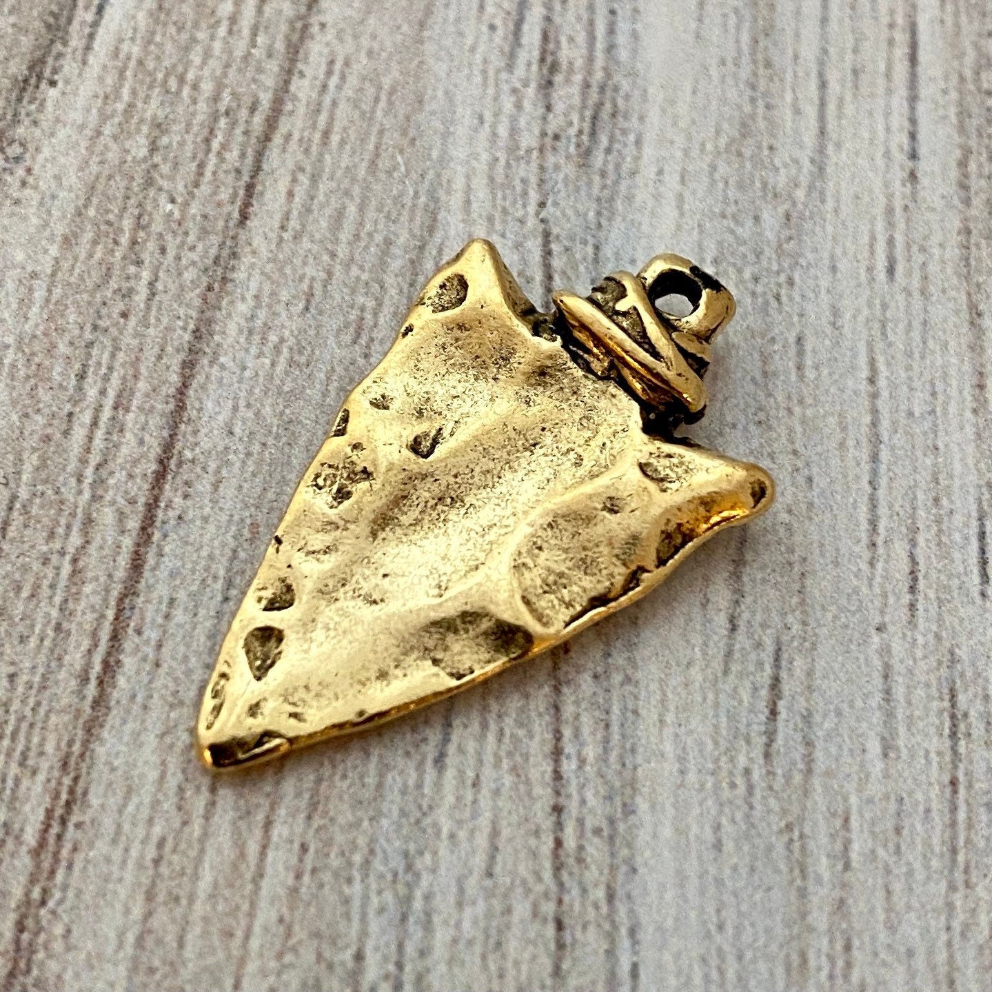 Arrowhead Charm, Gold Pendant Nature Charm, Native American Jewelry, Vintage Tribal Charm, Spiritual Jewelry, GL-6187