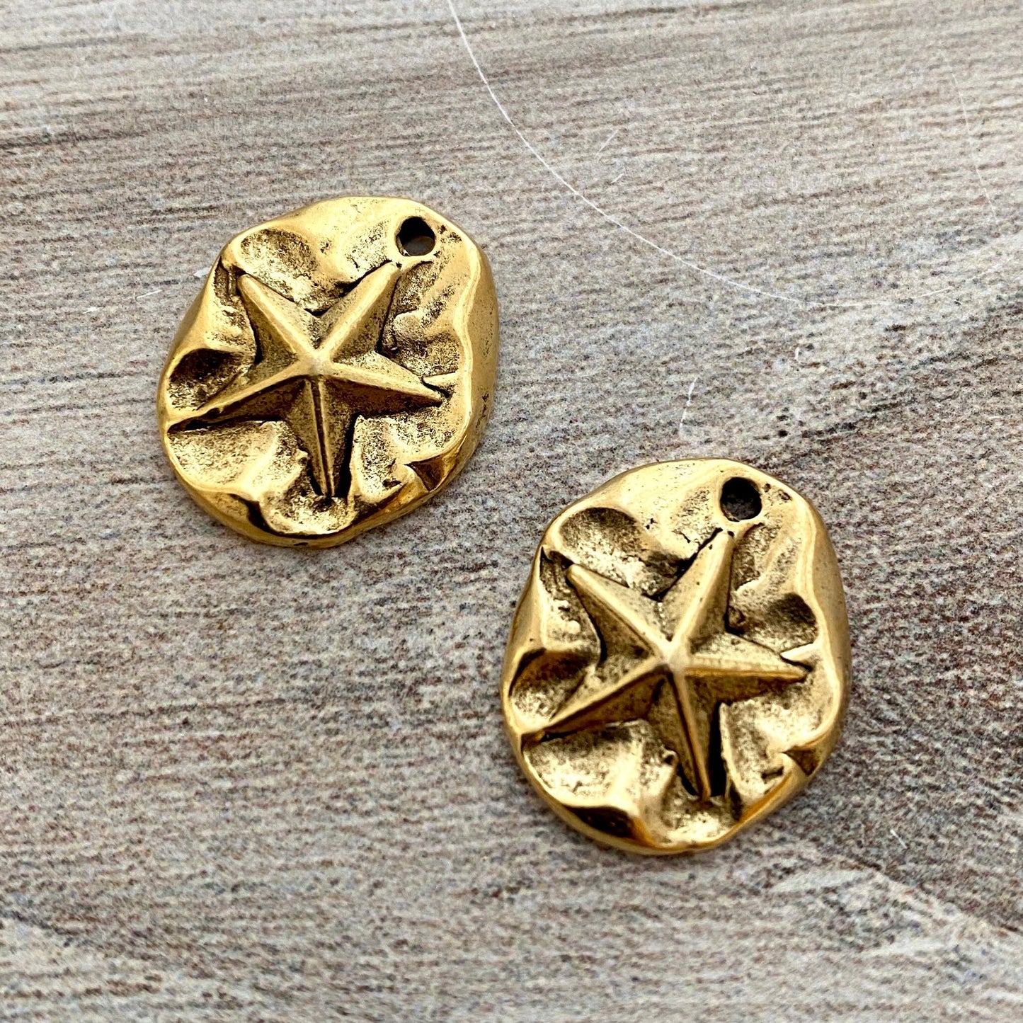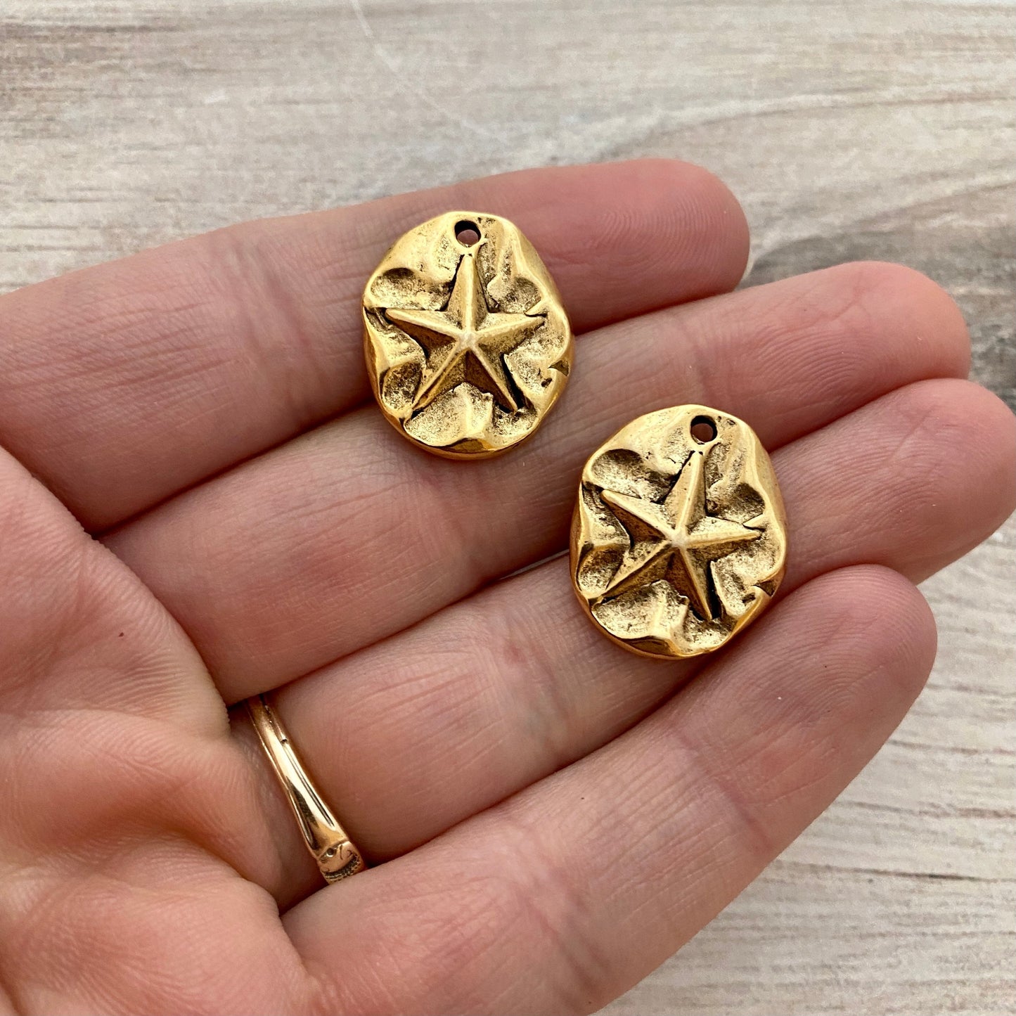 2 Star Charm, Simple Sand Dollar Antiqued Gold Star, Carson's Cove, GL-6194