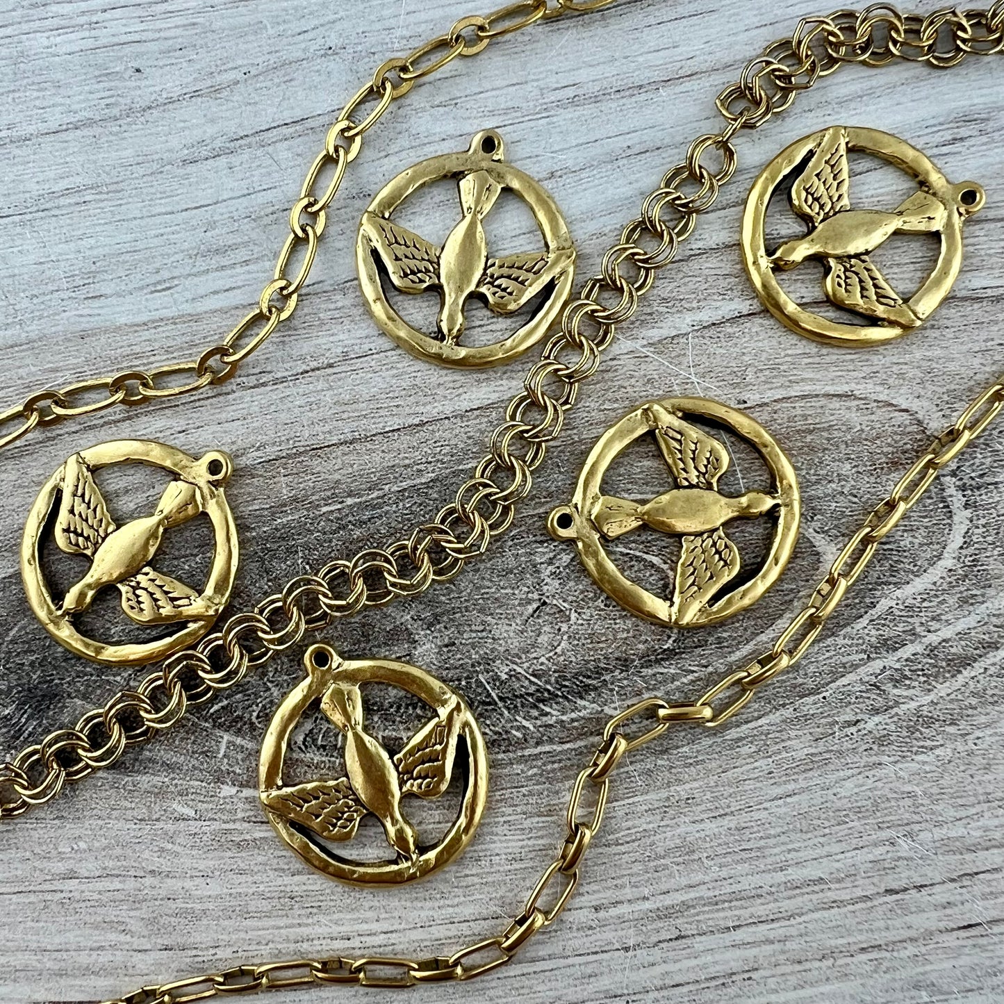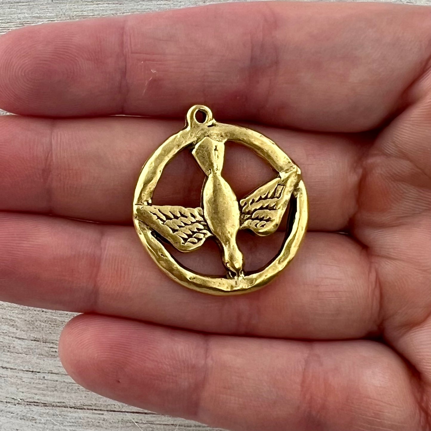 Circle Dove Pendant, Antiqued Gold Circle Charm, Jewelry Findings, GL-6297