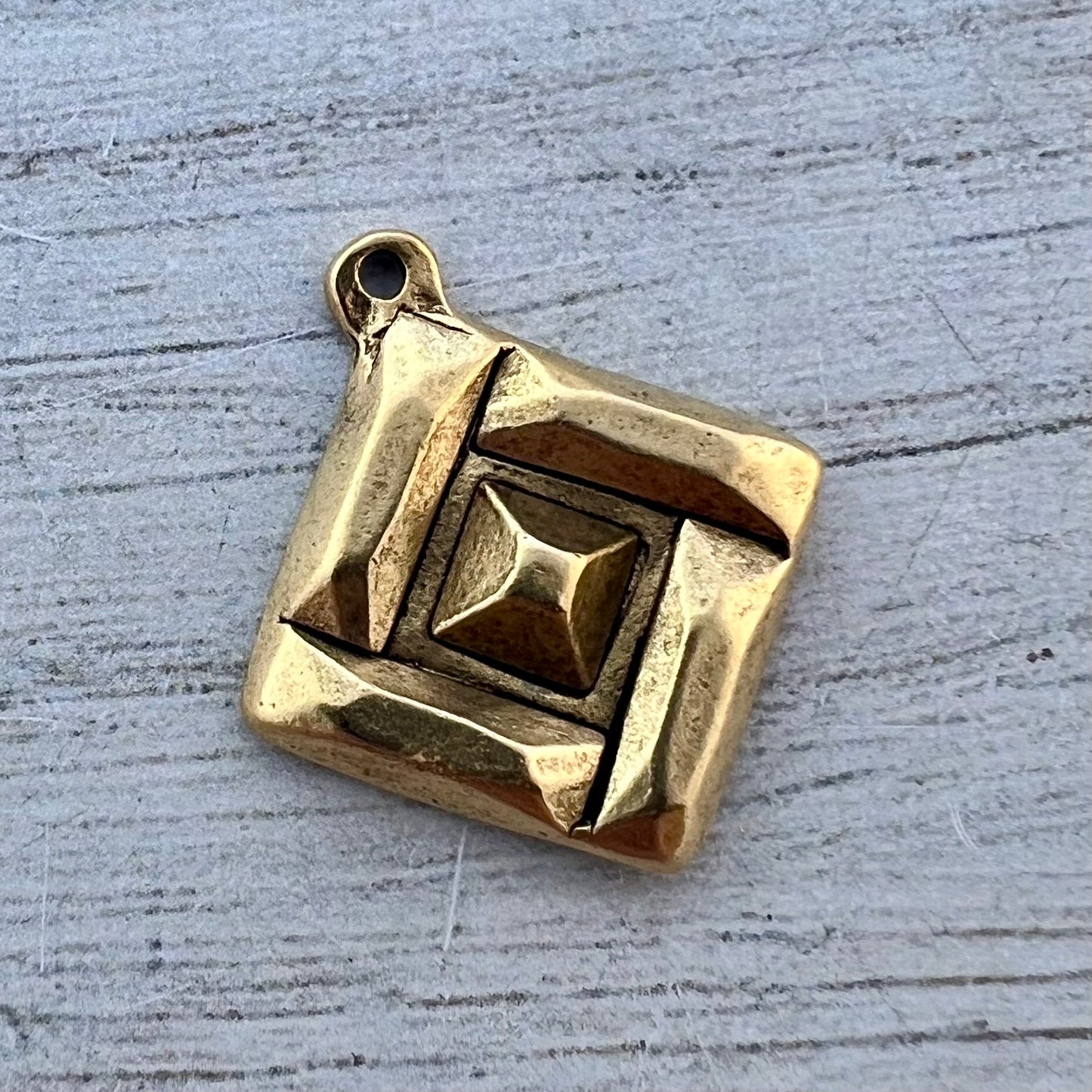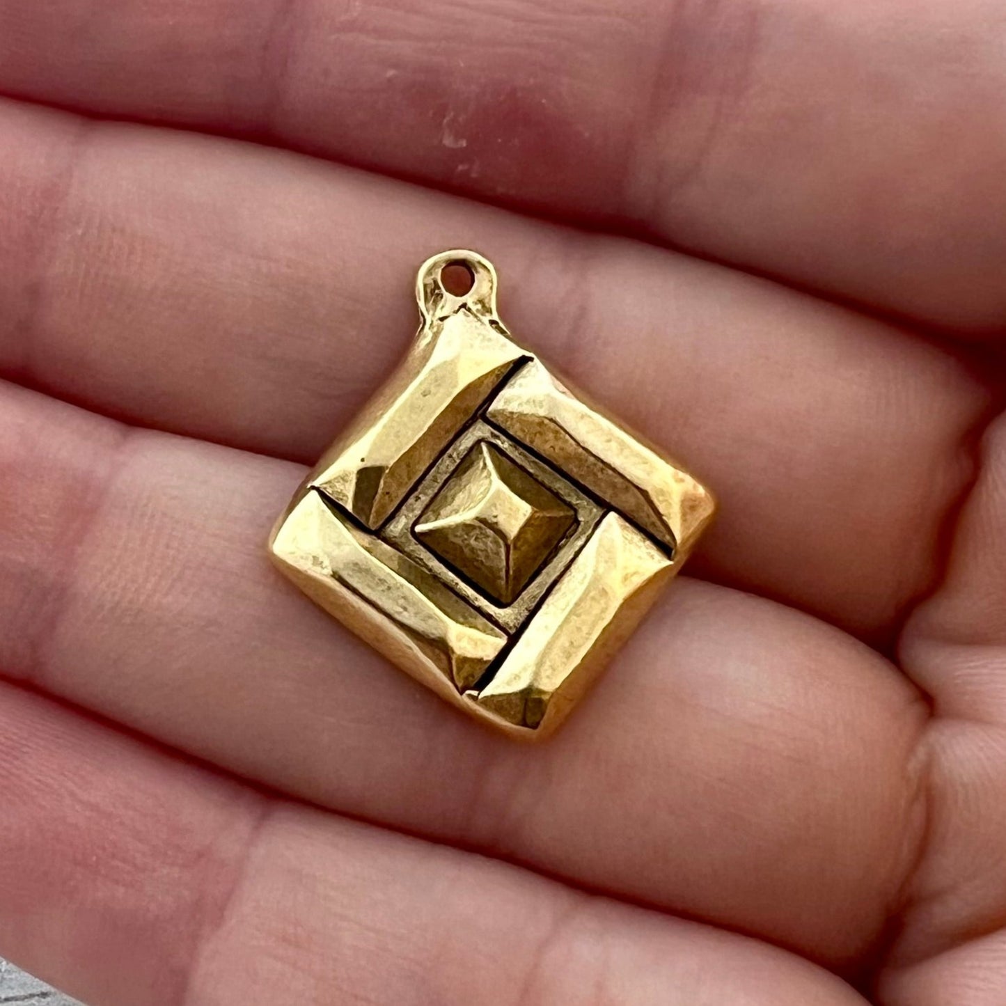 Geometric Abstract Diamond Shape Charm, Antiqued Gold Pendant, Artisan Jewelry Components Supplies, GL-6292