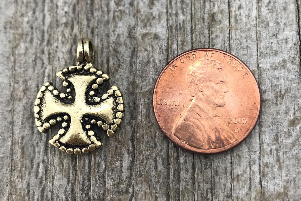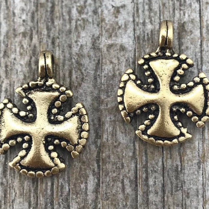 2 Cross Charm, Antiqued Gold Cross, Maltese Cross, Religious Cross, Catholic Cross Christian Jewelry Cross for Jewelry Making, GL-6031