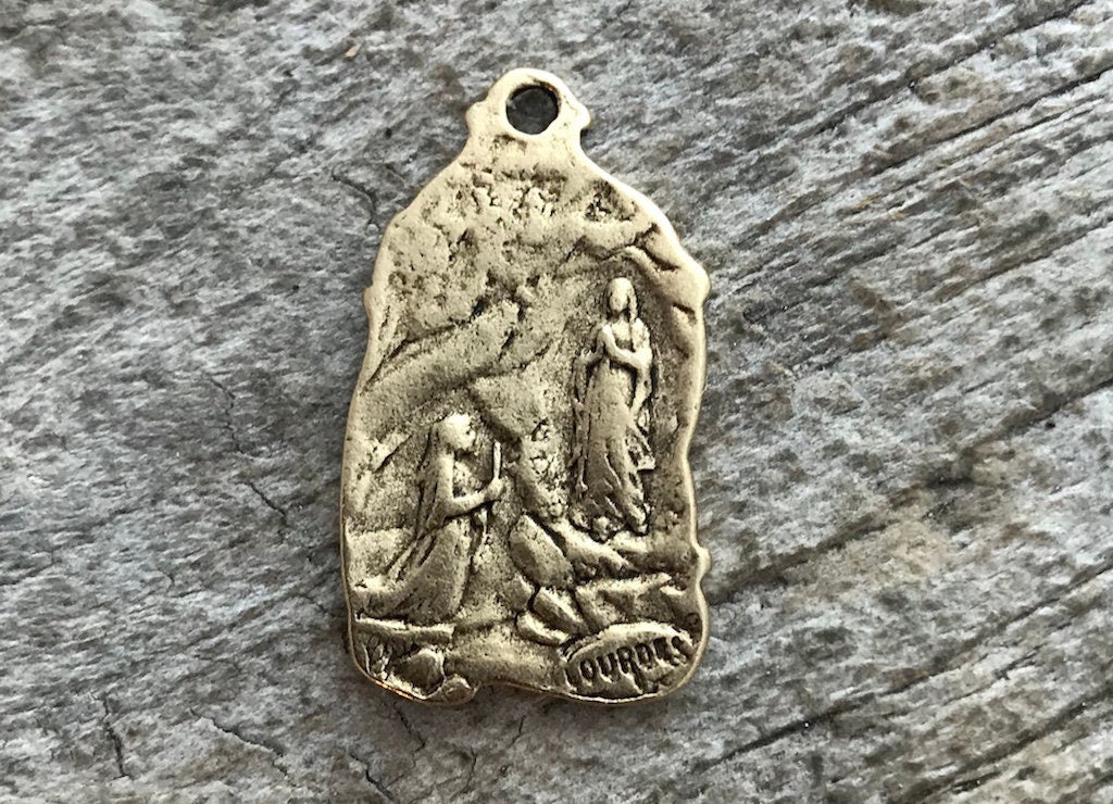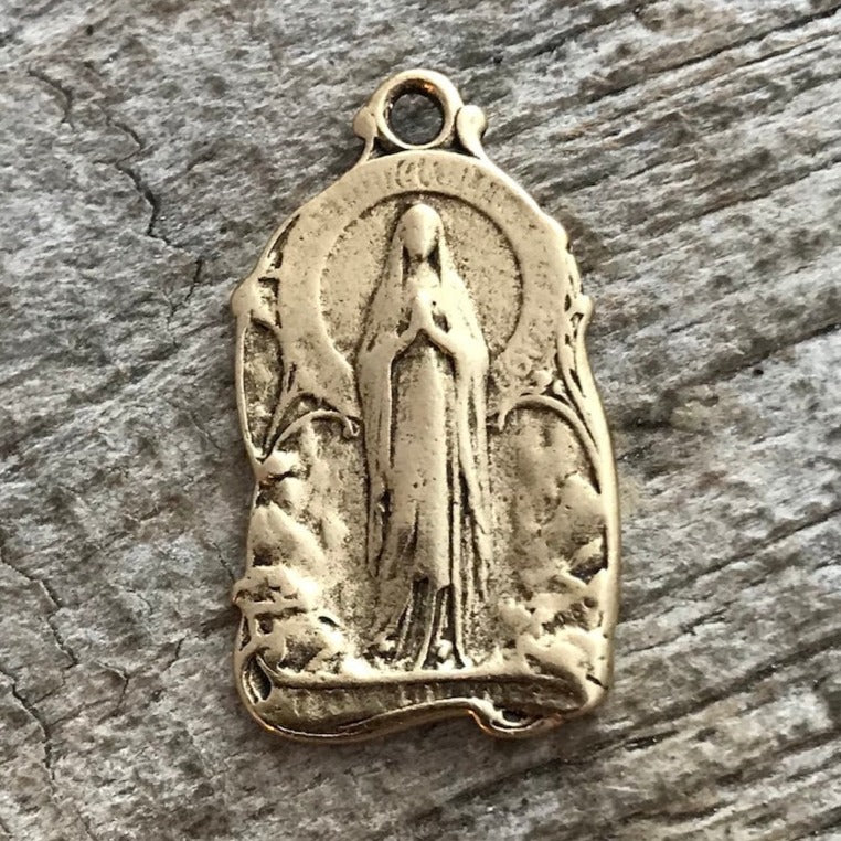 Mary Medal, Virgin Mary, Our Lady of Lourdes, Catholic Necklace, Religious Charm, Gold French Charm, Christian Jewelry Supplies, GL-6034