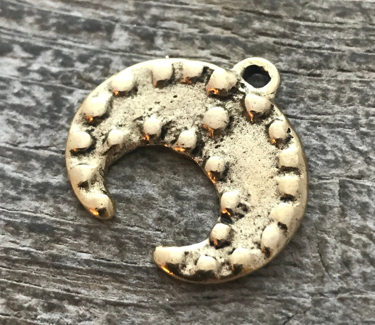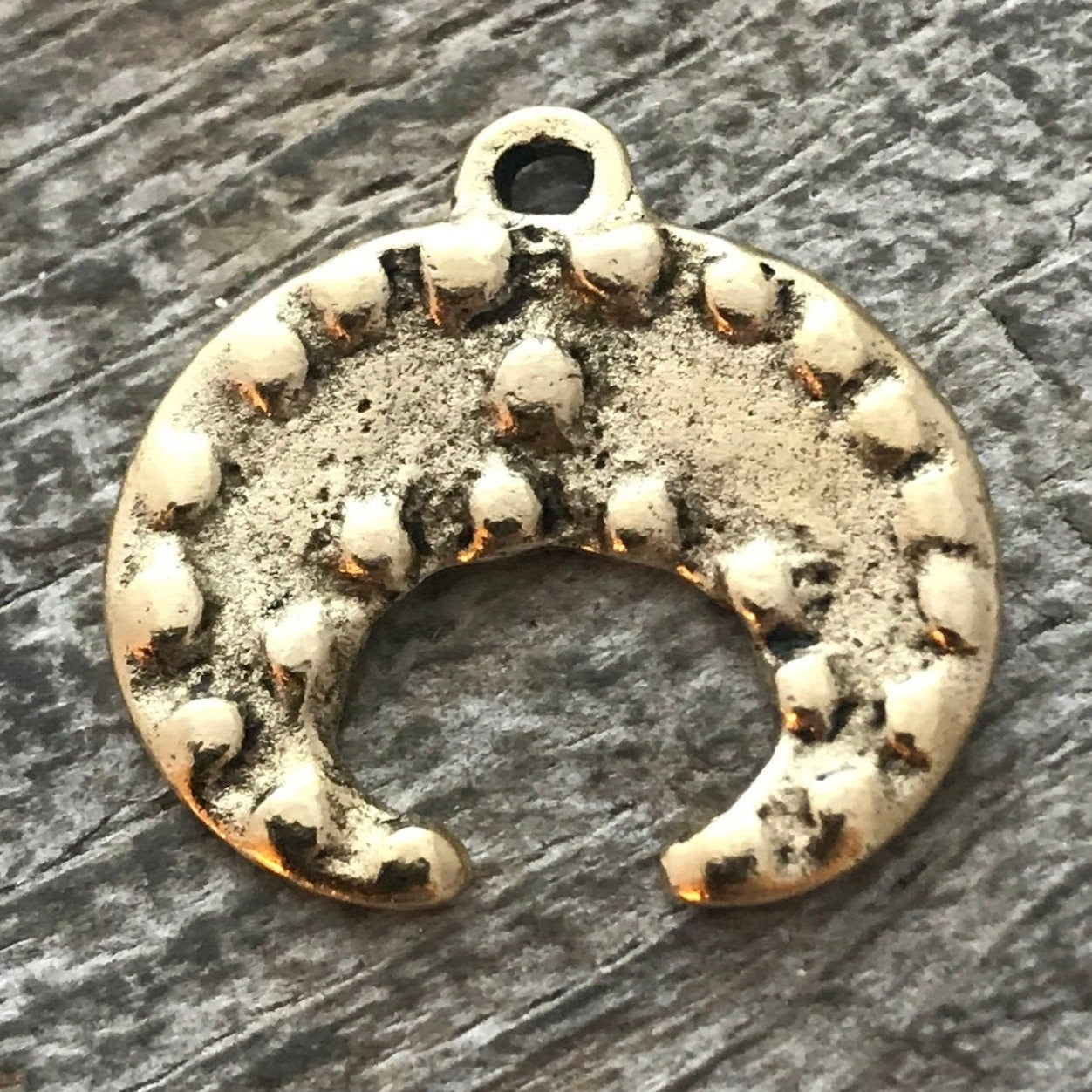 Bumpy Crescent Pendant, Antiqued Gold Dotted Moon, Artisan Pendant Charm, GL-6067