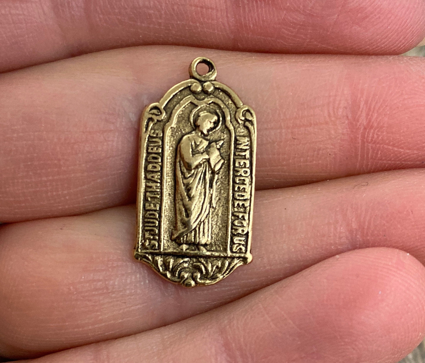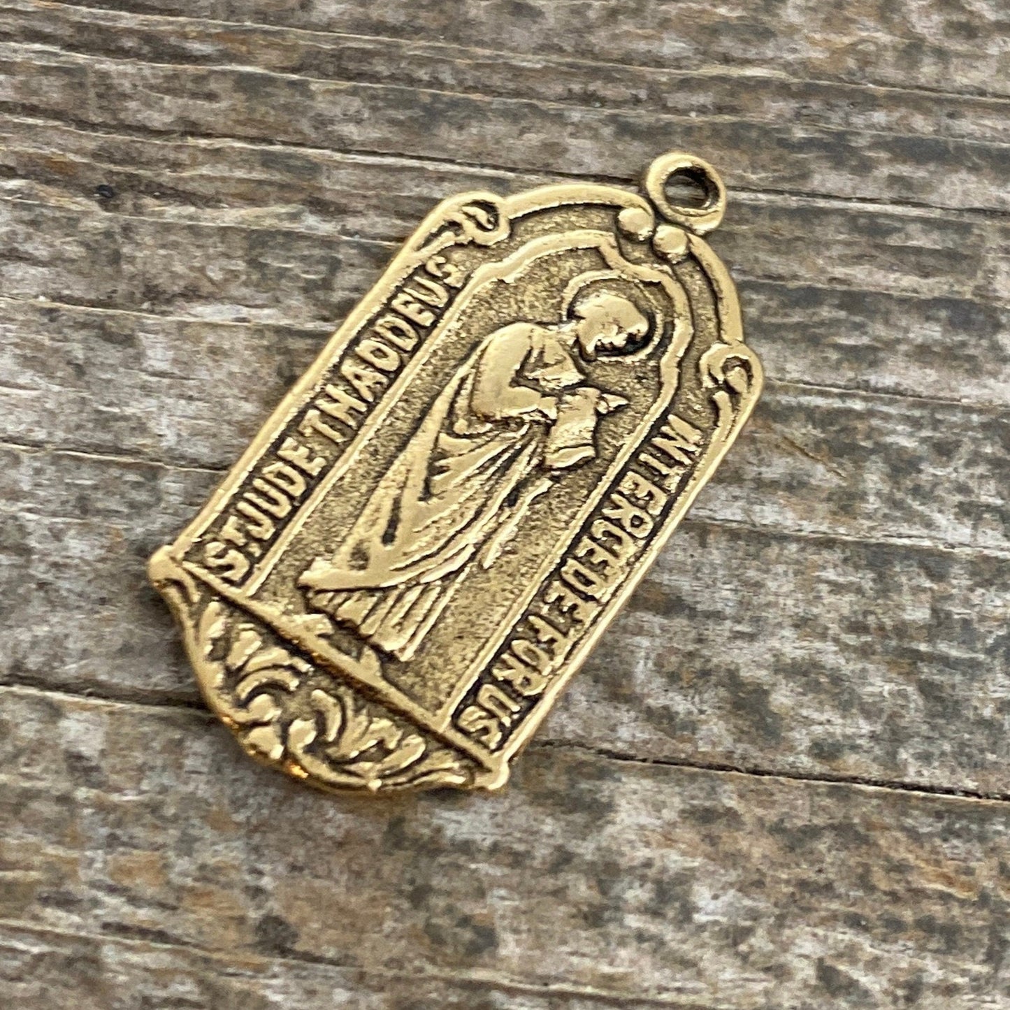 St. Jude, Catholic Medal, Antiqued Gold Charm, Saint of Hope and Miracles, Religious Jewelry, GL-6082