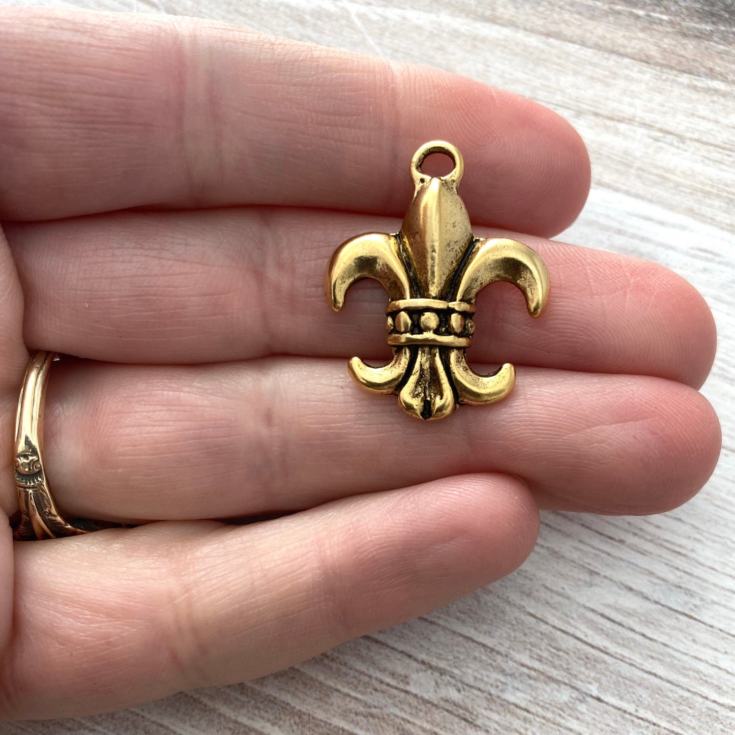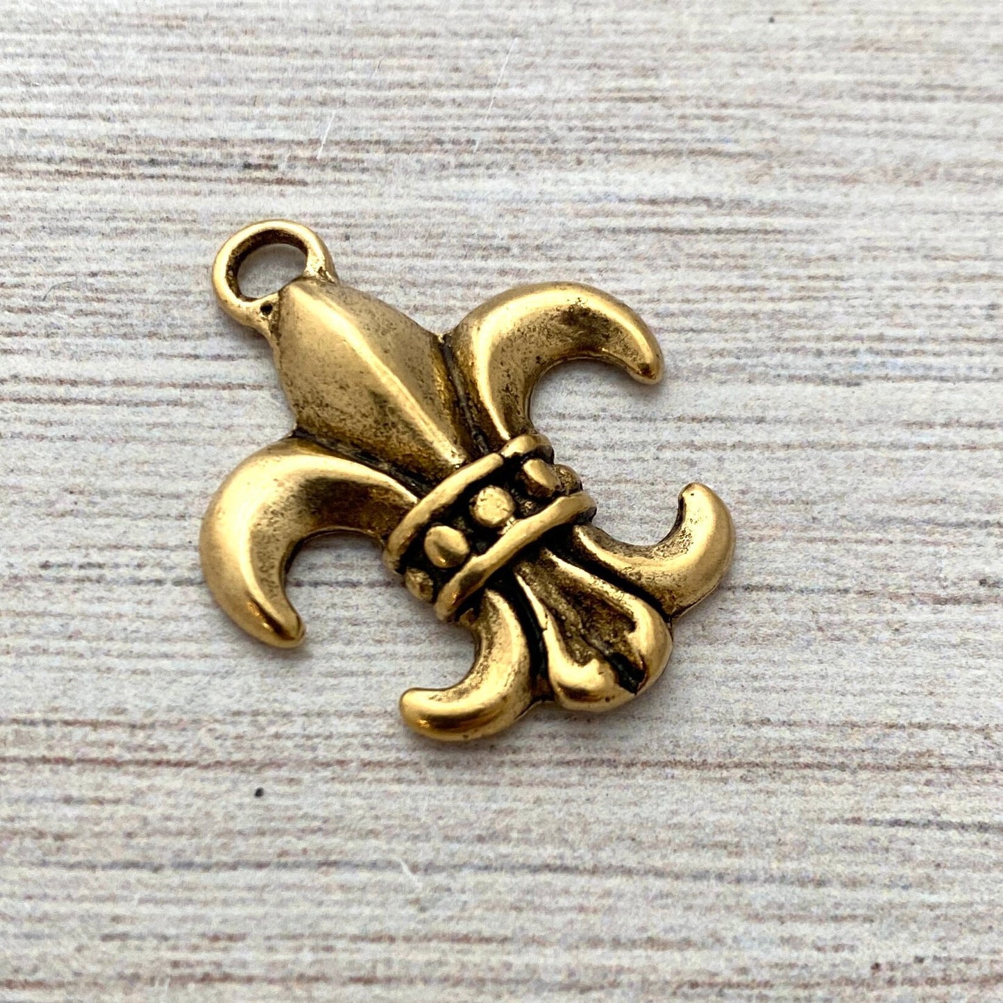 Fleur de lis French Charm, Antiqued Gold, New Orleans Charm, Paris Jewelry, Paris Charm, Findings, GL-6143
