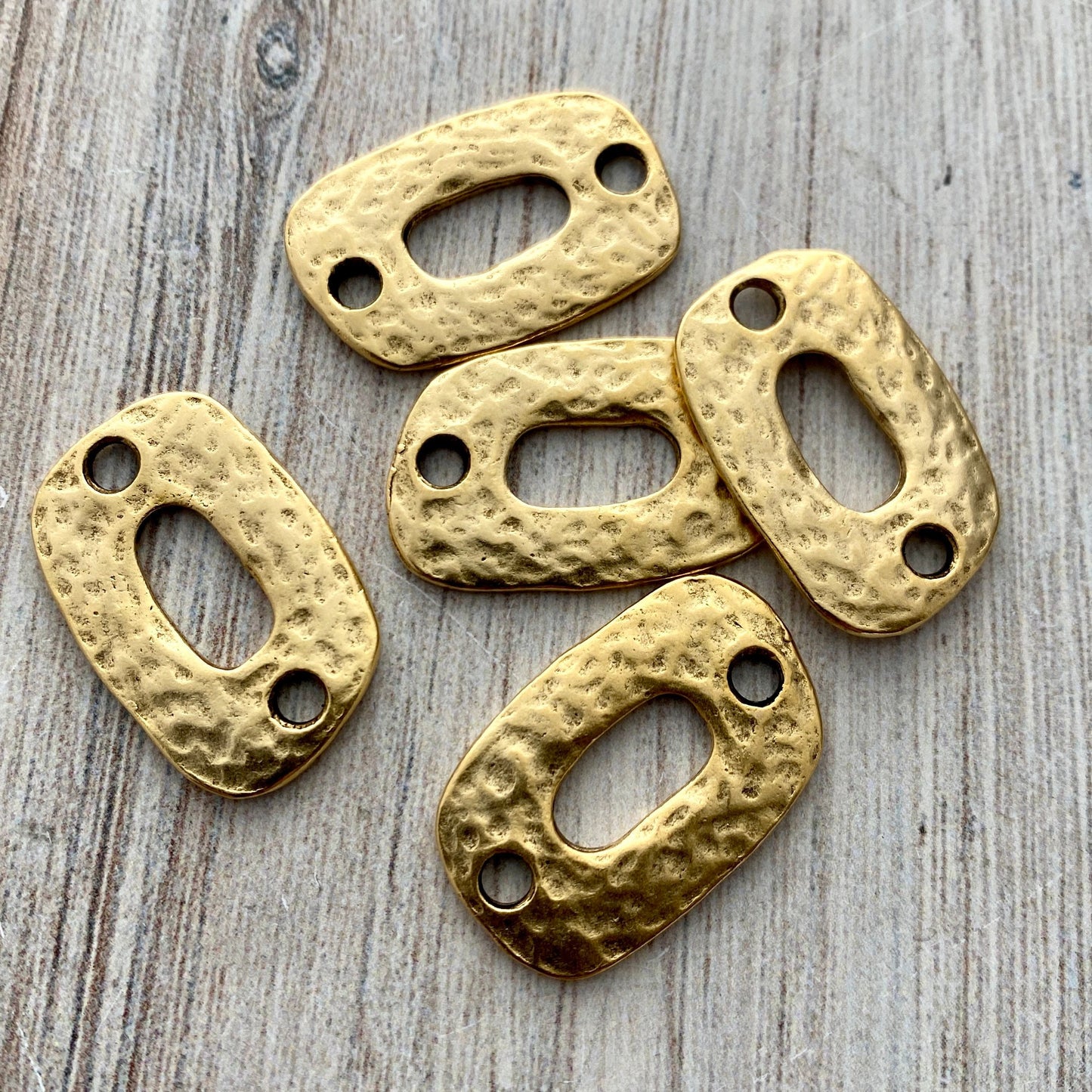 Hammered Oval Connector, Textured Rectangle Link, Gold Jewelry Supply, GL-6206