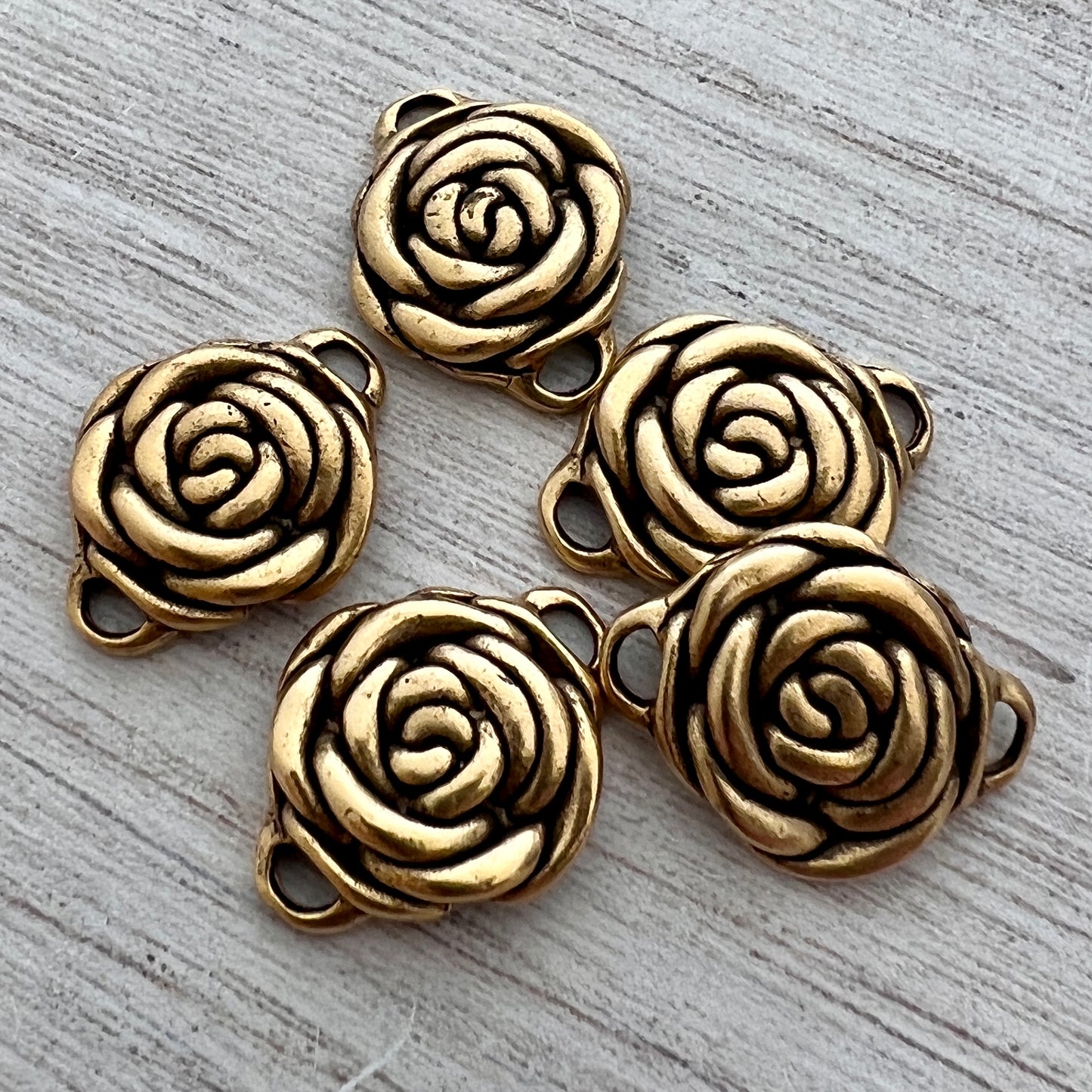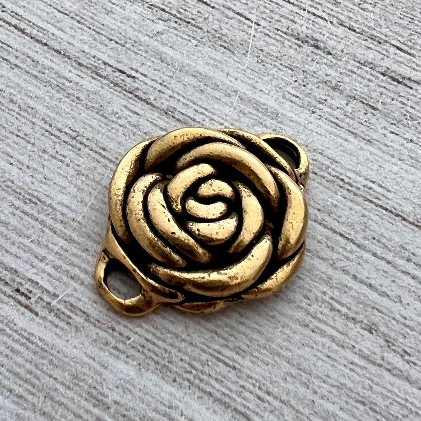 Rose Connector, Large Gold Flower Charm, Jewelry Making Supplies, Carsons Cove, GL-6223