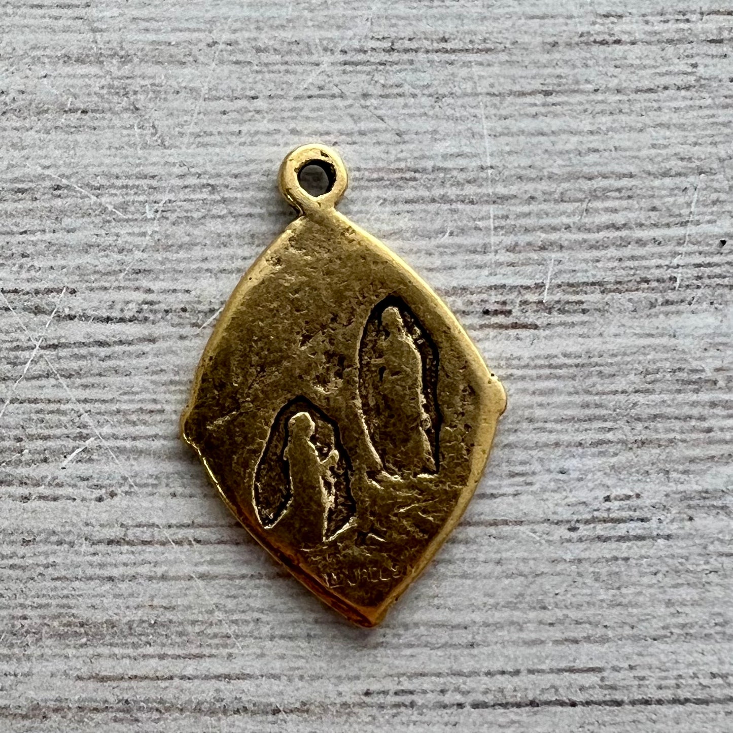 Mary Medal, Our Lady of Lourdes, Diamond Shaped Catholic Necklace, Religious Charm, Gold French Charm, Christian Jewelry GL-6238