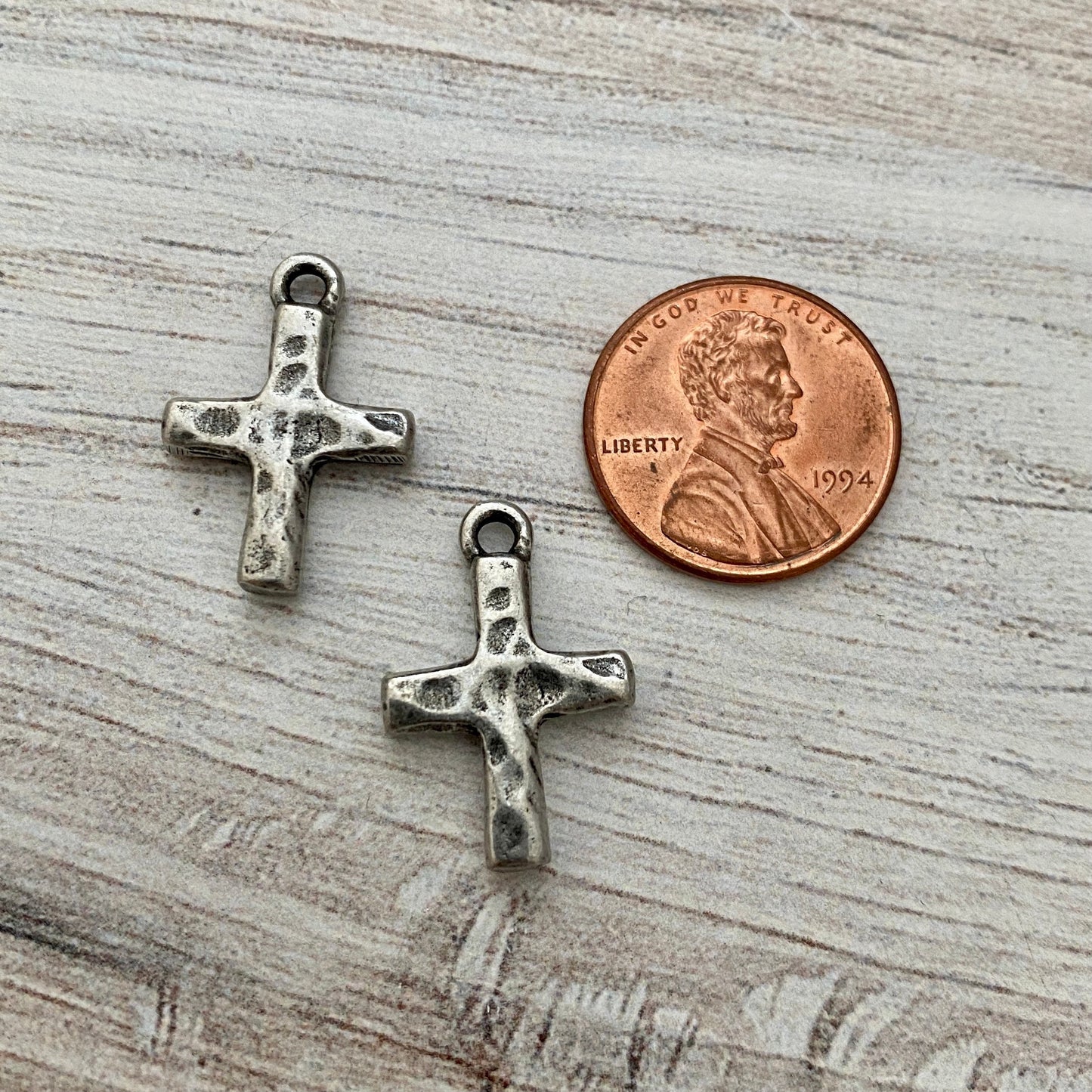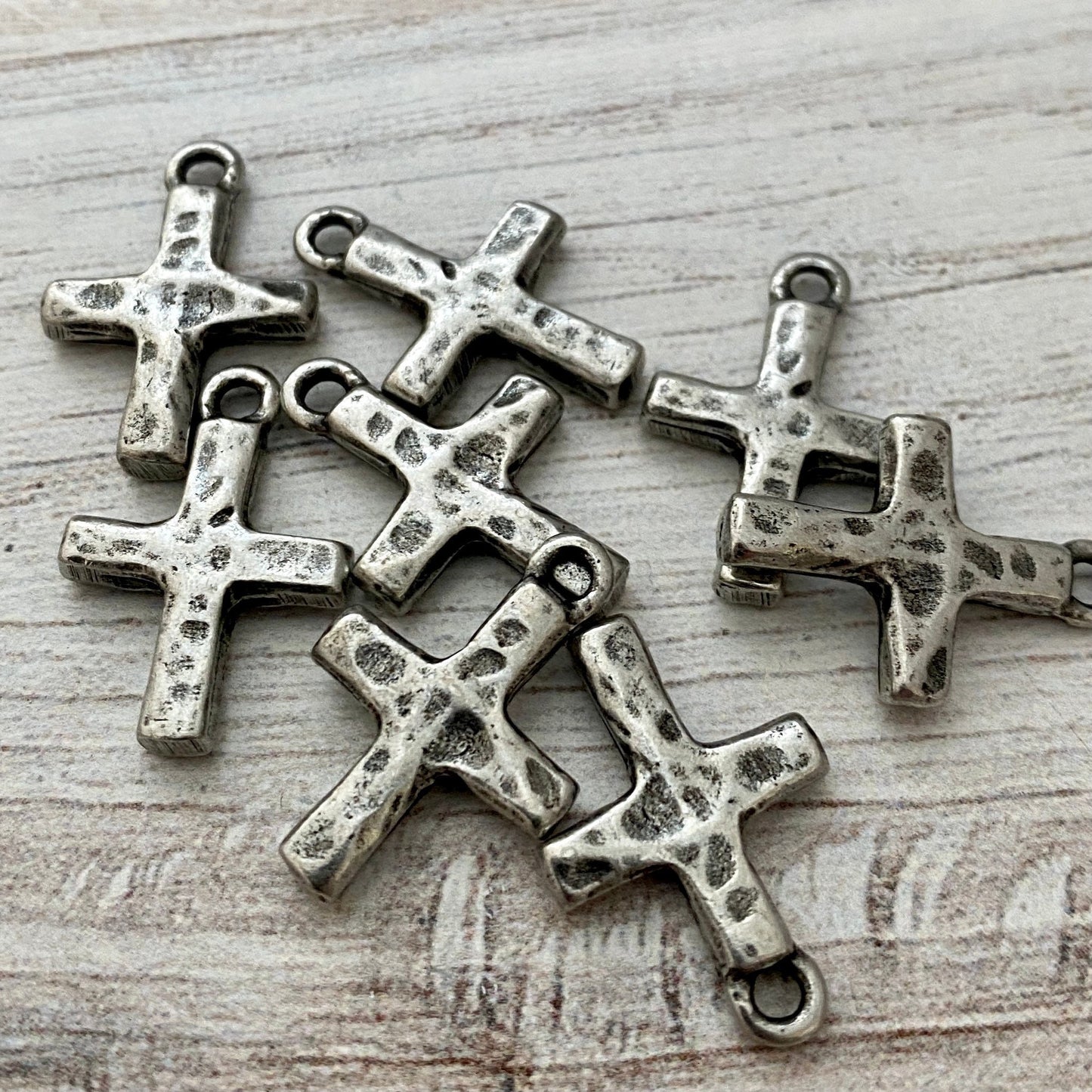 2 Hammered Cross Charm, Silver Pewter Block Cross, Religious, Spiritual Jewelry Making, PW-6156