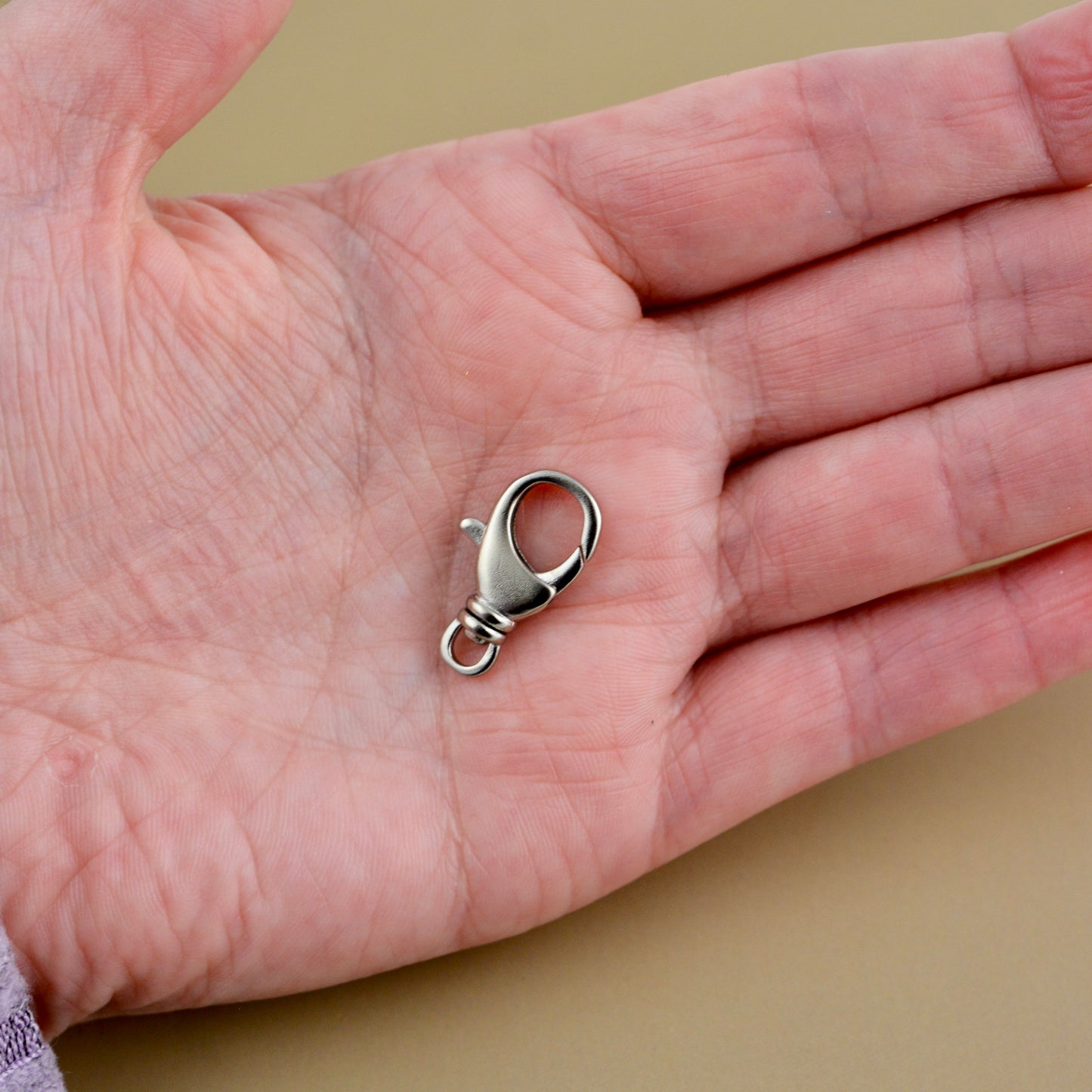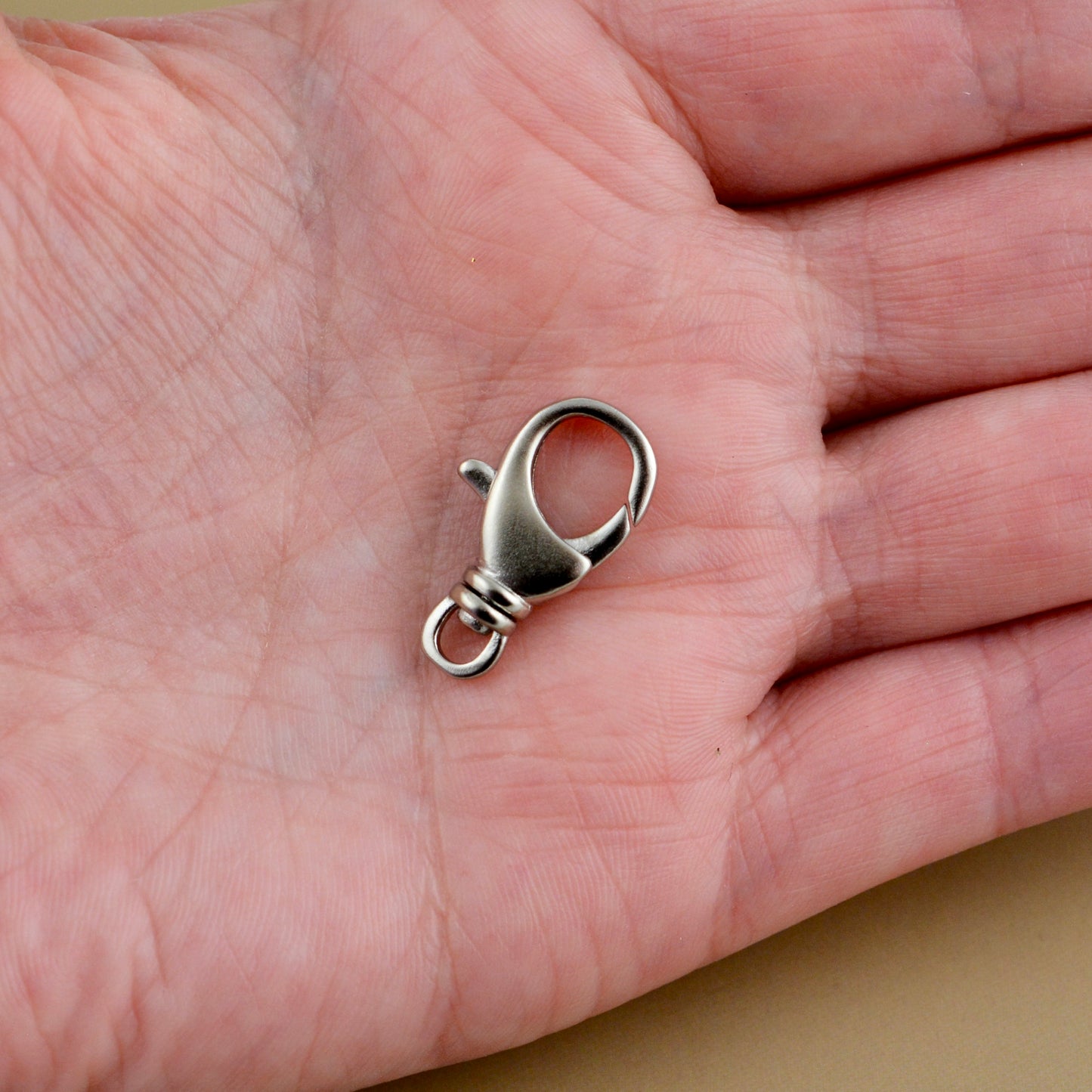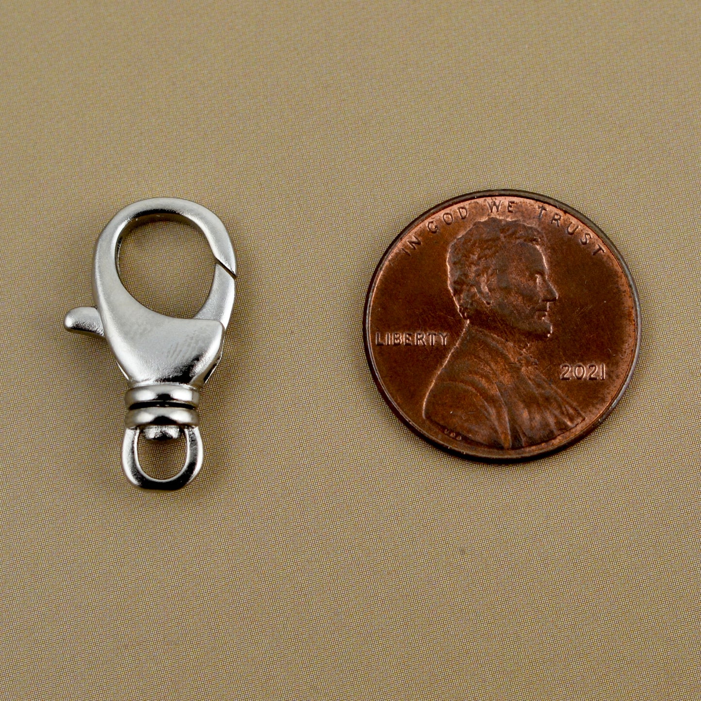 This unique medium-sized lobster claw is ideal for crafting bracelets, necklaces, and more. It features a swivel ring for added flexibility. Each order includes two pieces.