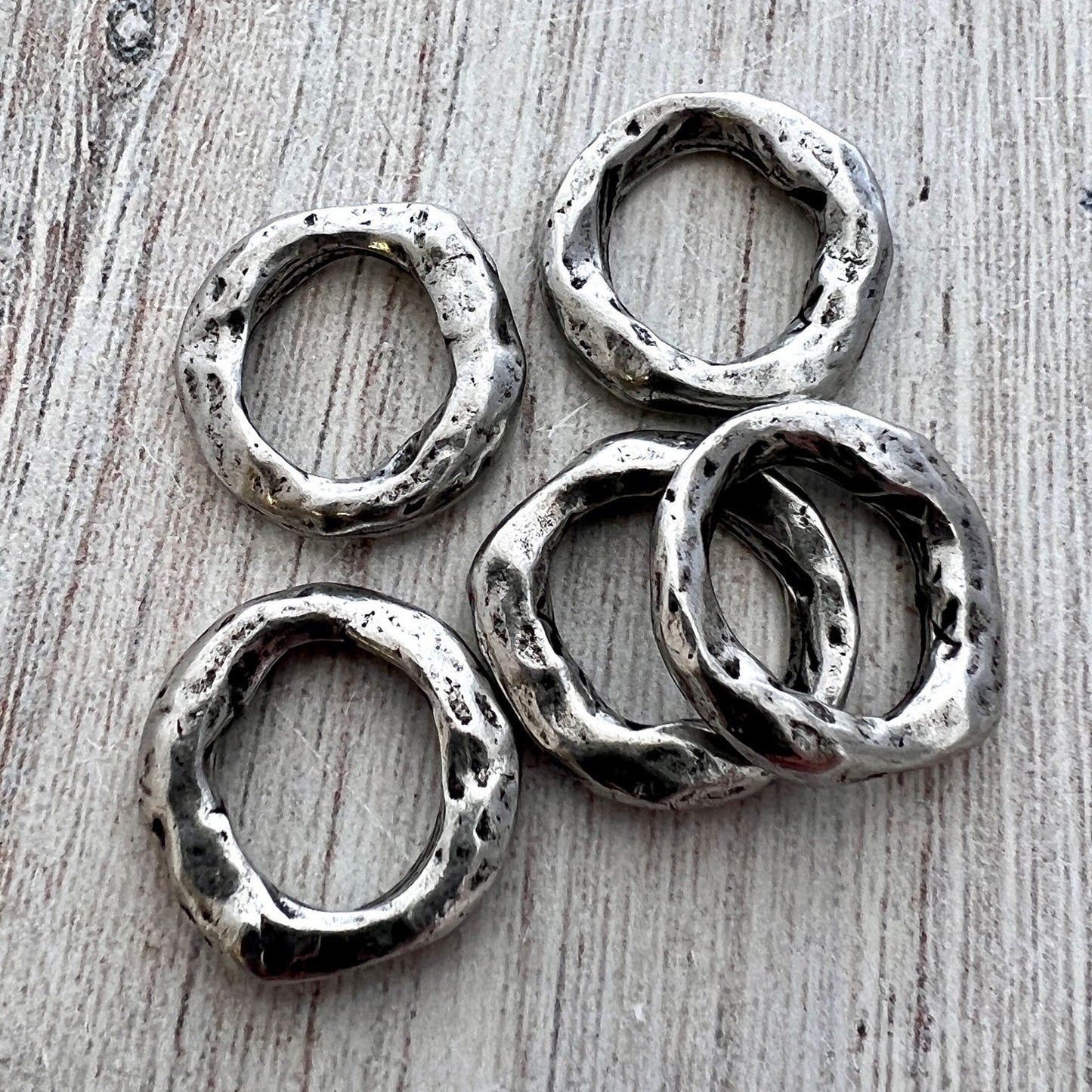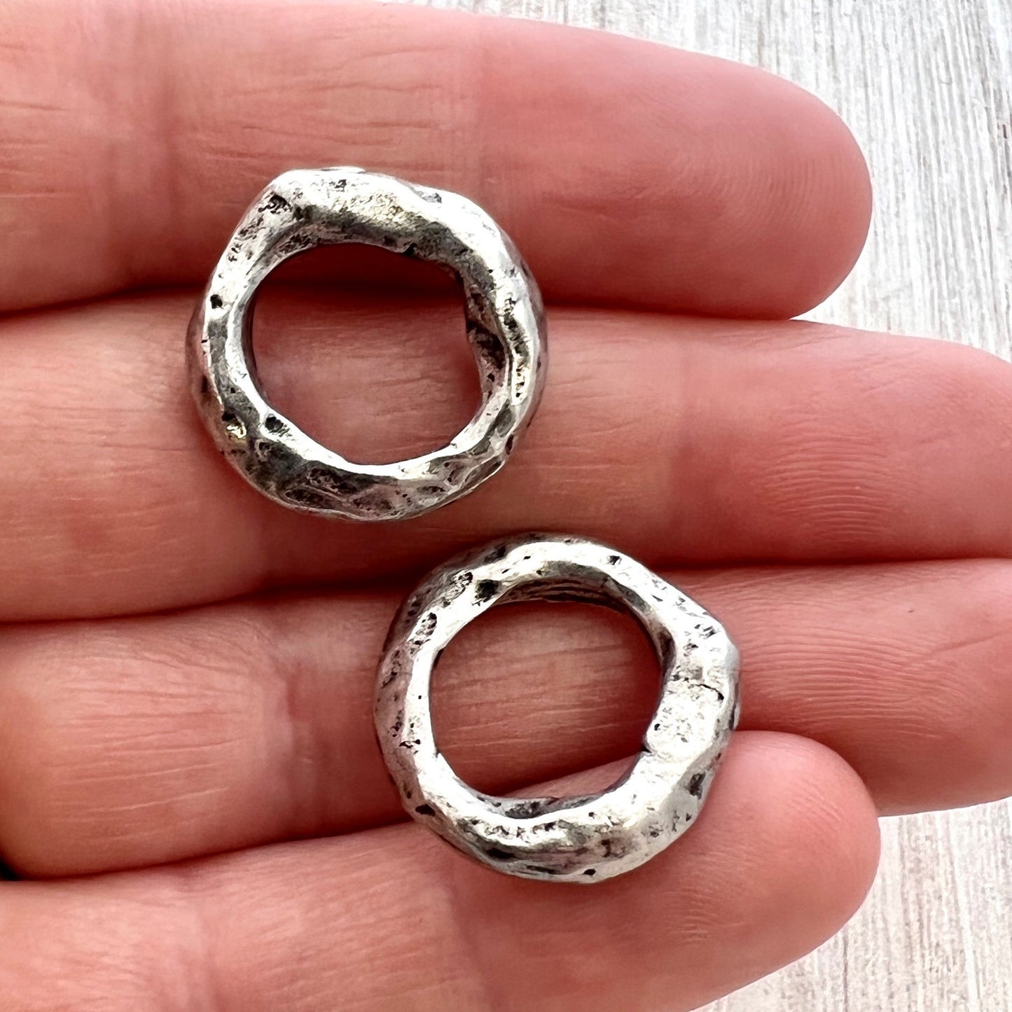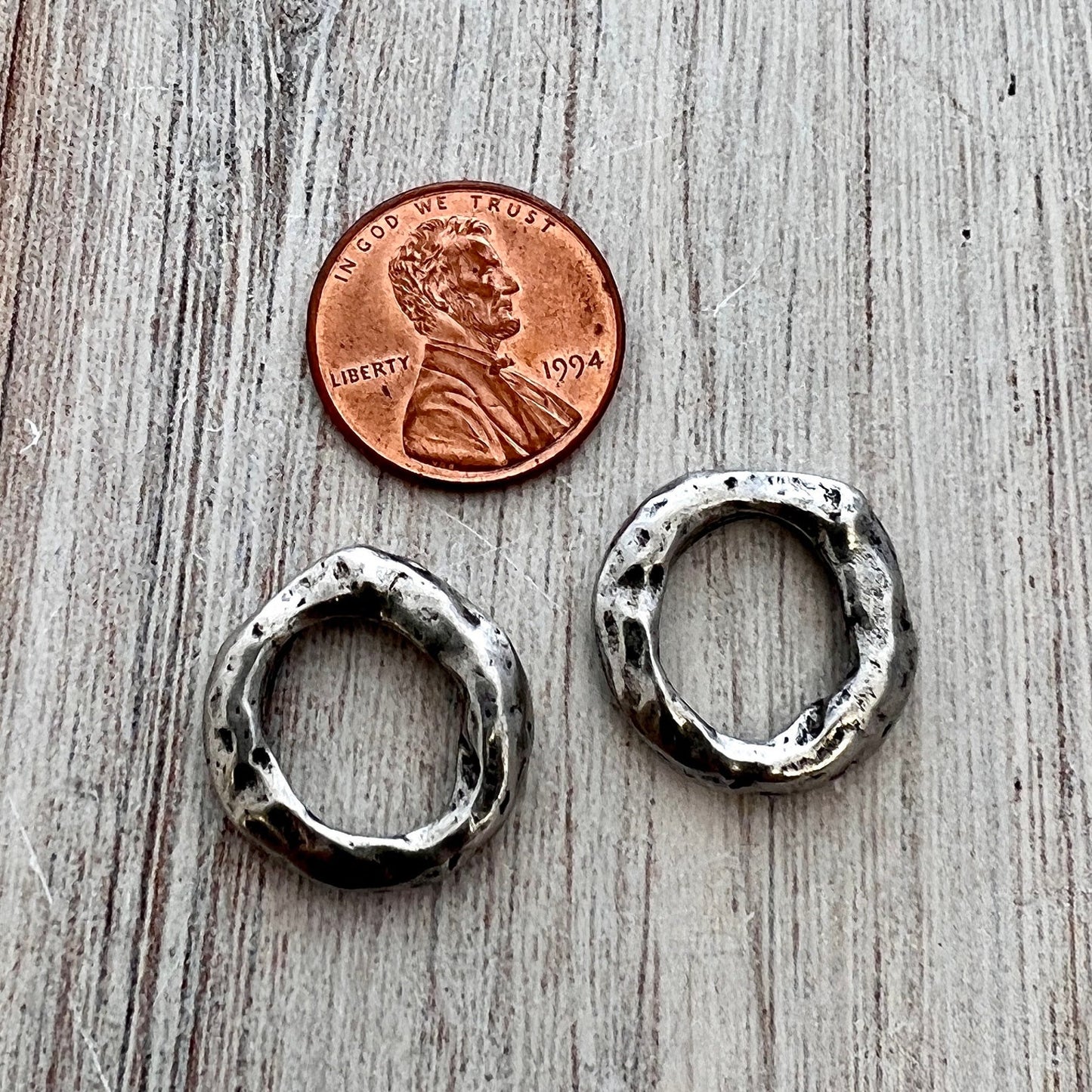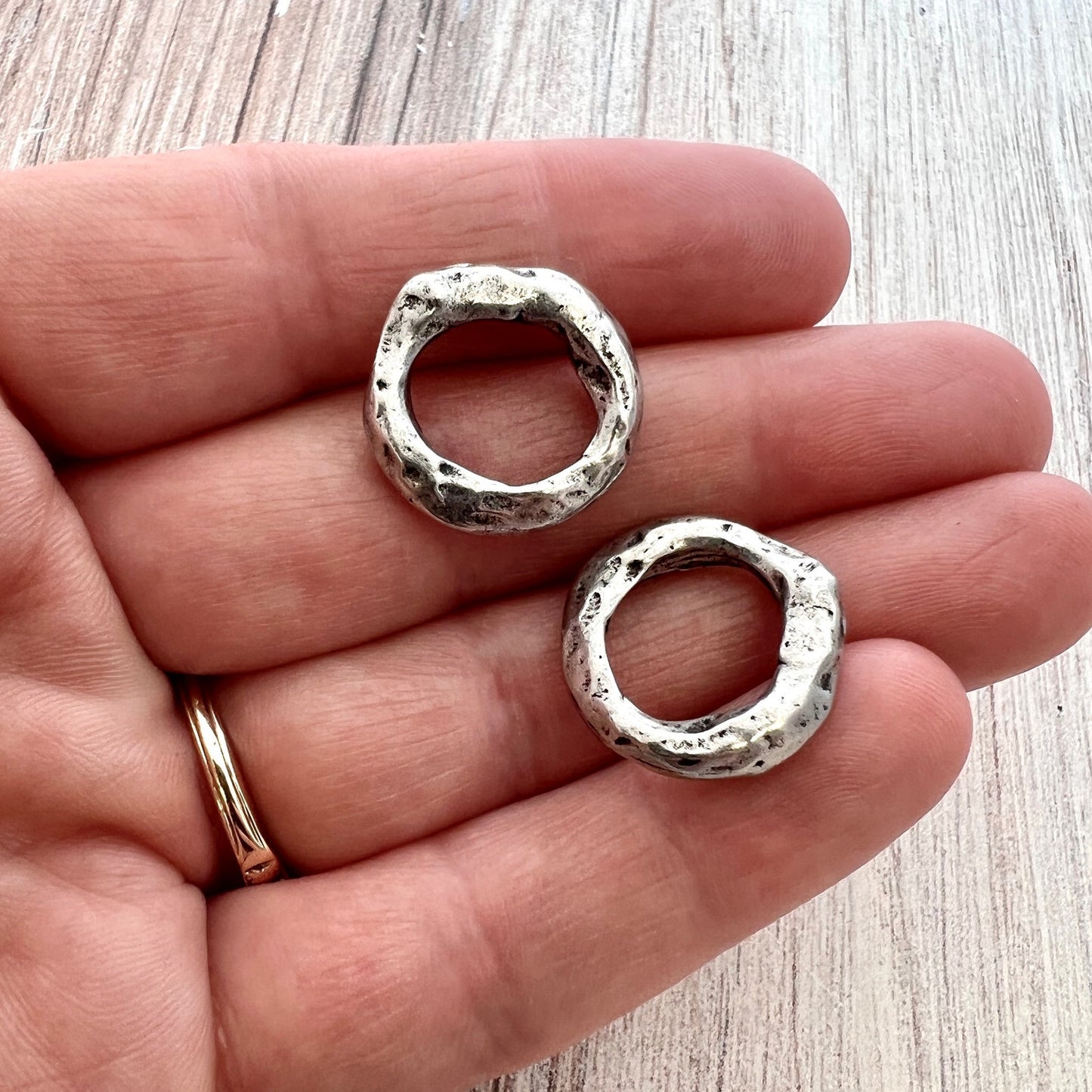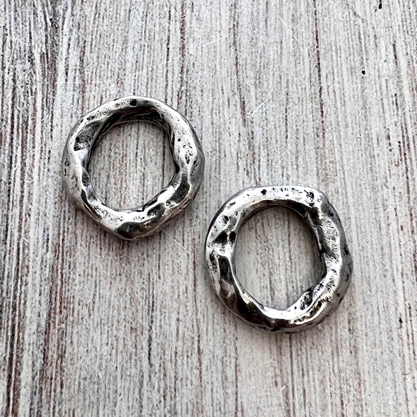 2 Organic Ring Links, Eternity Connector, Antiqued Silver Pewter Oval Hoop, Circle Jewelry Supply, PW-6218